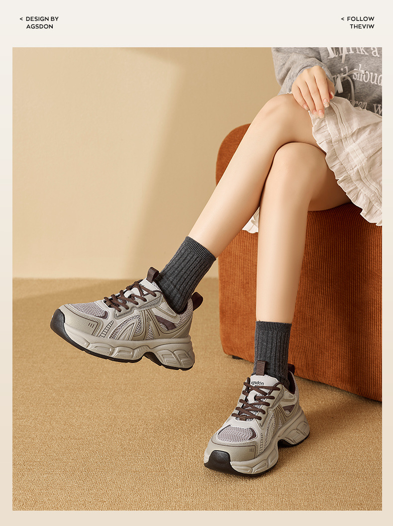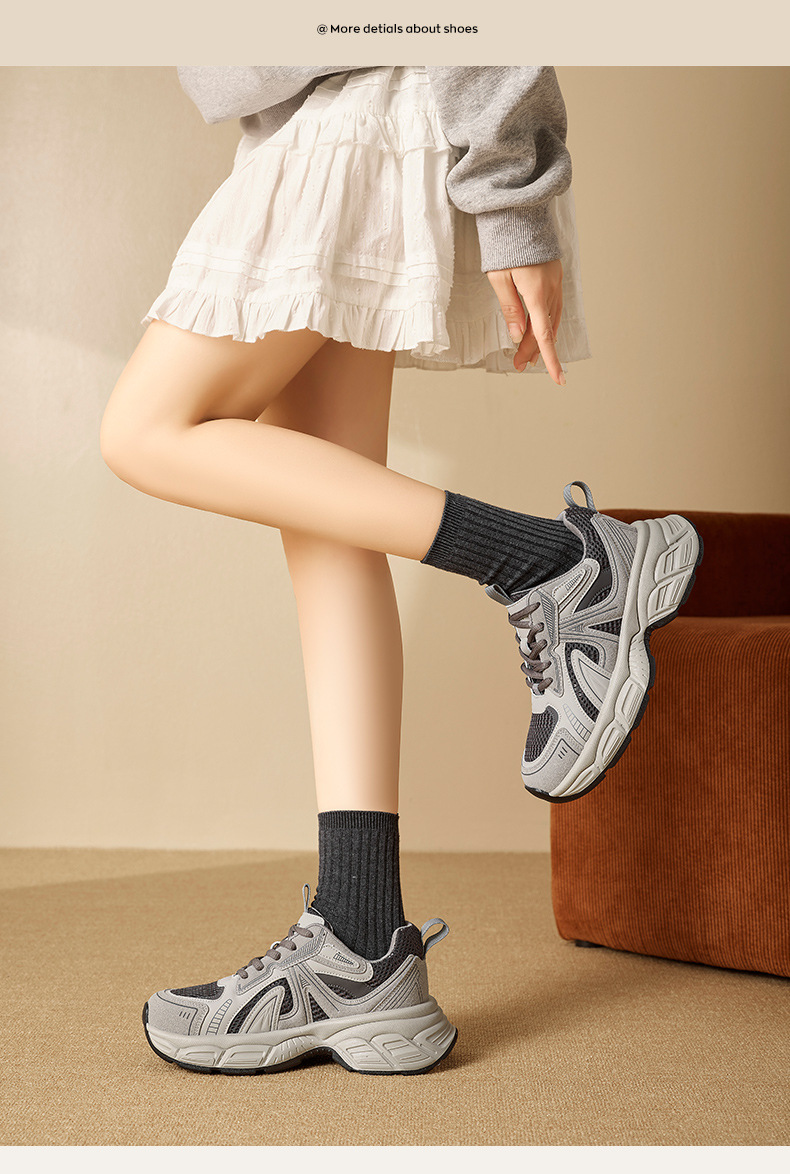 Zapatos grises de la mujer 2026 nuevos zapatos deportivos altos de primavera pequeños zapatos casuales con suela gruesa