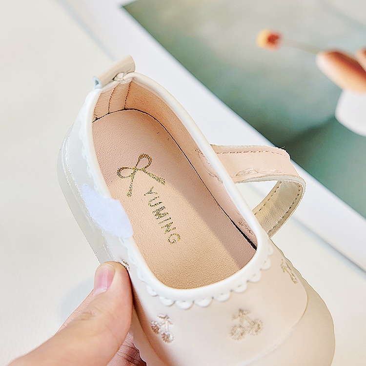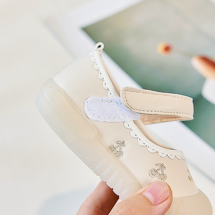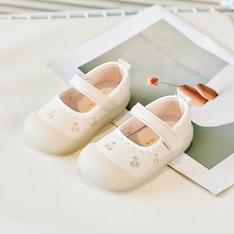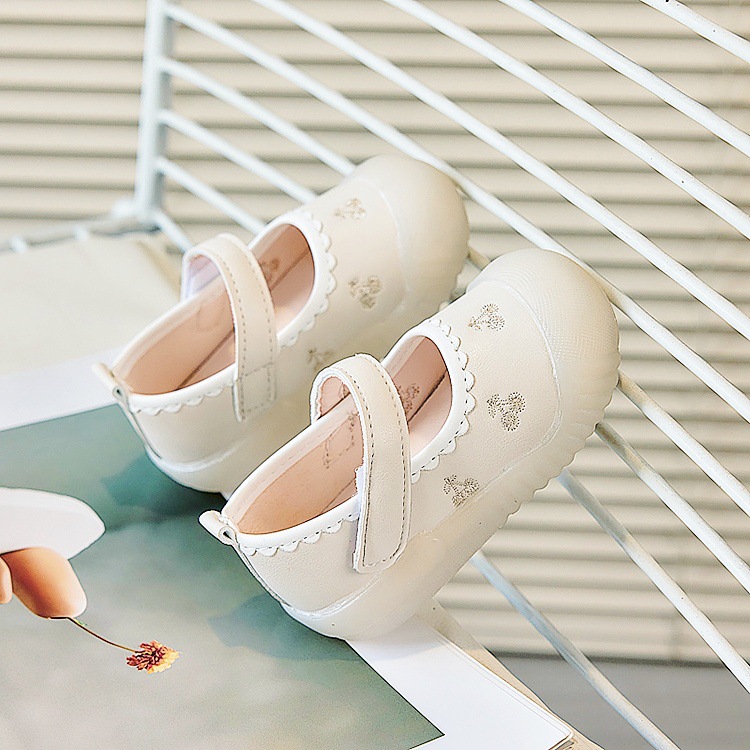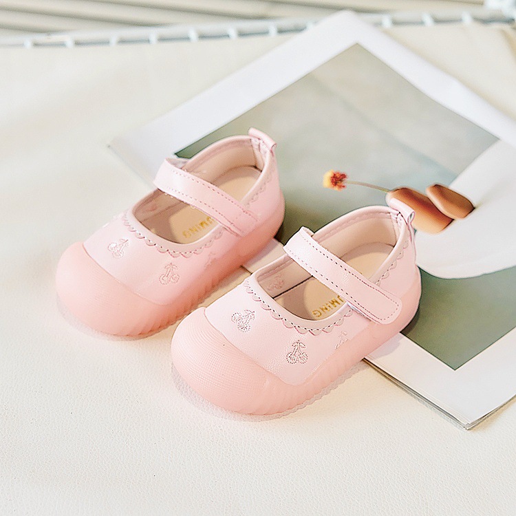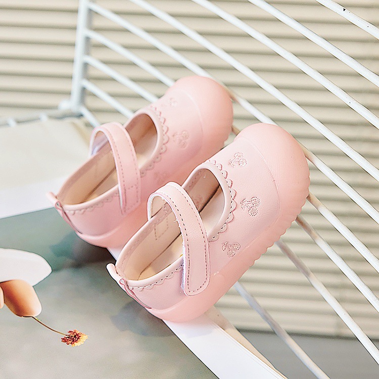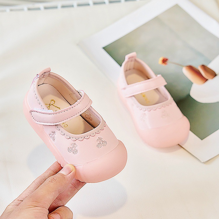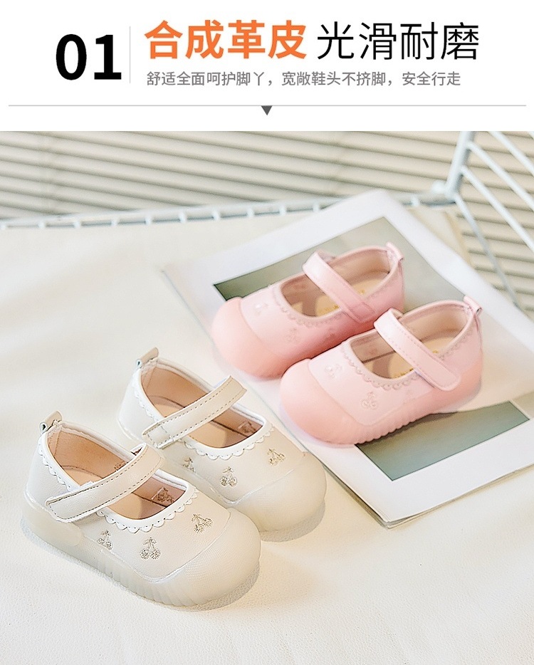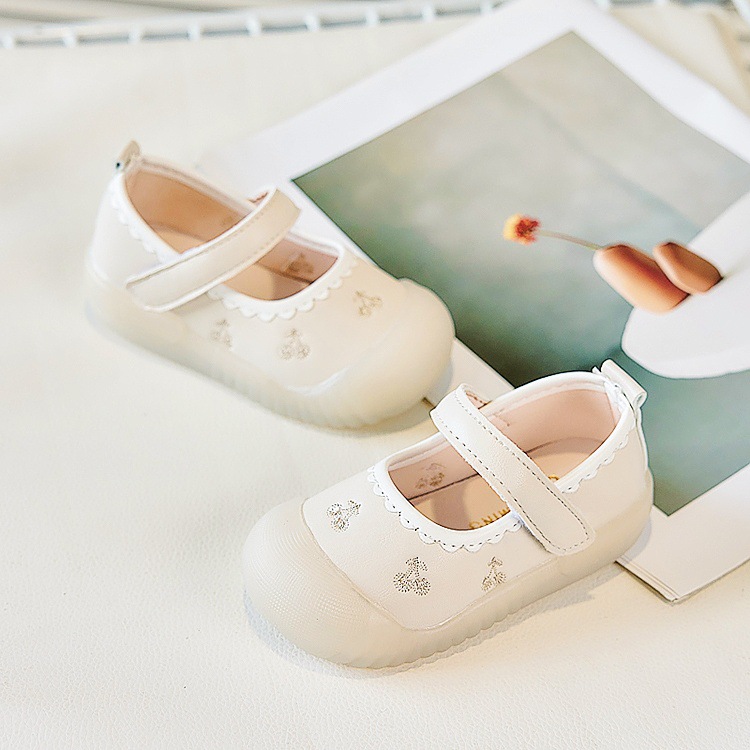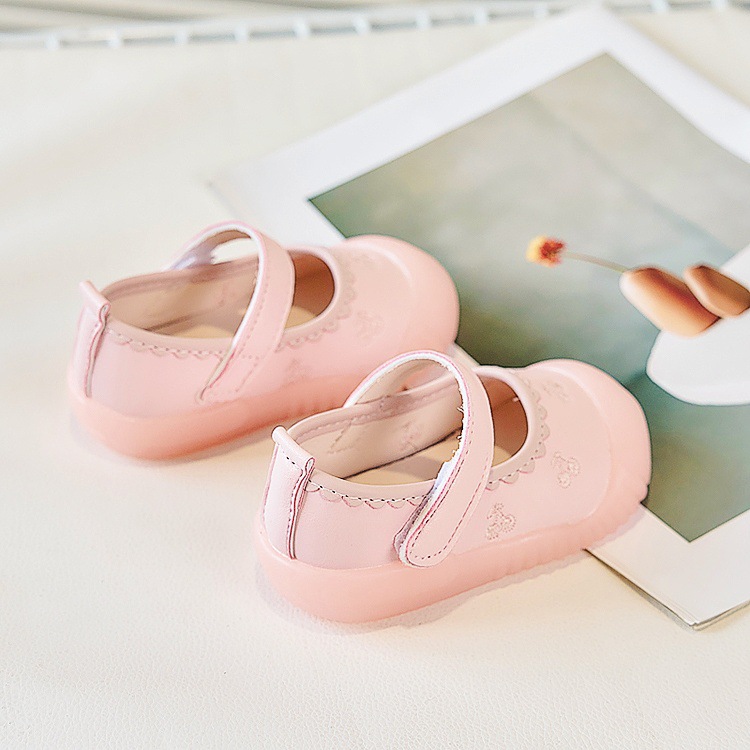 Zapatos de piso para bebés, primavera y otoño, princesa, suela suave, zapatos antideslizantes y antipatadas para niños pequeños, zapatos de cuero para bebés, una pieza