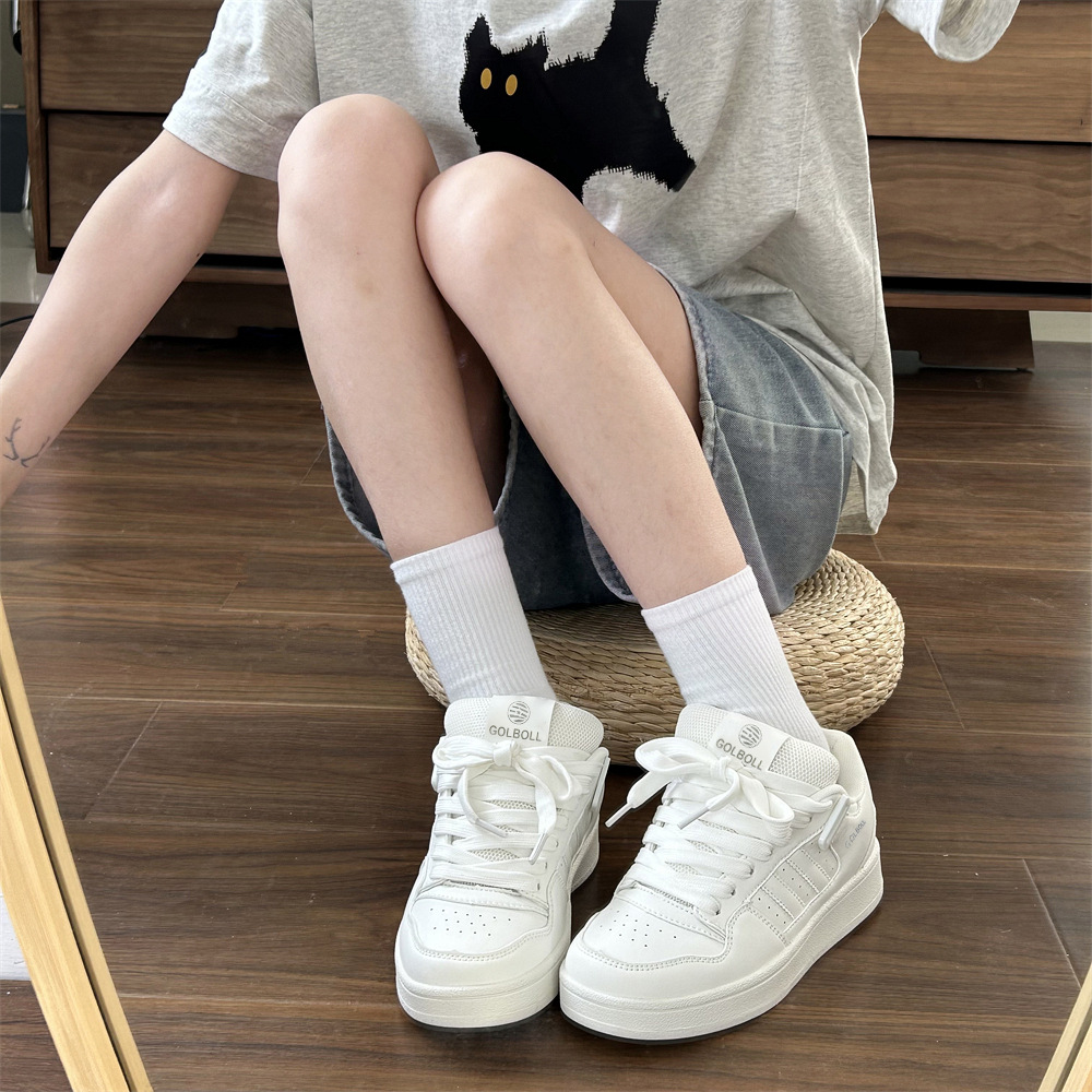 Tacones altos nuevos zapatos de pan chino 2024 nuevos zapatos de verano pequeños zapatos blancos de patineta aumentan la altura de la tendencia alta explosión