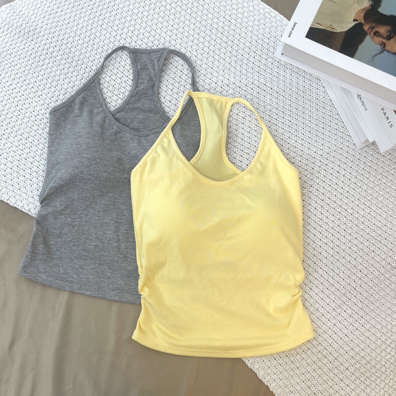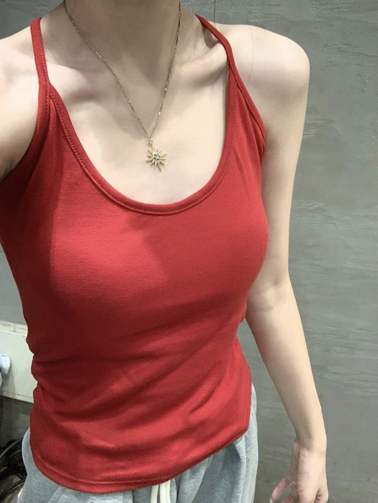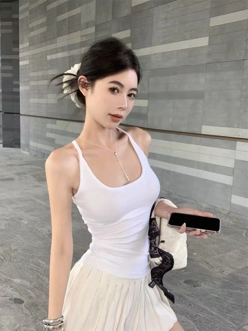 Nuevo estilo americano de espalda dulce y picante hermoso estilo de Hong Kong pequeño cinturón con cojín de pecho base dentro con chaleco de verano para colgar la chaqueta de cuello