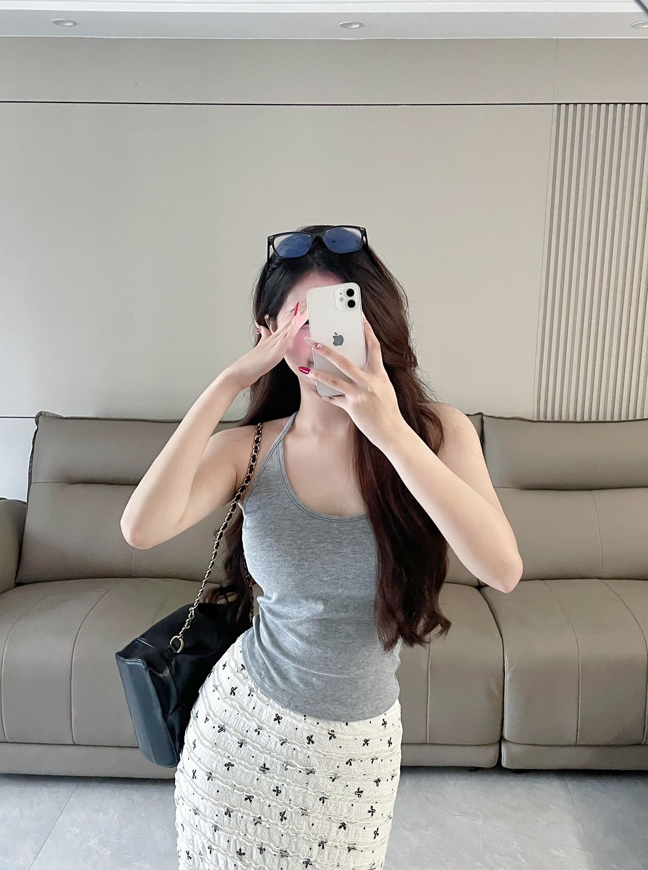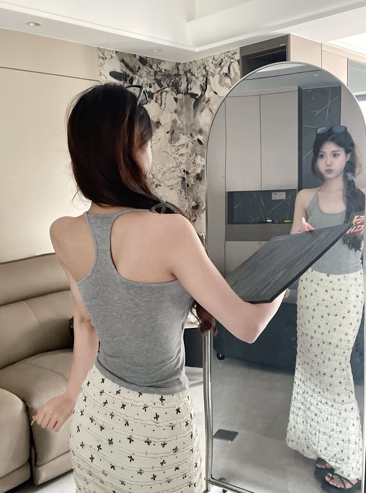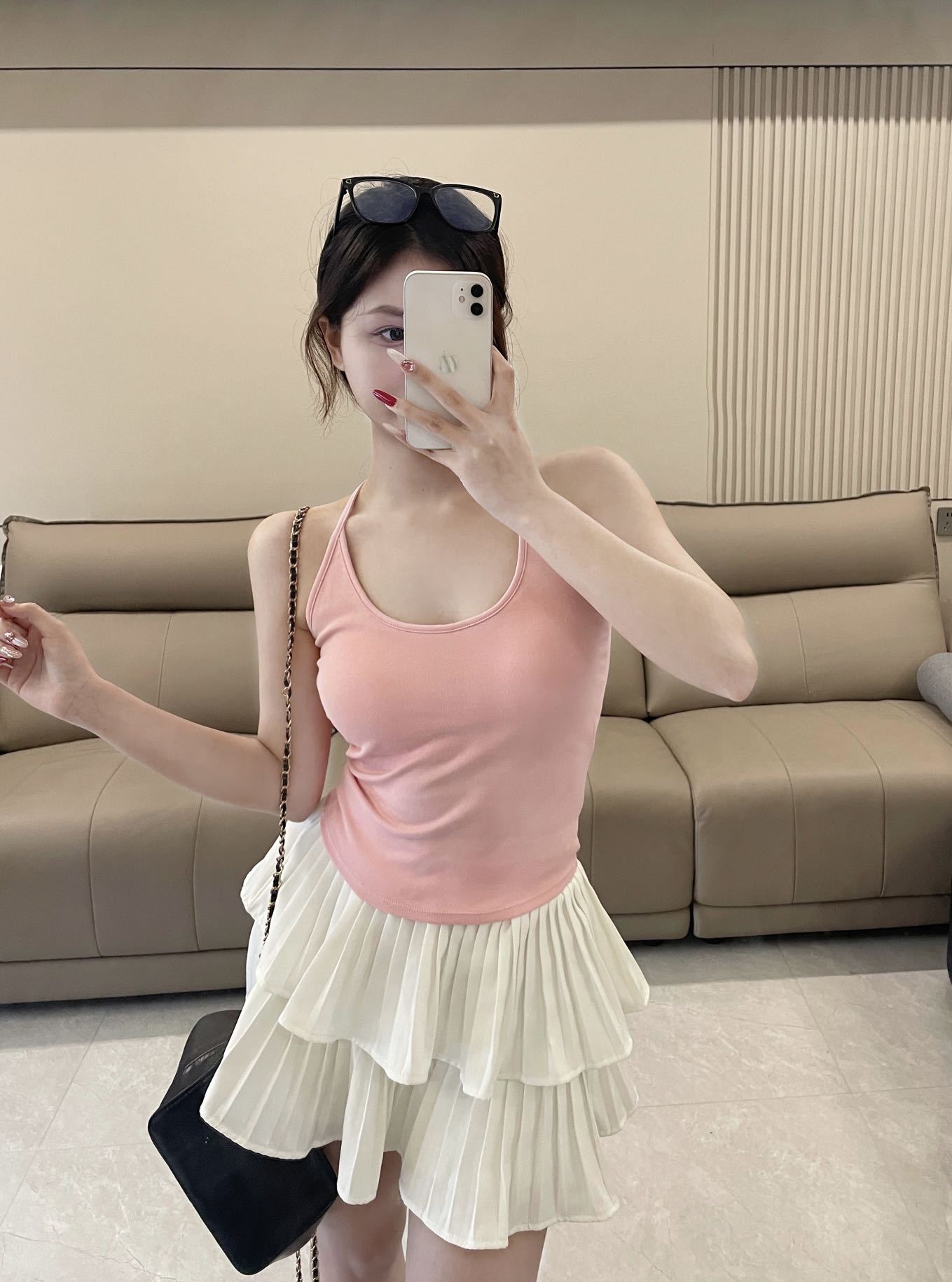 Nuevo estilo americano de espalda dulce y picante hermoso estilo de Hong Kong pequeño cinturón con cojín de pecho base dentro con chaleco de verano para colgar la chaqueta de cuello