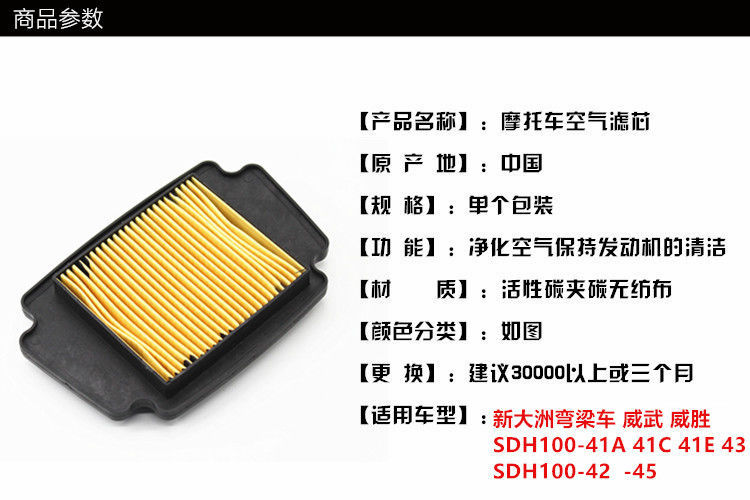 Filtro de motocicleta adaptado al filtro de aire de cartucho de filtro de aire de Weiwu Wei Sheng SDH100 - A / 41 / 42 / 43 / 45