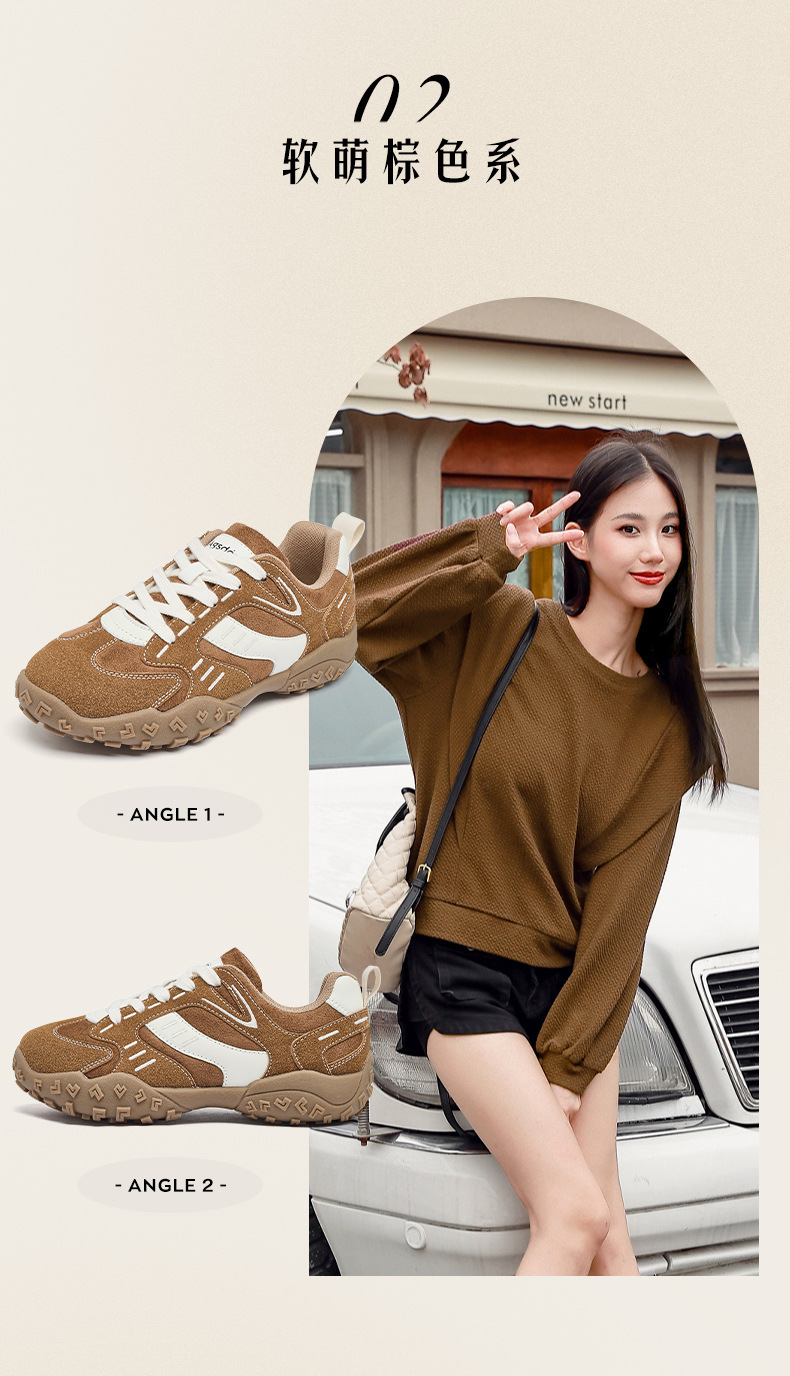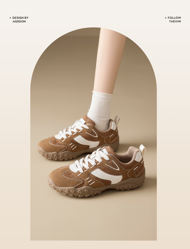 Augu Shi Deng retro zapatos de entrenamiento alemán para mujeres 2026 nuevo primavera marrón grueso waffle agam zapatos deportivos casuales