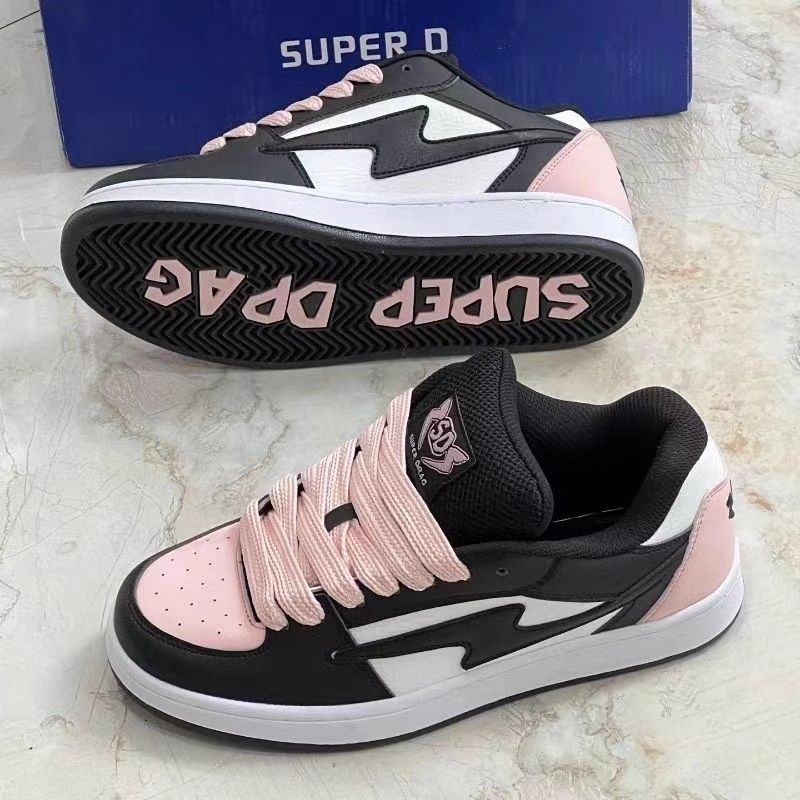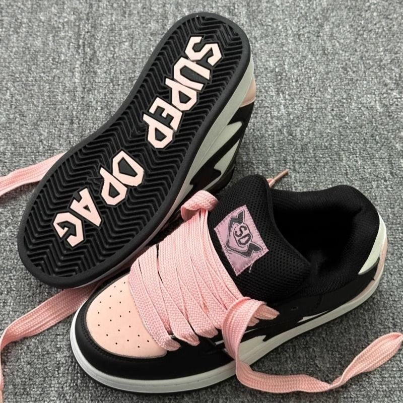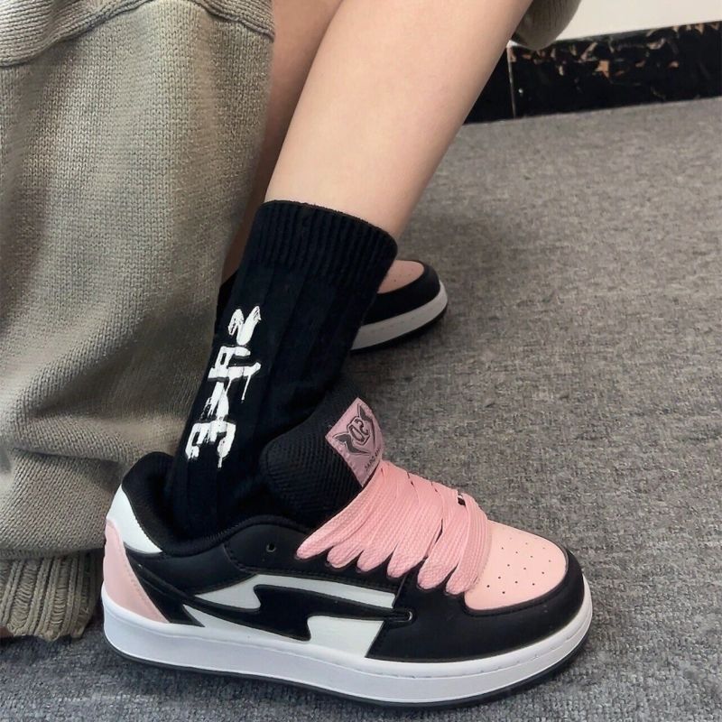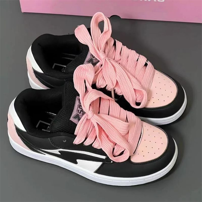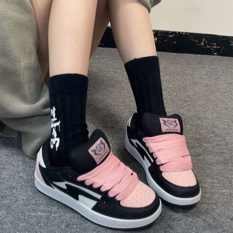 Nuevos zapatos de pan de color rosa negro relámpago para mujer, zapatos casuales de suela gruesa para estudiantes de todo fósforo, zapatos de tabla de aumento, lote de punta redonda
