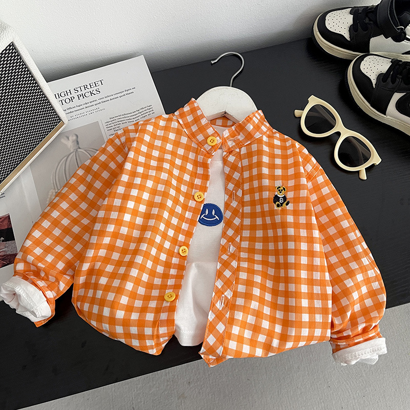 Camisas a cuadros bordadas para niños camisas de primavera y otoño delgadas 2025 nuevas chaquetas de manga larga de primavera y otoño para bebés de moda