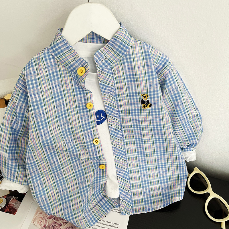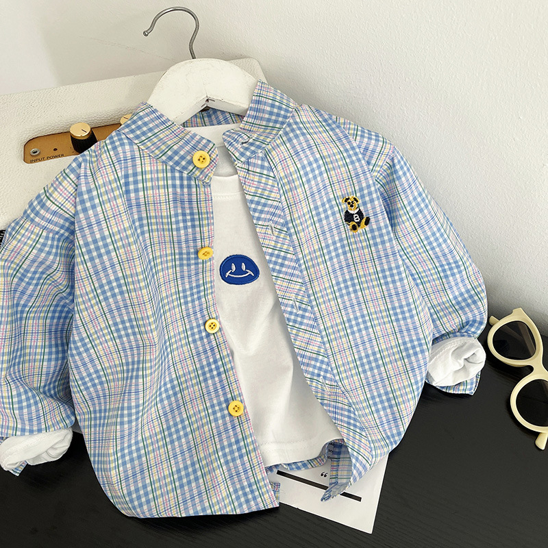 2025 nueva camisa de moda de verano para niños, camisa de dibujos animados a cuadros, ropa infantil de manga larga, nueva moda para niños