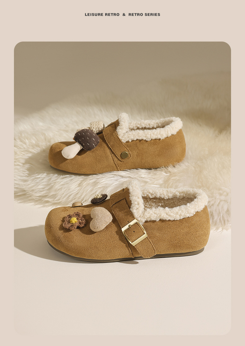 Zapatos de algodón de peluche de invierno 2025 nuevos zapatos de algodón de peluche de patata con un solo pie