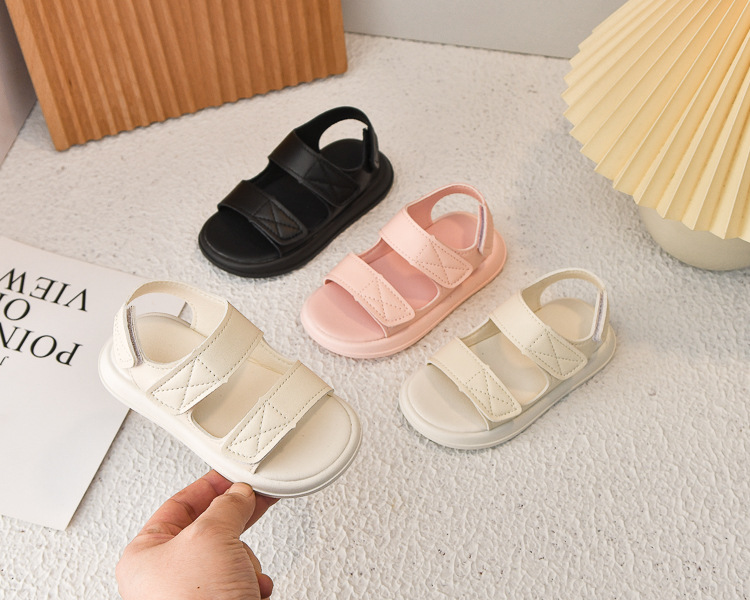 Sandalias de verano para niños al por mayor, fondo suave de velcro para niñas, sandalias de estilo explosivo transfronterizo de todo fósforo, zapatos de playa coreanos