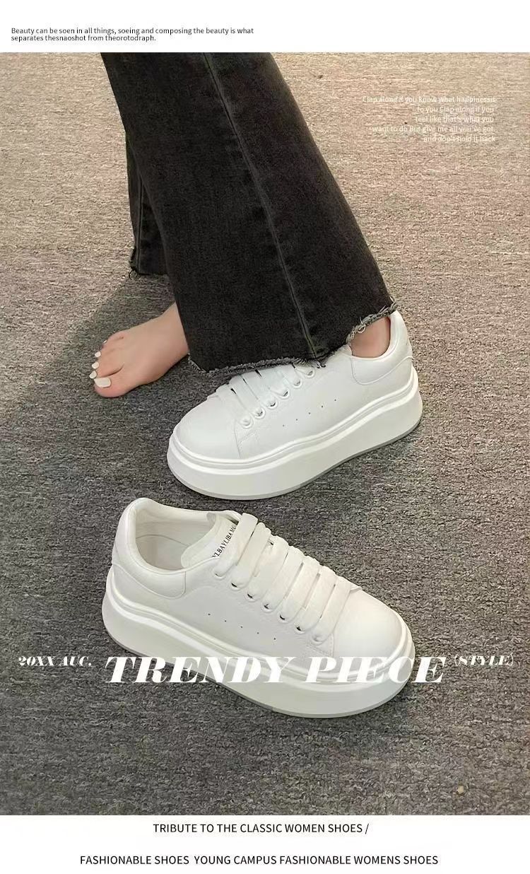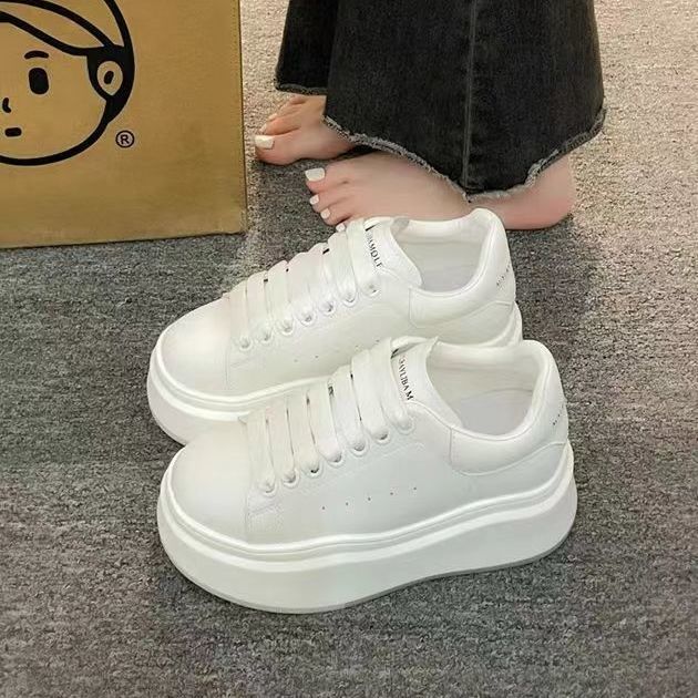2025 primavera nuevo estilo pequeño zapatos de tabla de altura de suela gruesa suela de plataforma zapatos McQueen de todo fósforo zapatos blancos casuales de moda