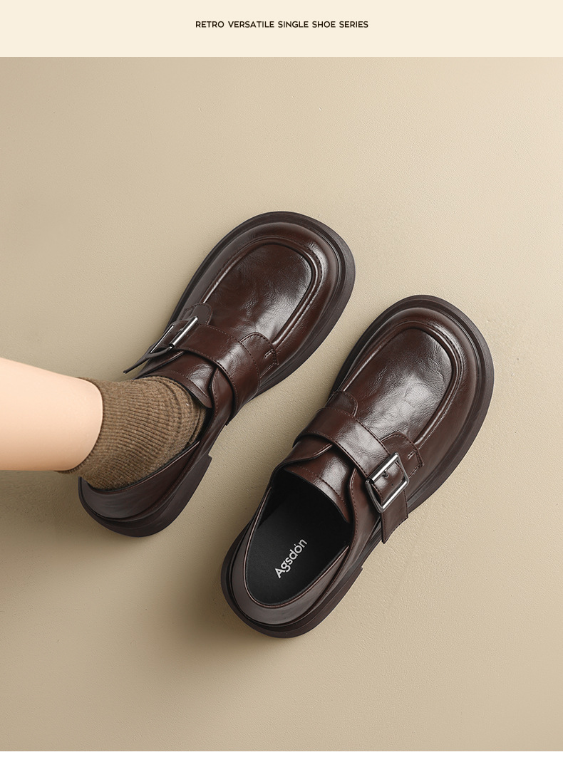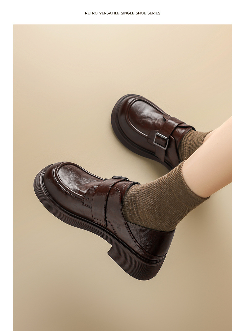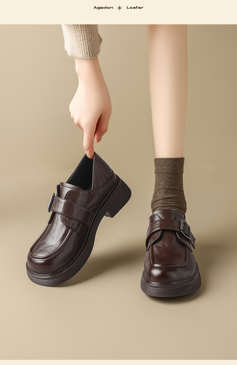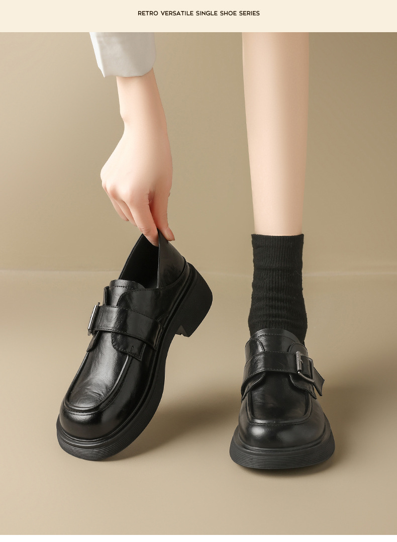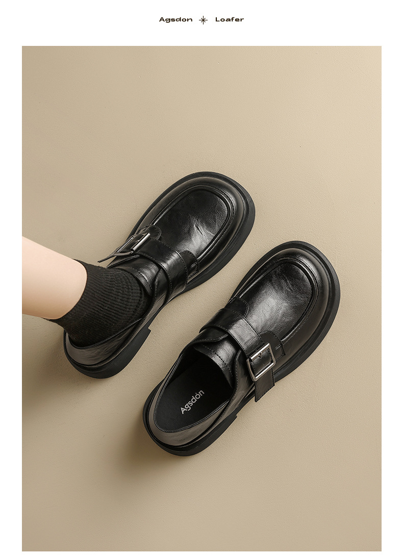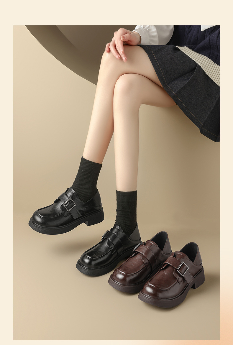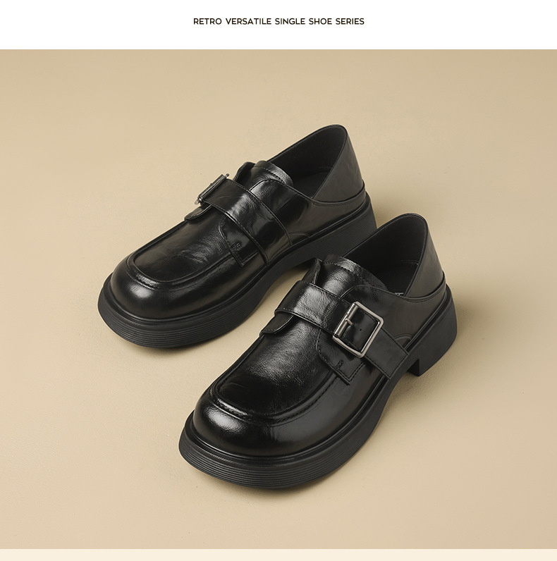 Augu Shiden negro Lefour zapatos de mujer 2026 primavera nueva suela gruesa estilo británico jk zapatos de cuero de viaje casuales