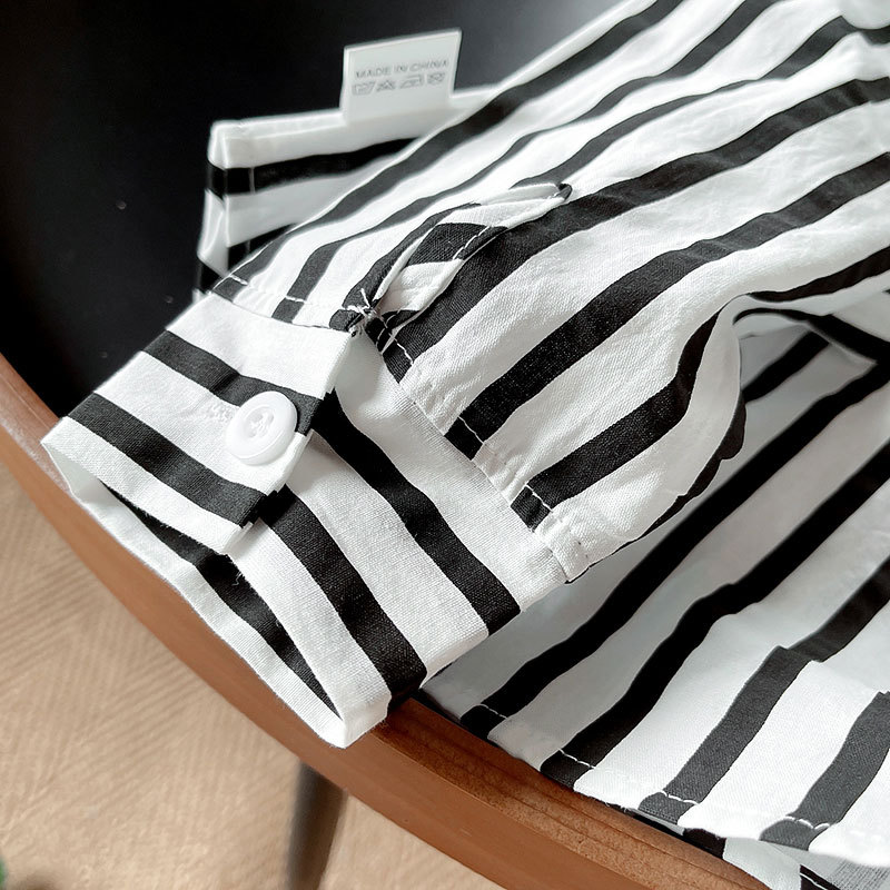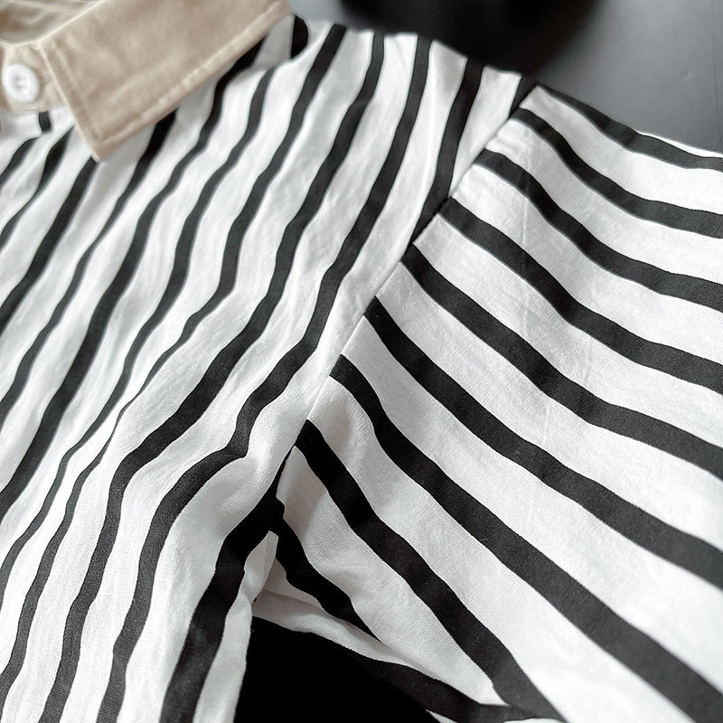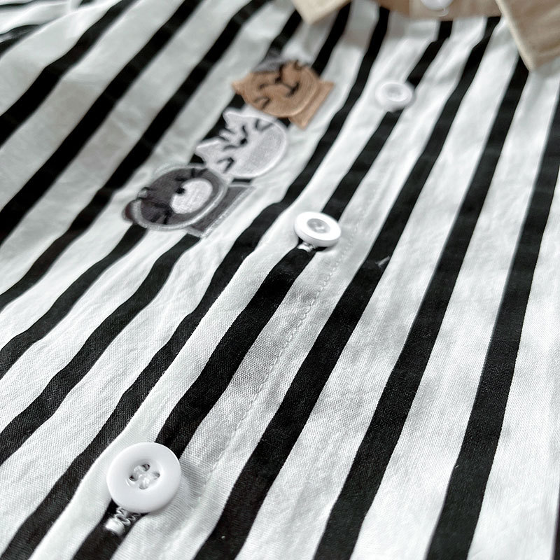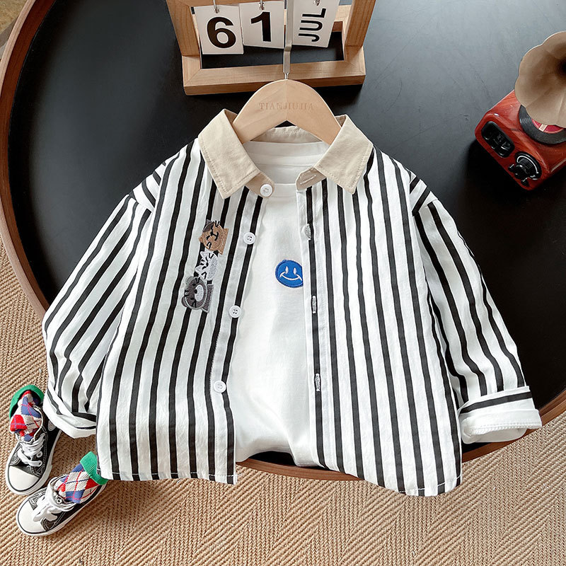 Camisas para niños ropa de otoño para niños 2025 nueva camisa de bordado de dibujos animados a rayas de solapa ropa para niños chaqueta coreana top