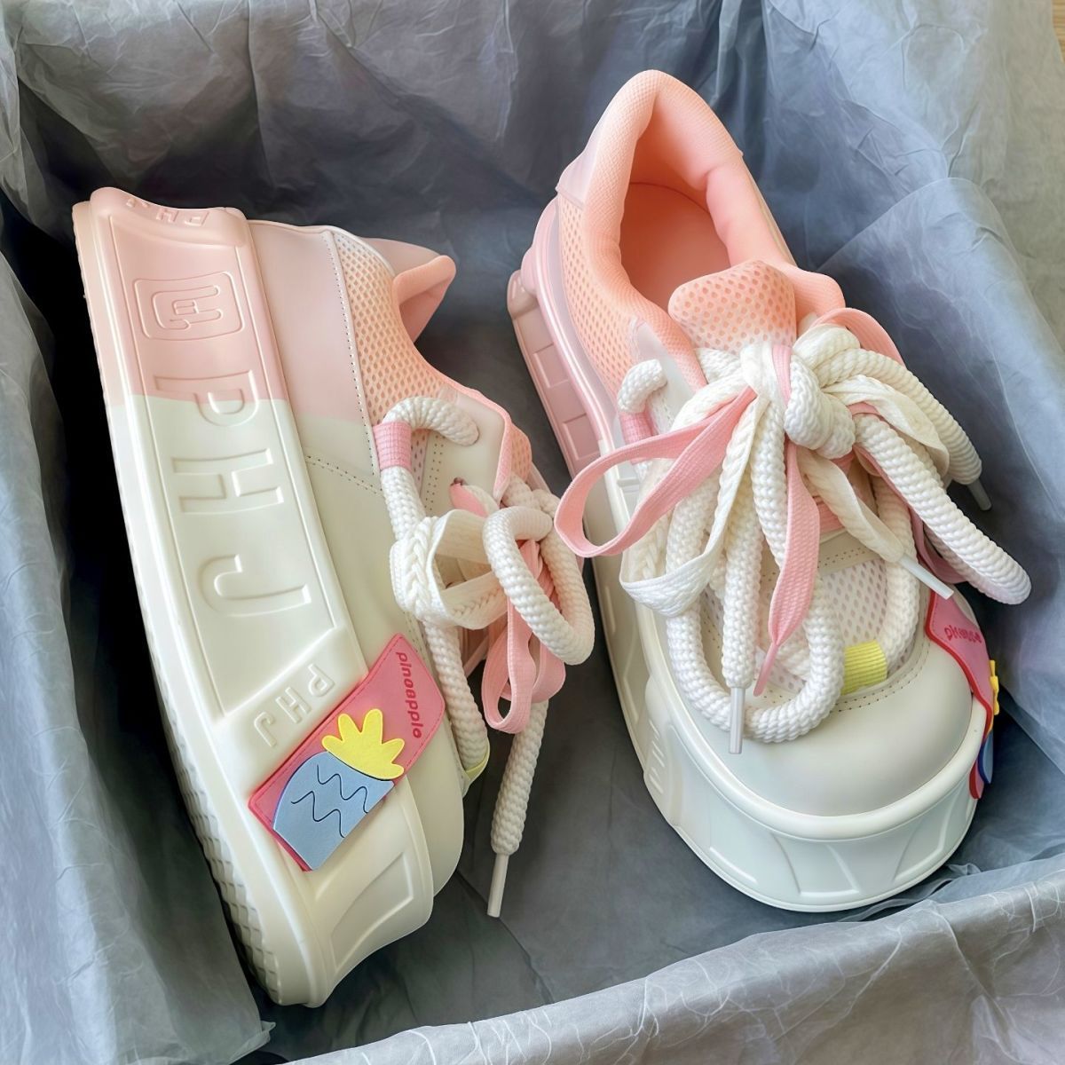 2025 primavera y verano nuevos zapatos de pan de dopamina de comercio exterior para mujeres de alto valor de muffin fondo de cabeza redonda de moda zapatos de skate para mujeres