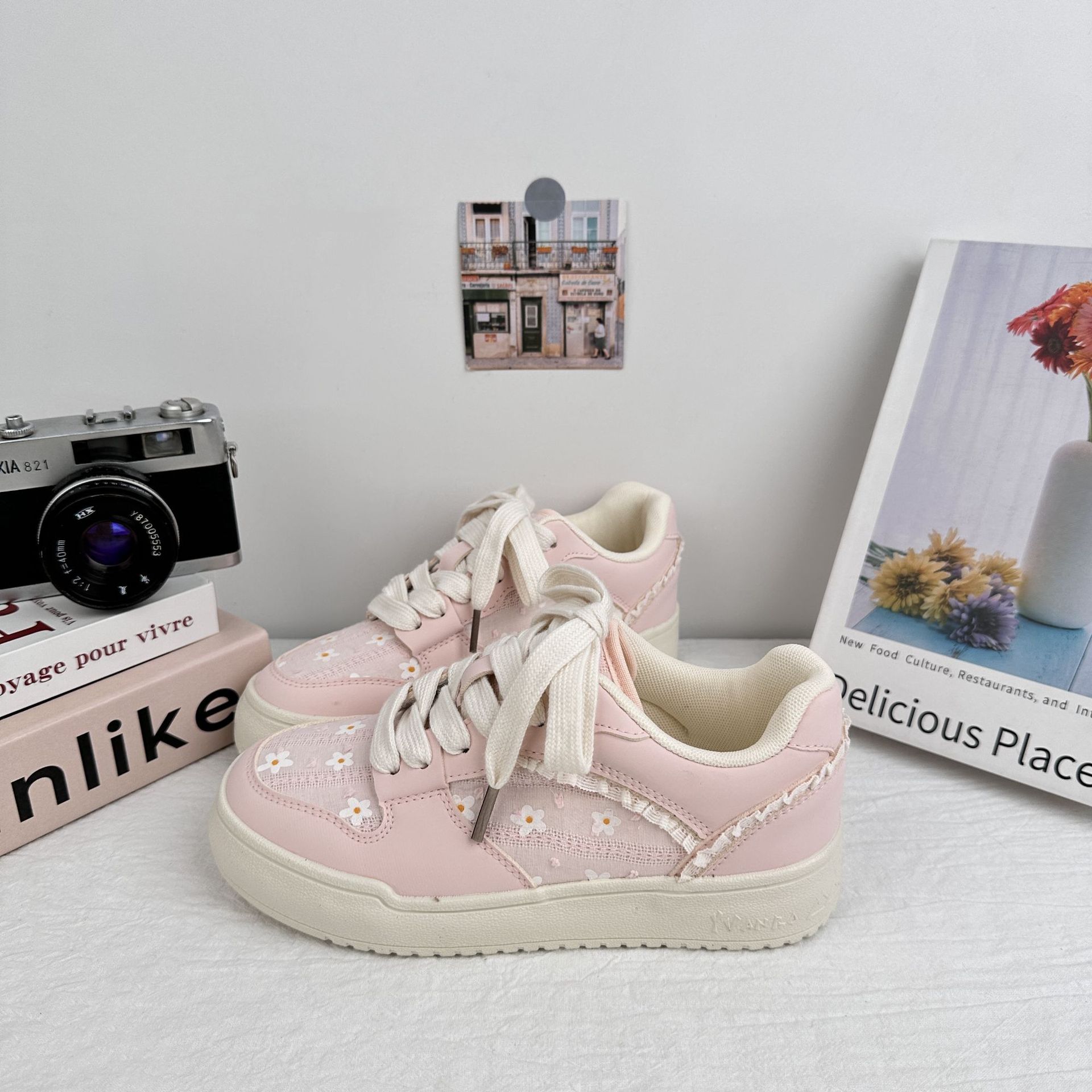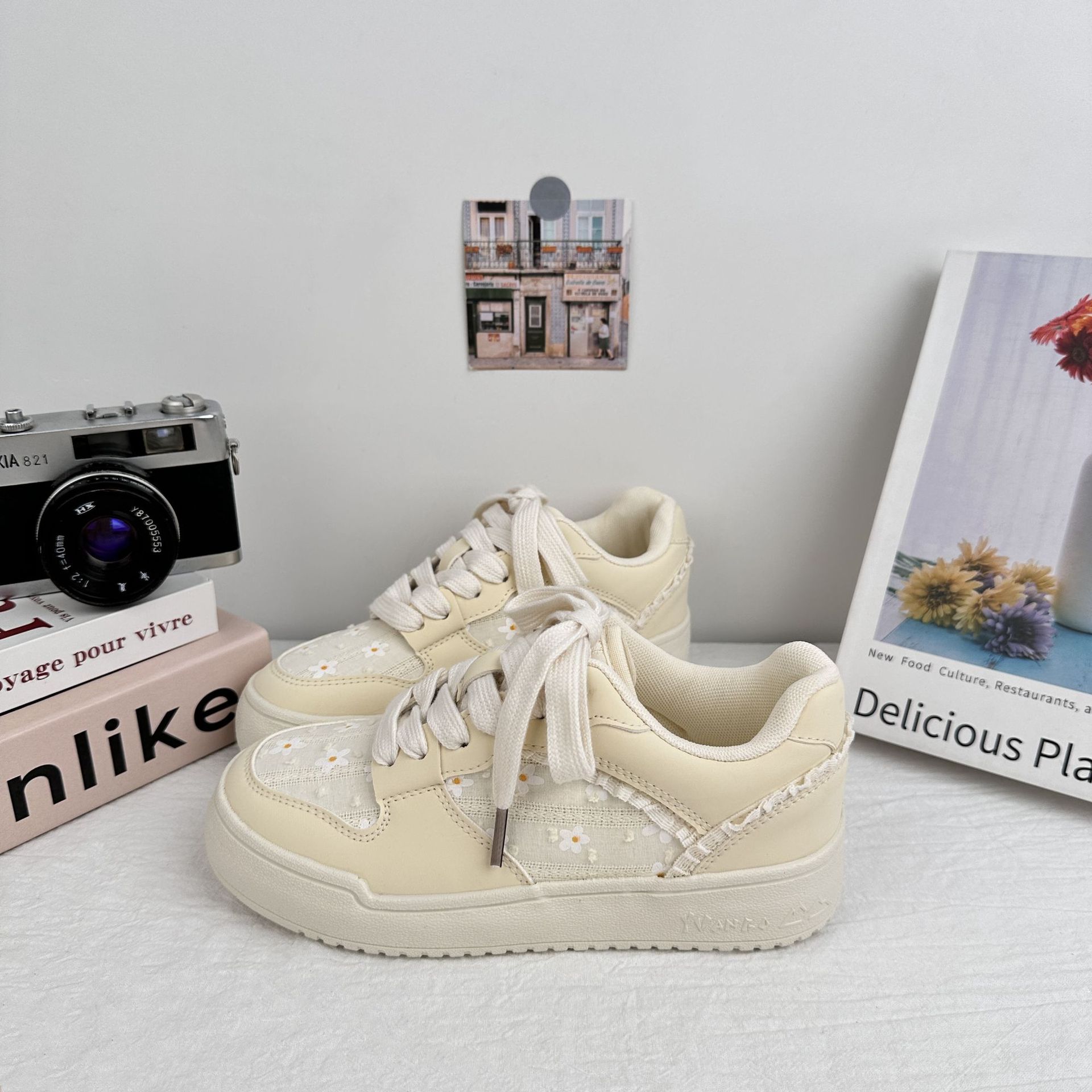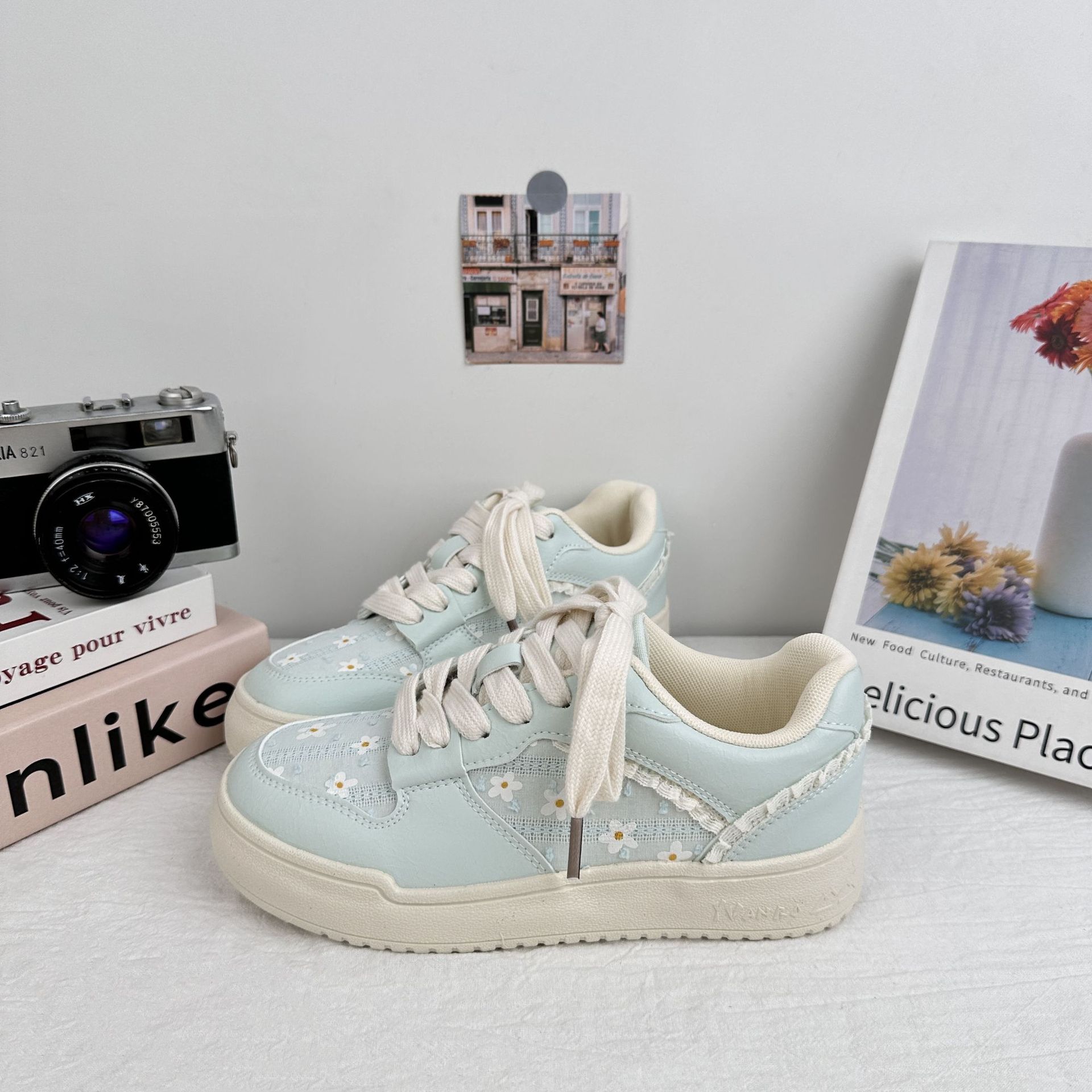 Yuanbo ins viento zapatos de madera de mujer 2025 verano nuevo borde de encaje pequeño fresco y transpirable zapatos blancos