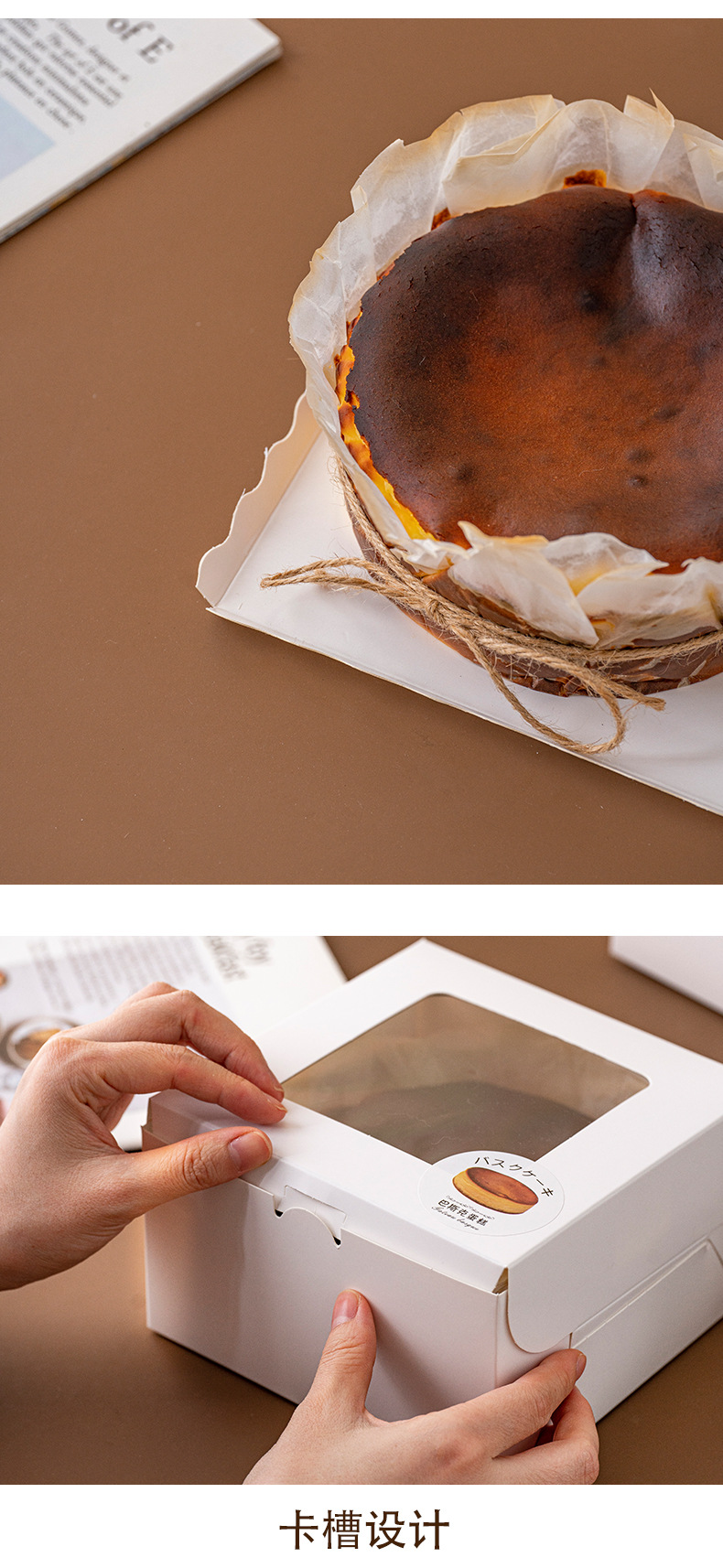 Caja de pastel vasco de 6 pulgadas, 7 pulgadas, 8 pulgadas, caja de queso, caja de embalaje de queso roca, caja de embalaje de queso