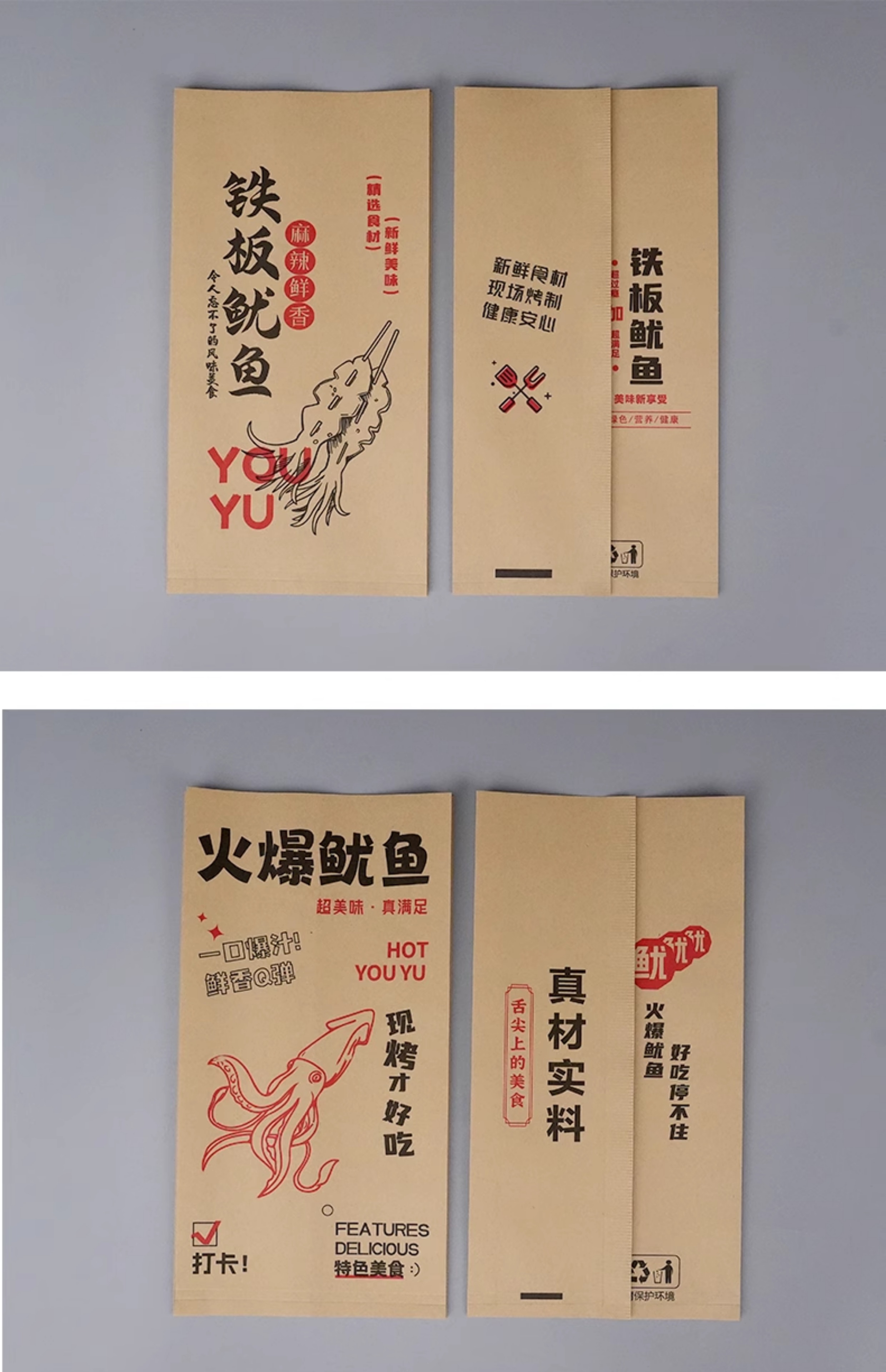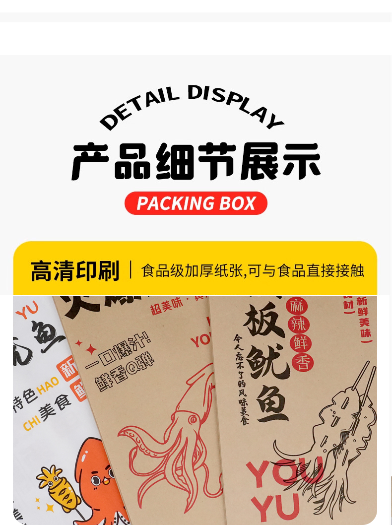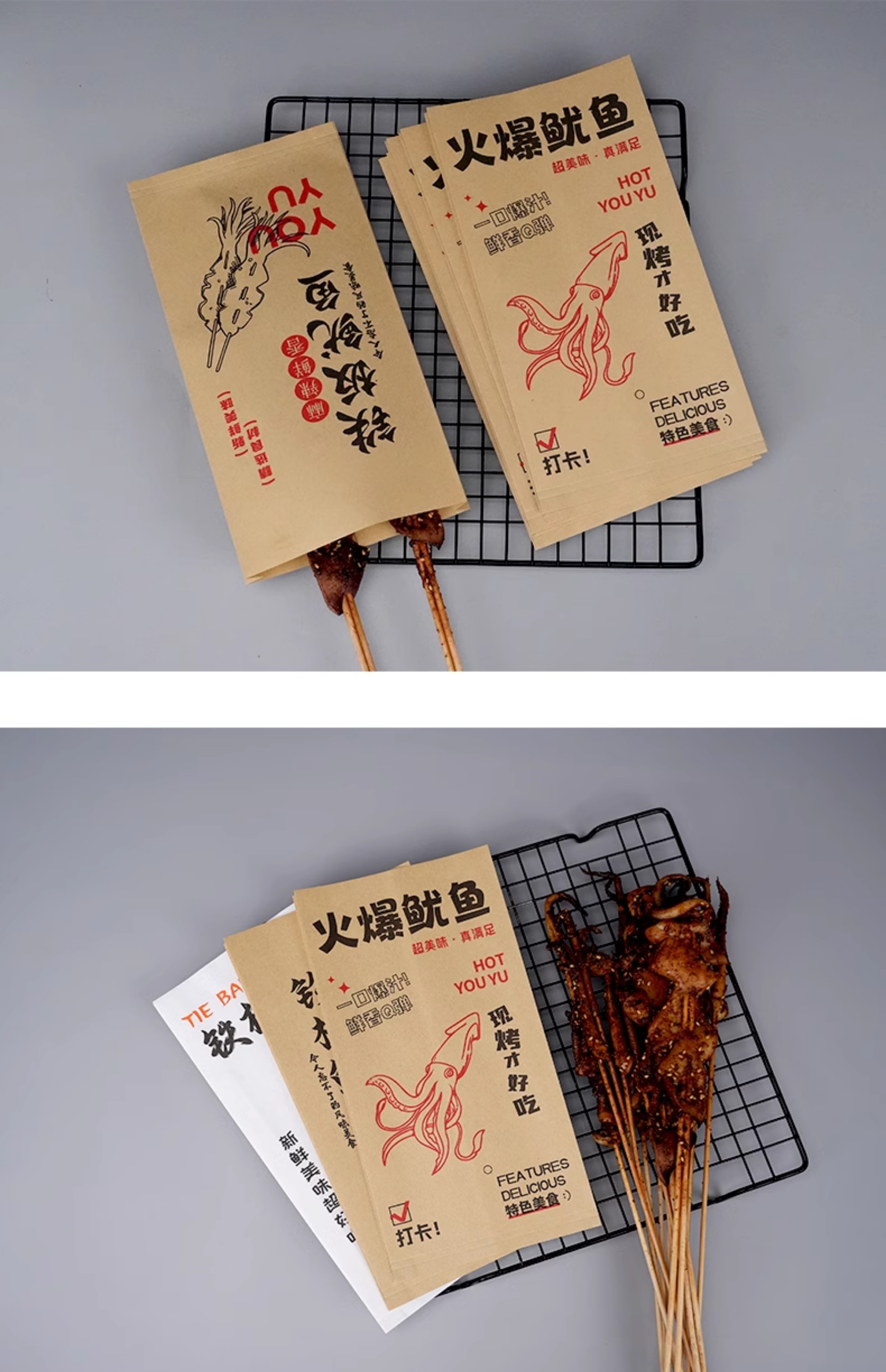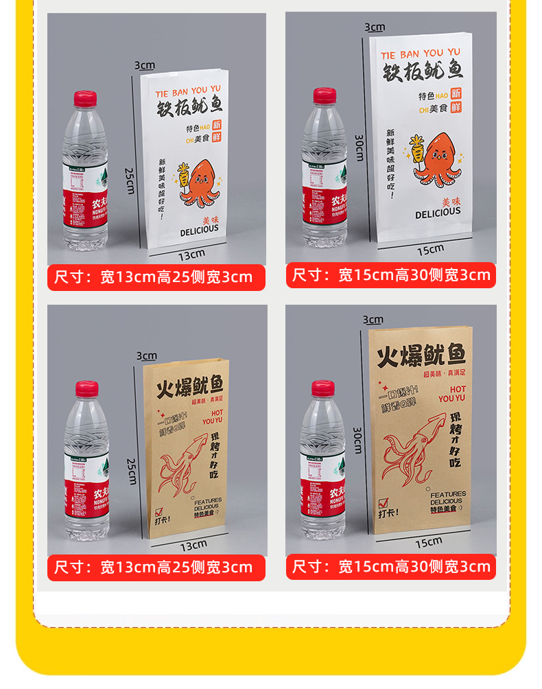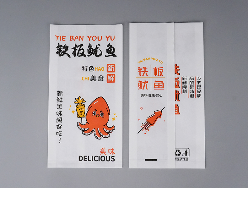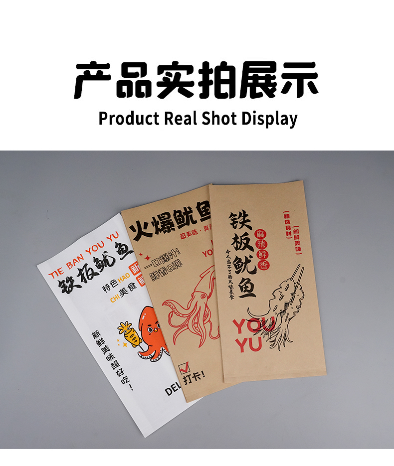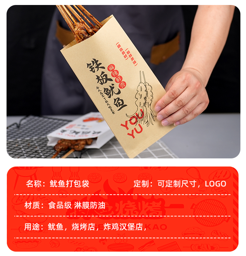 Bolsas de papel de calamar de hierro desechables bolsas de calamar de barbacoa bolsas de papel a prueba de aceite bolsas de alimentos bolsas kraft personalizadas