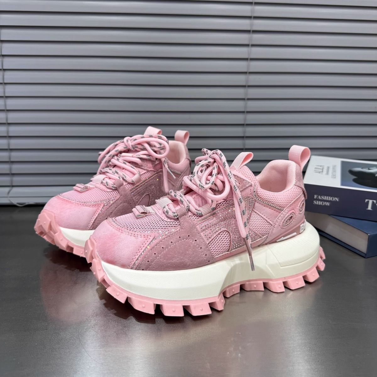Zapatos blancos de suela gruesa para mujer 2025 verano nuevo estilo malla transpirable moda todo-fósforo ligero realce deportes y zapatillas de deporte de ocio