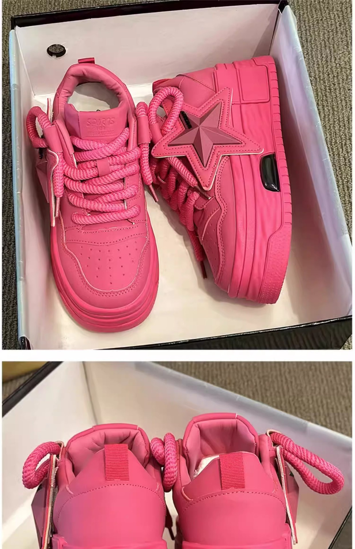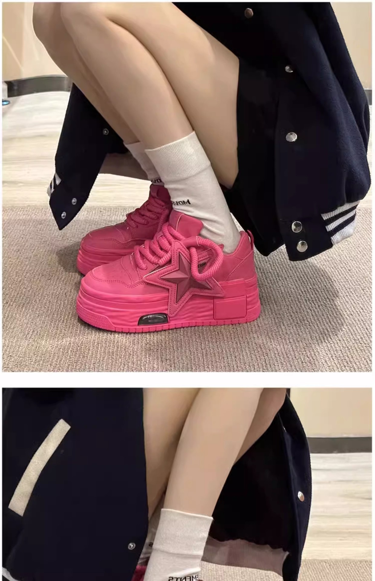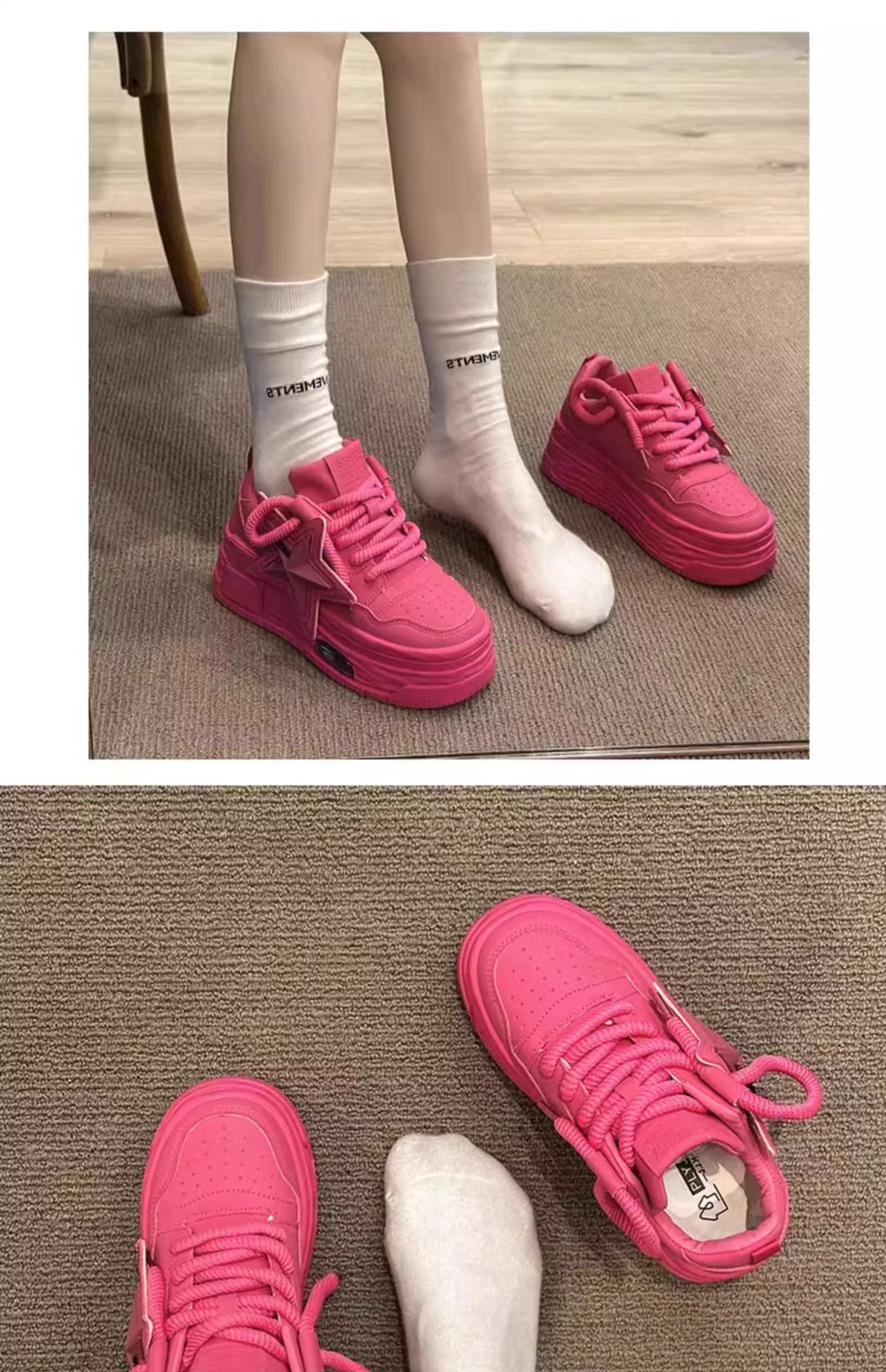 Productos europeos estrella con cordones plataforma plataforma zapatos casuales 2025 nuevo estilo rojo caliente ins súper caliente zapatos casuales mujeres