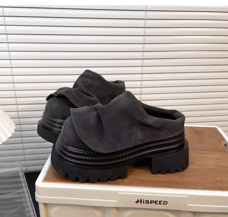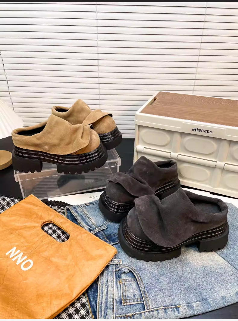 Zapatillas de loto de moda para mujeres 2025 verano y otoño nuevos zapatos de tacones altos con suela gruesa de diseño de nicho con cabeza media zapatilla para mujeres