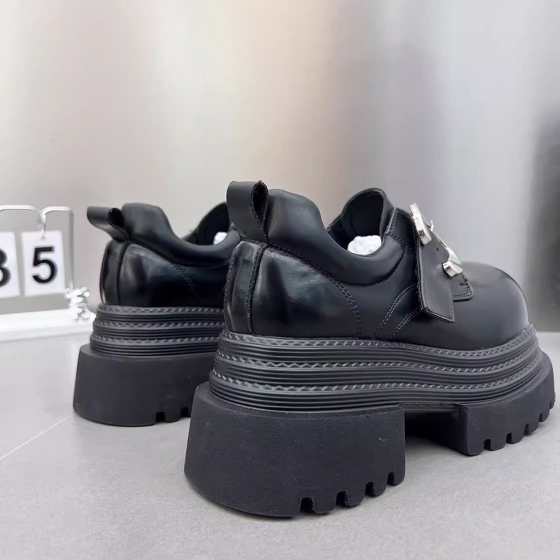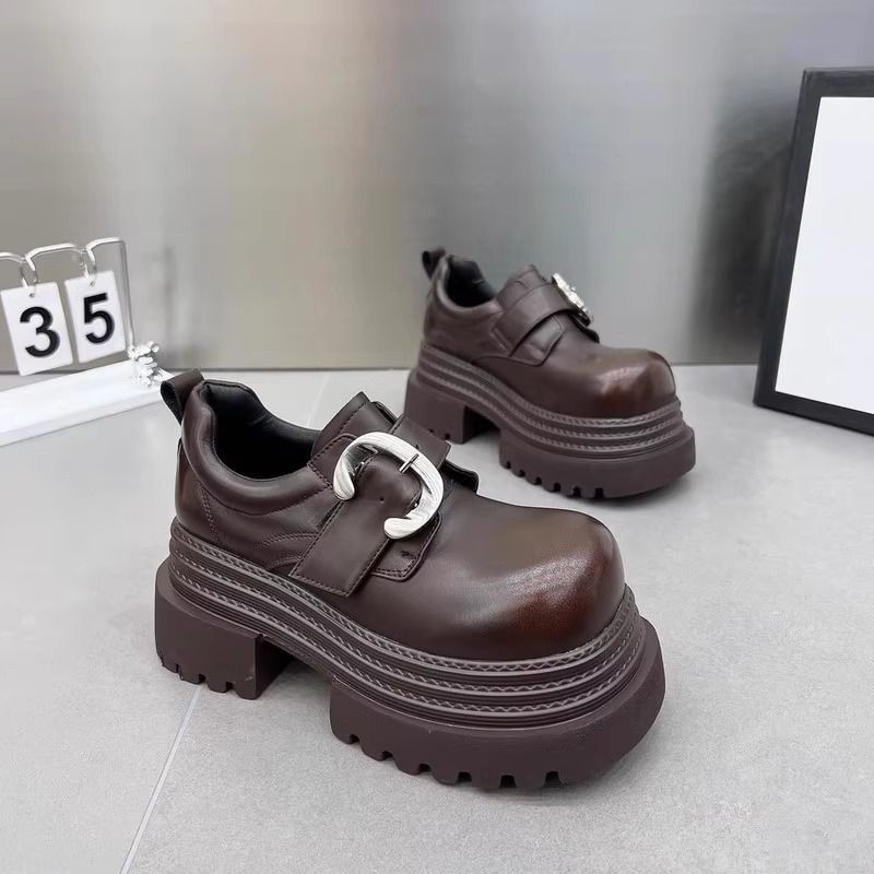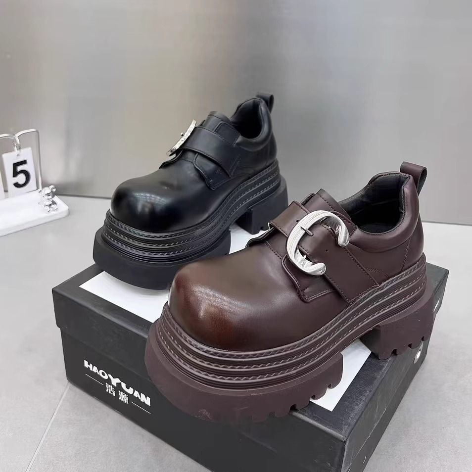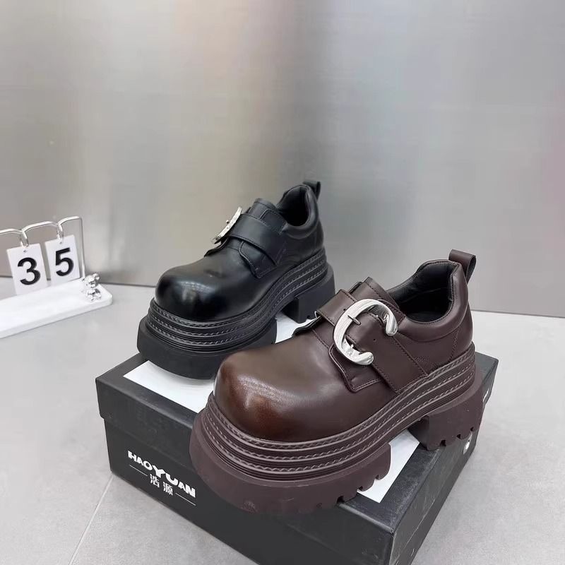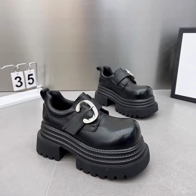 Gran Bretaña de estilo de calzado de altura de tacones gruesos zapatos Lefour mujeres 2025 primavera nuevo negro universal gran hebilla metálica zapatos