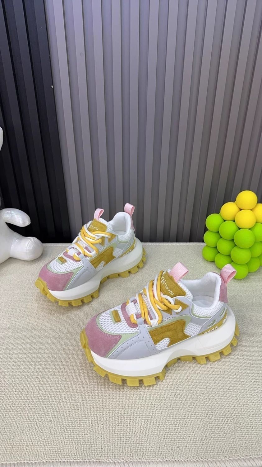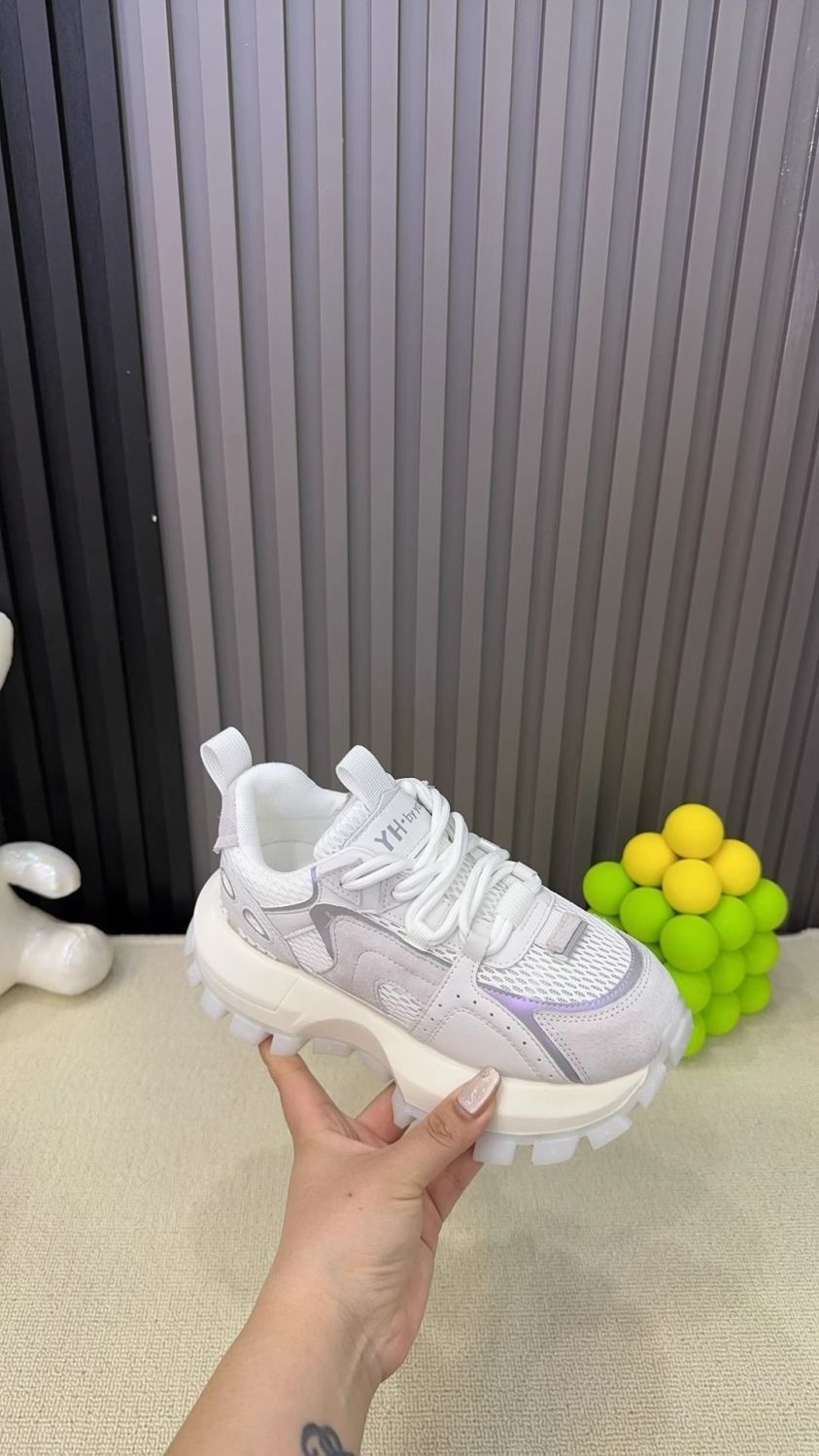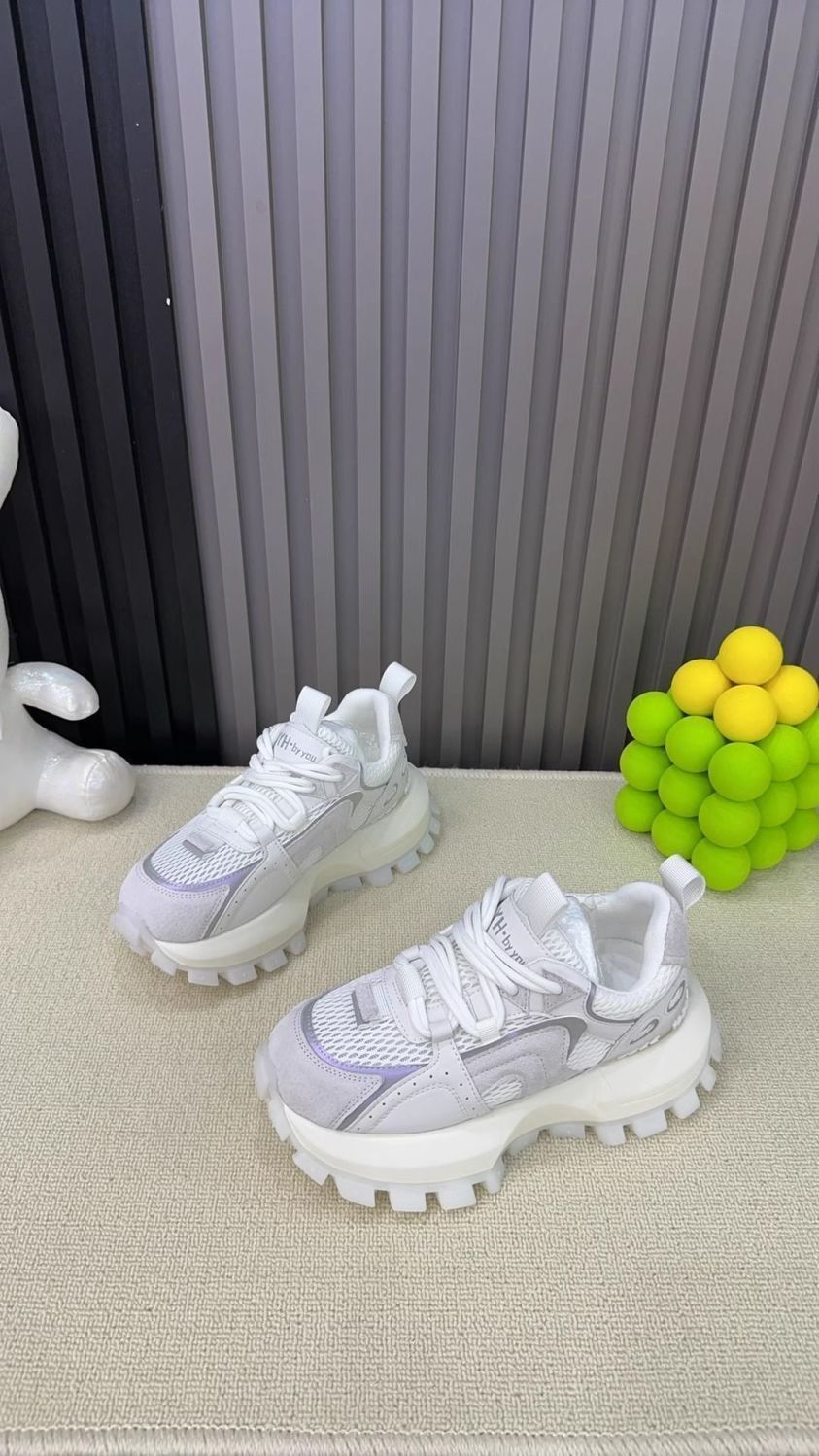 Productos europeos zapatos de papá de suela gruesa para mujer 2025 verano nuevo estilo calle frita todo fósforo malla transpirable realce zapatos blancos deportivos