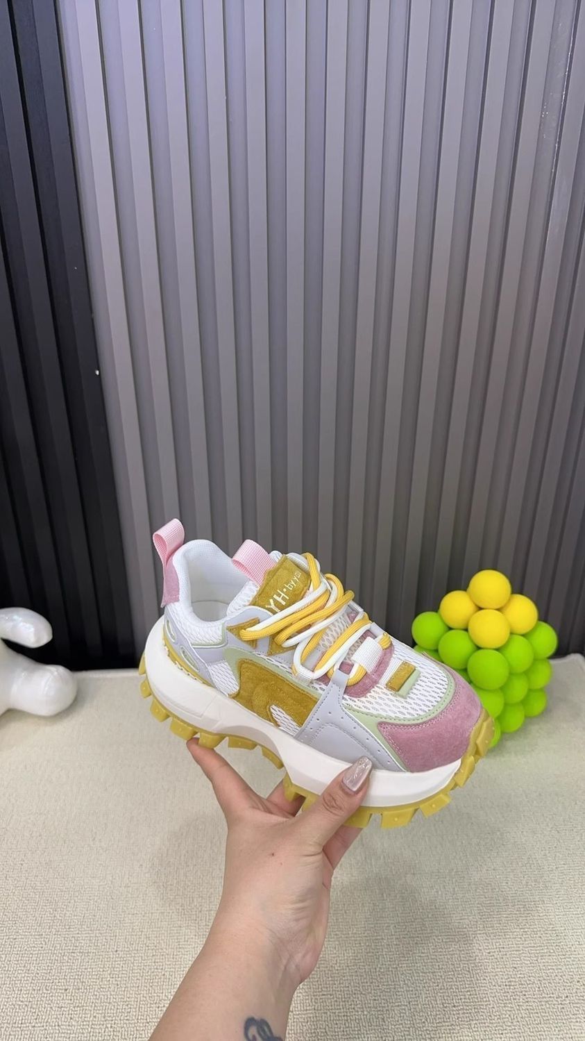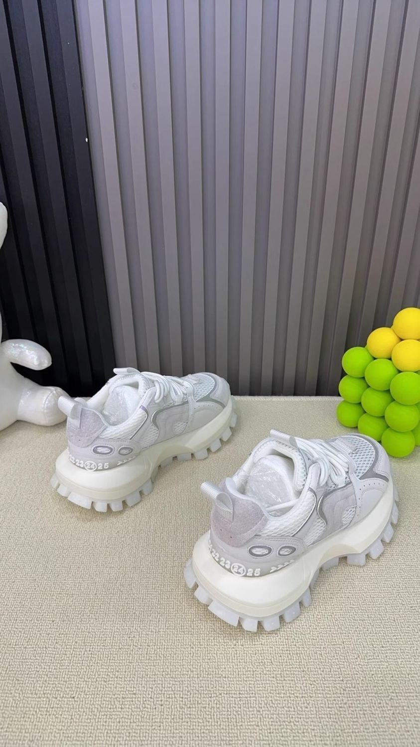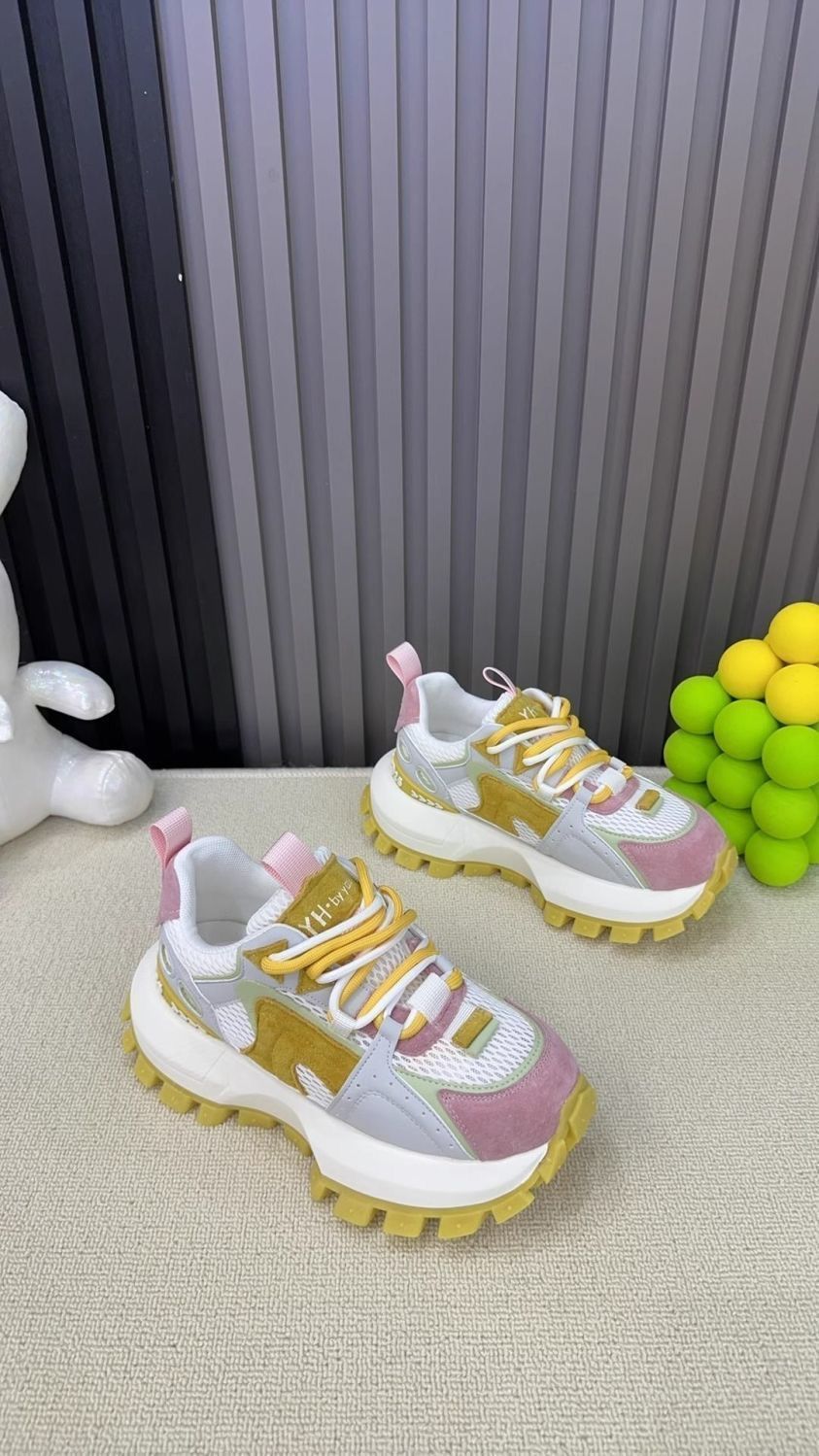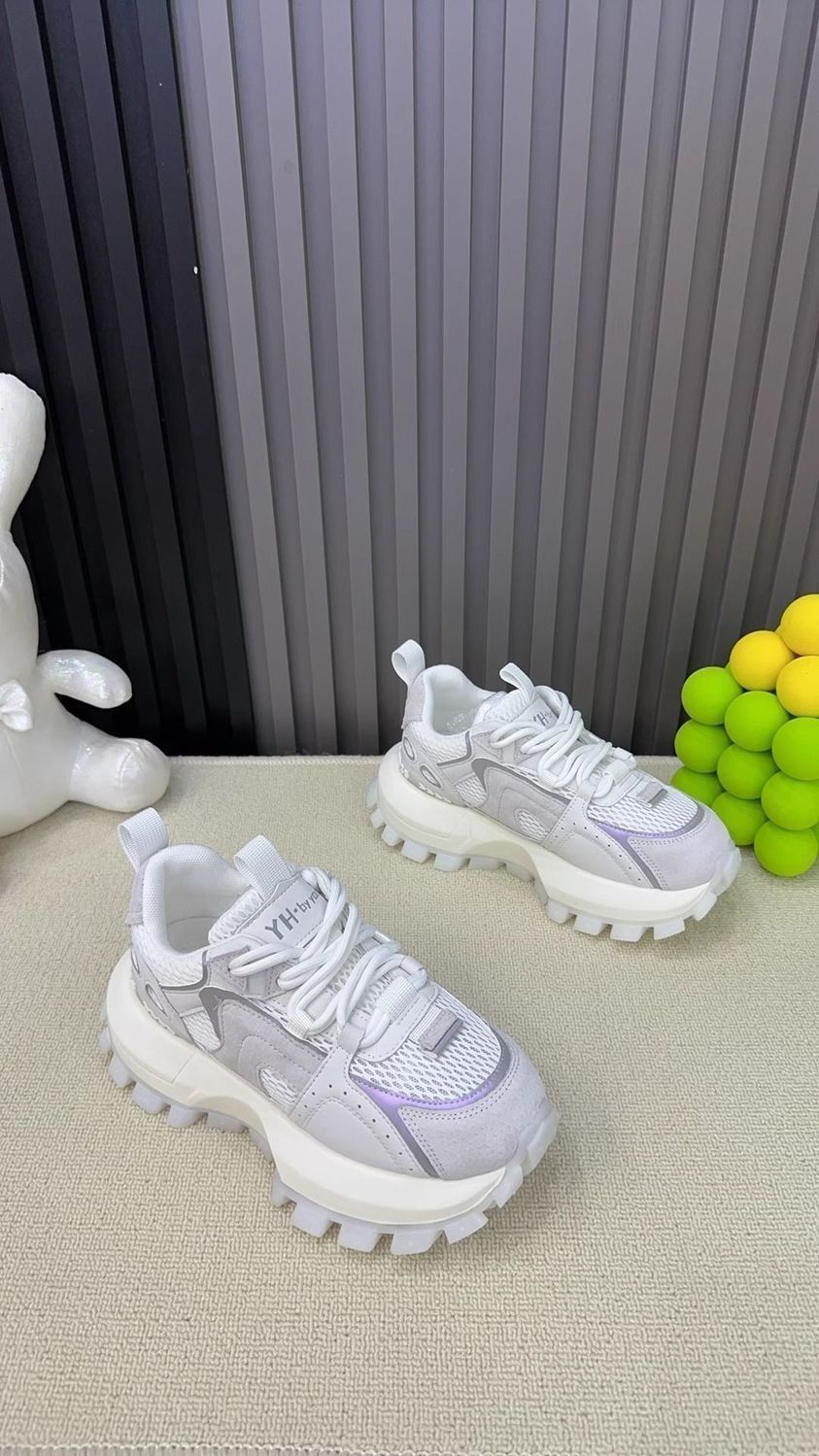 Productos europeos zapatos de papá de suela gruesa para mujer 2025 verano nuevo estilo calle frita todo fósforo malla transpirable realce zapatos blancos deportivos