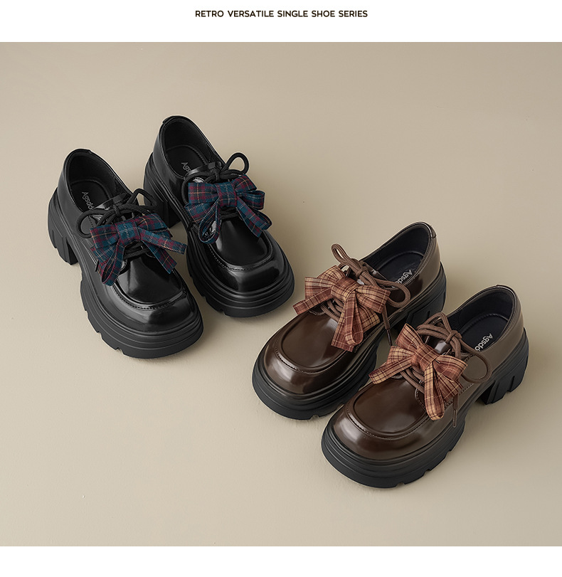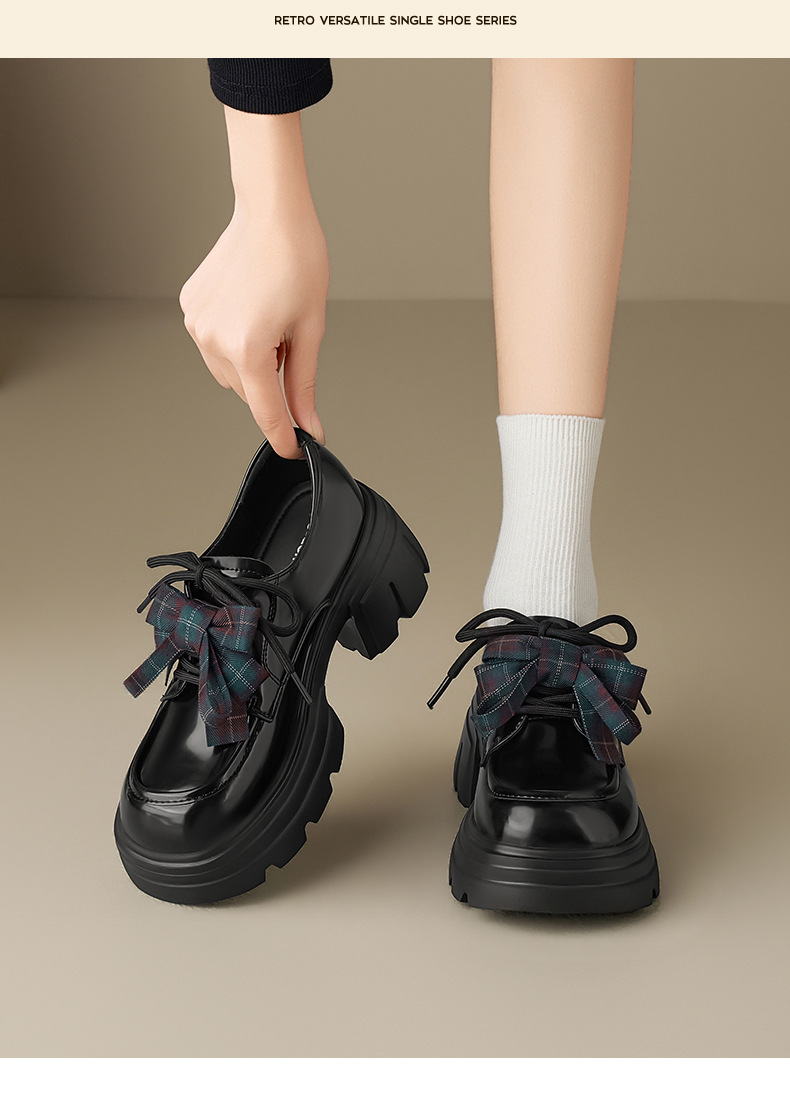Zapatos de Lefour 2026 nueva primavera negra con suela gruesa estilo británico retro arco zapatos de cuero