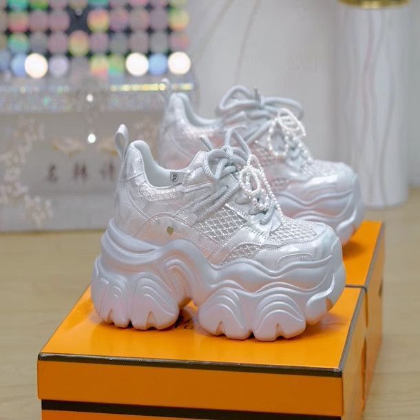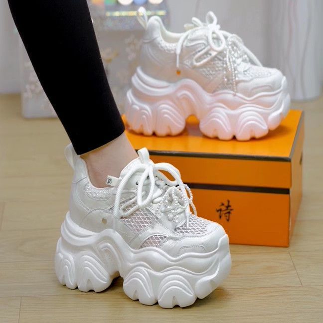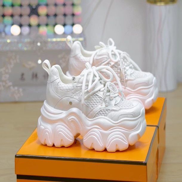 Transmisión en vivo explosiva de pies pequeños, zapatos de altura gruesa, zapatos de papá, zapatos casuales de muffin de primavera de 2025