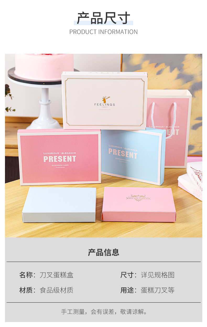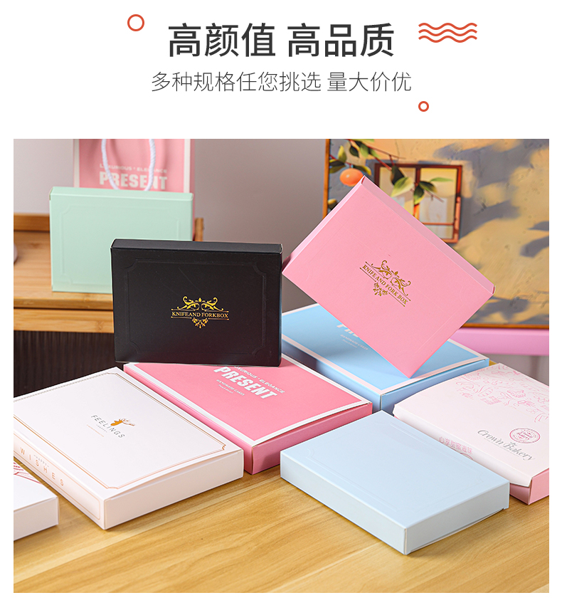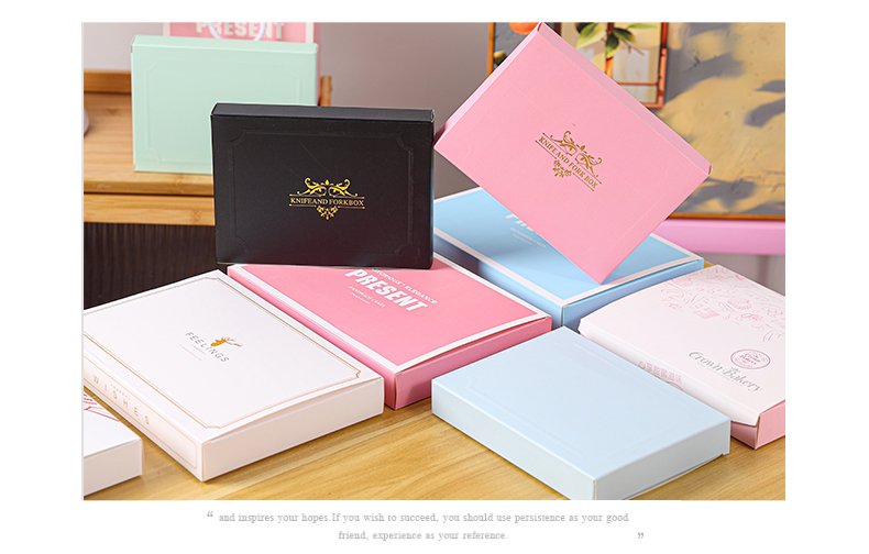 Cuchillo y tenedor caja de pastel de cumpleaños cubiertos cajas de papel una vez cuchillo y tenedor caja de vela se puede personalizar estampado