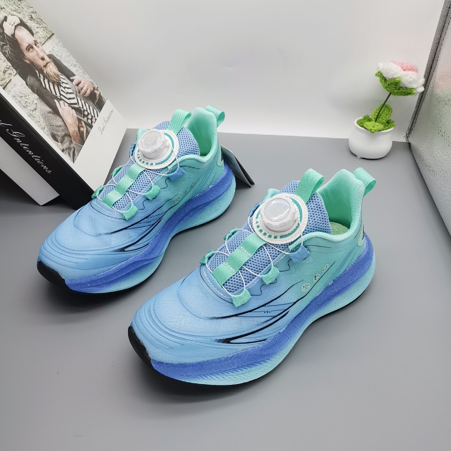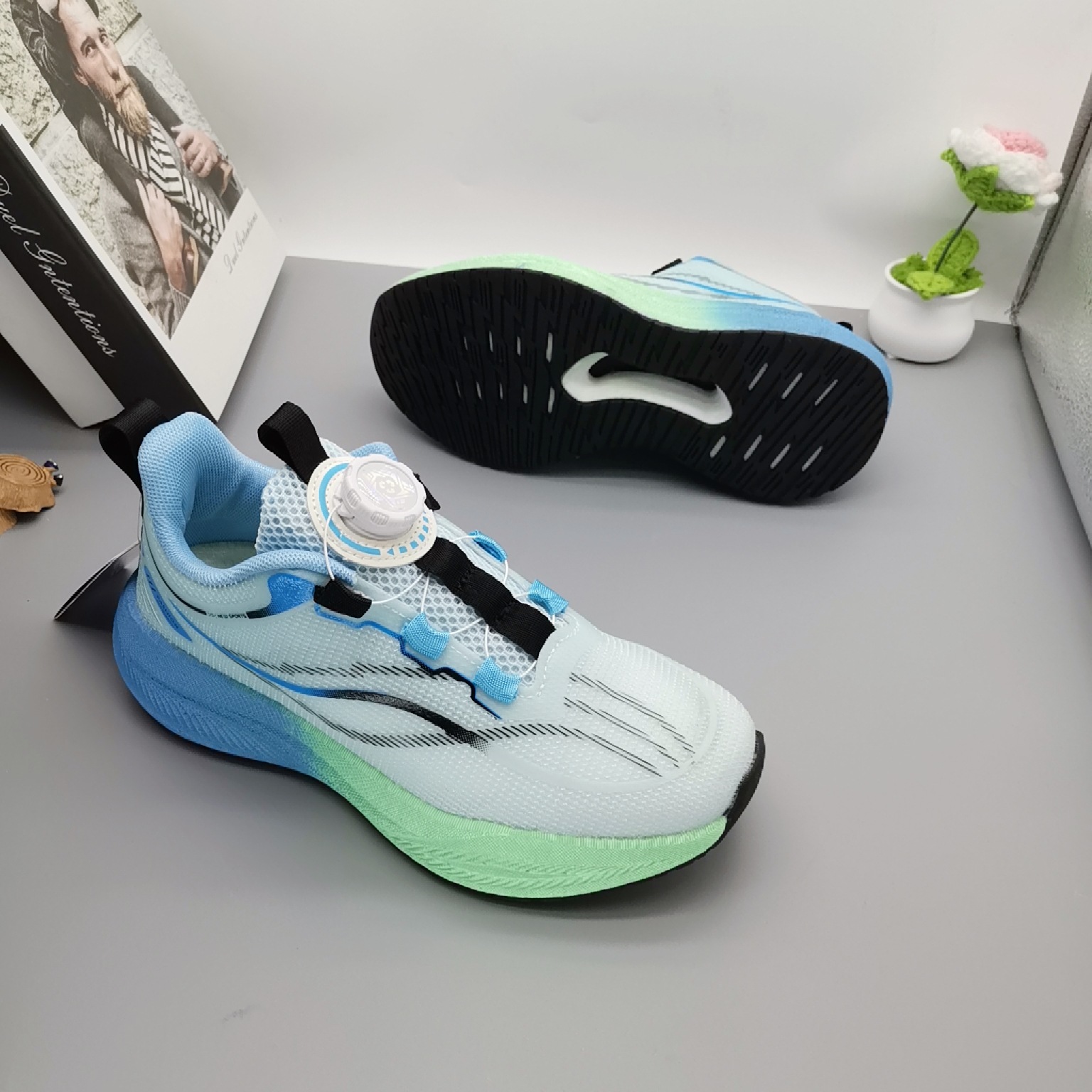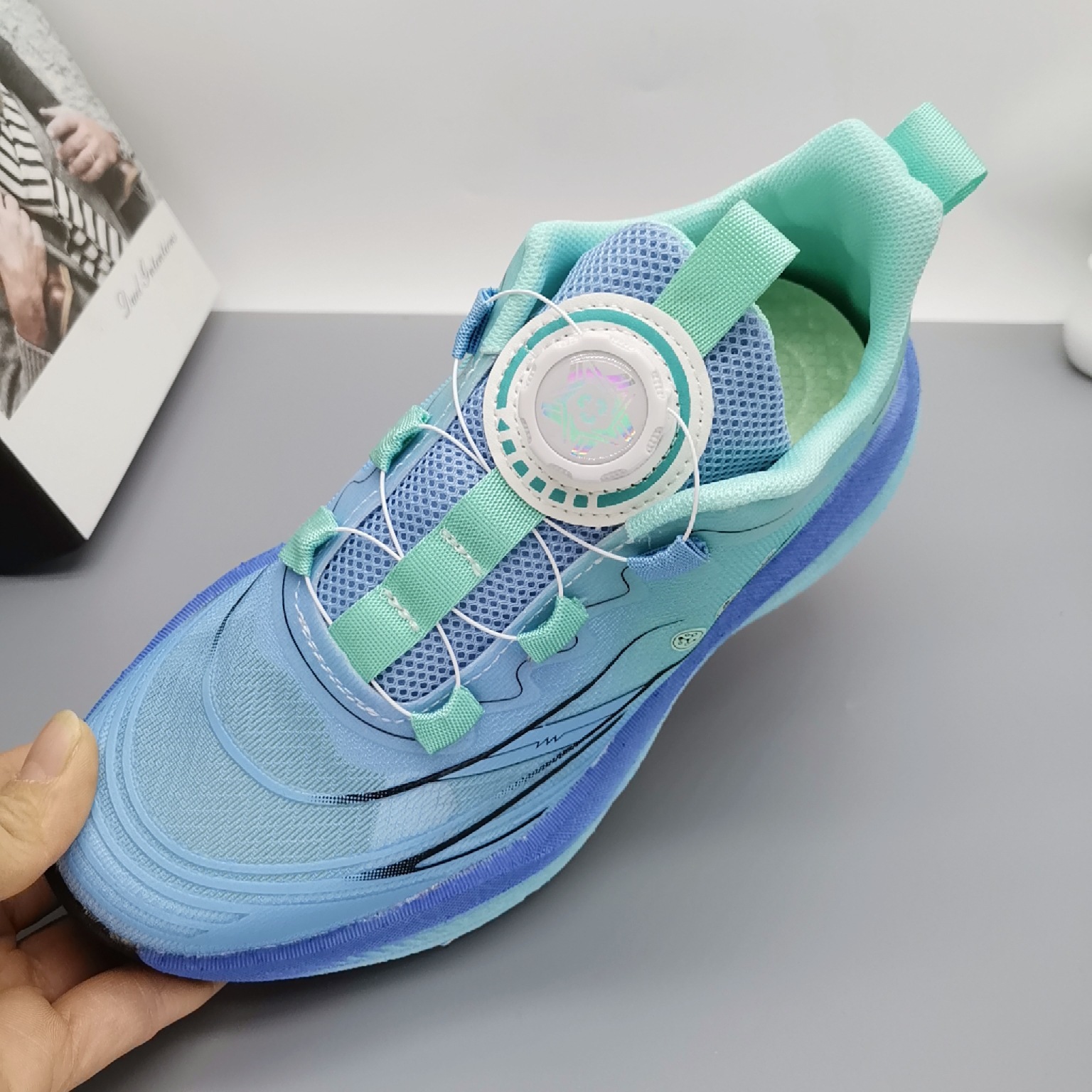 Calzado para correr ligero a través de la red para niños Calzado deportivo con suela de carbón para niños Calzado infantil de gran tamaño Calzado transpirable Calzado deportivo con botones