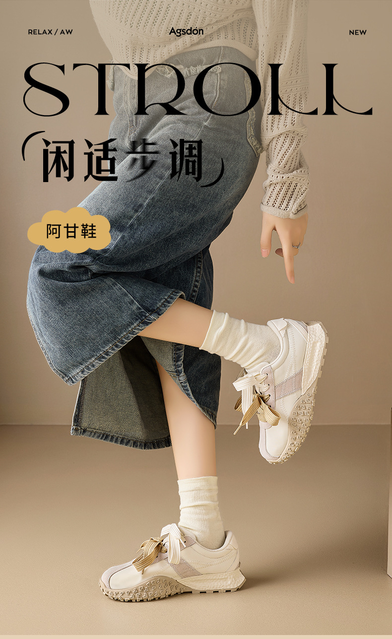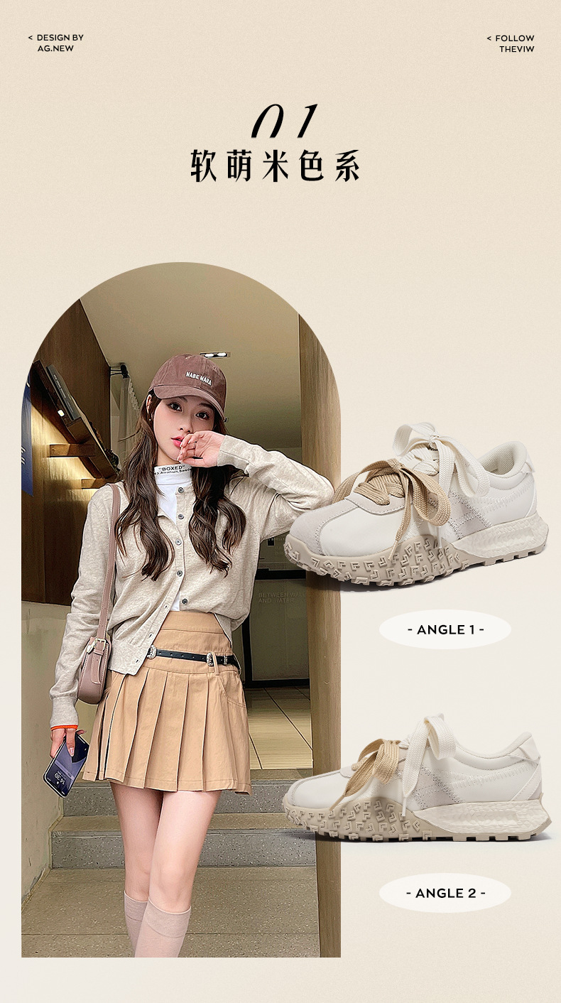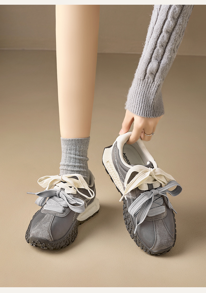 Augu Shi Dengde zapatos de entrenamiento para mujeres 2025 nuevo otoño invierno grueso zapatos blancos pequeños zapatos deportivos ligeros ociosos Agan