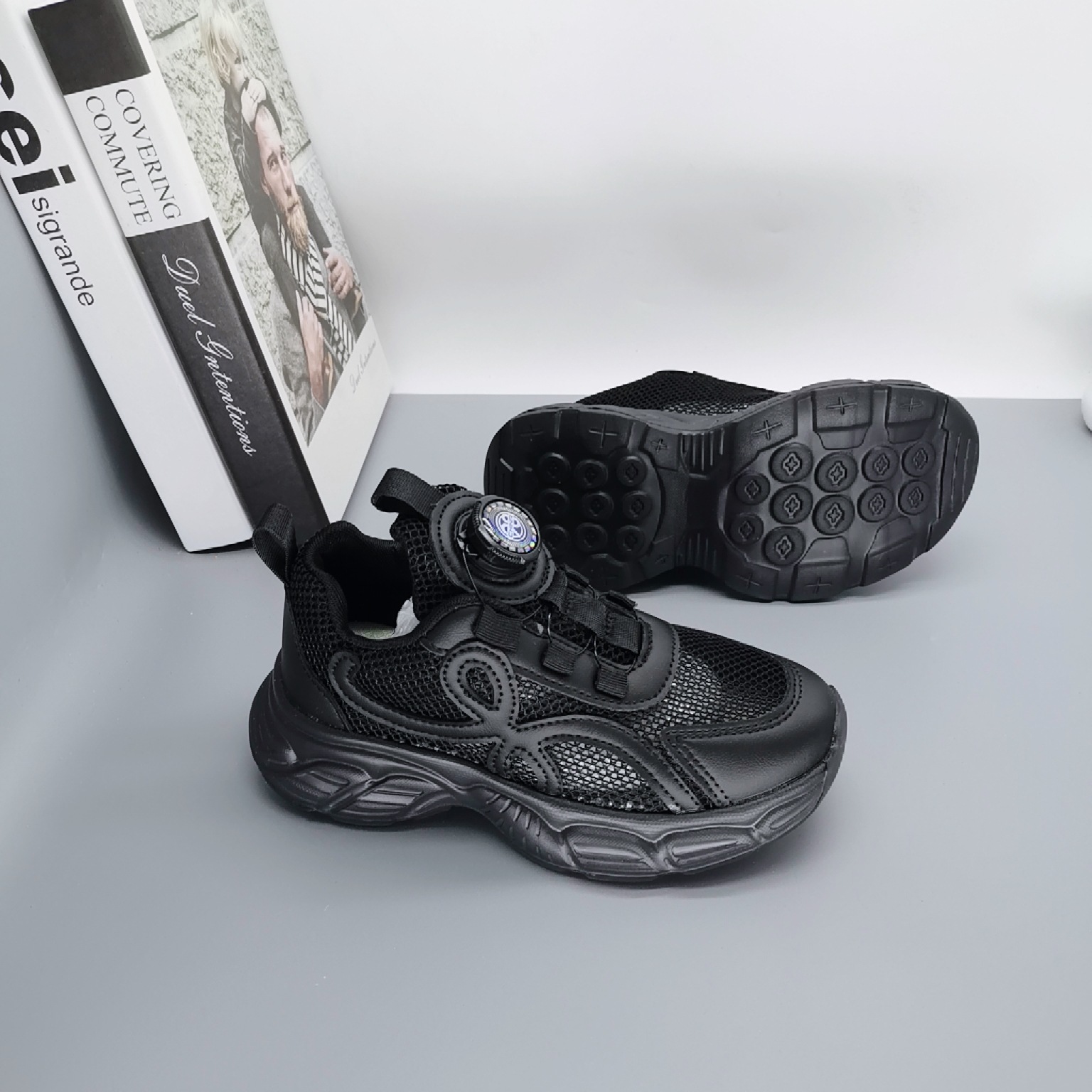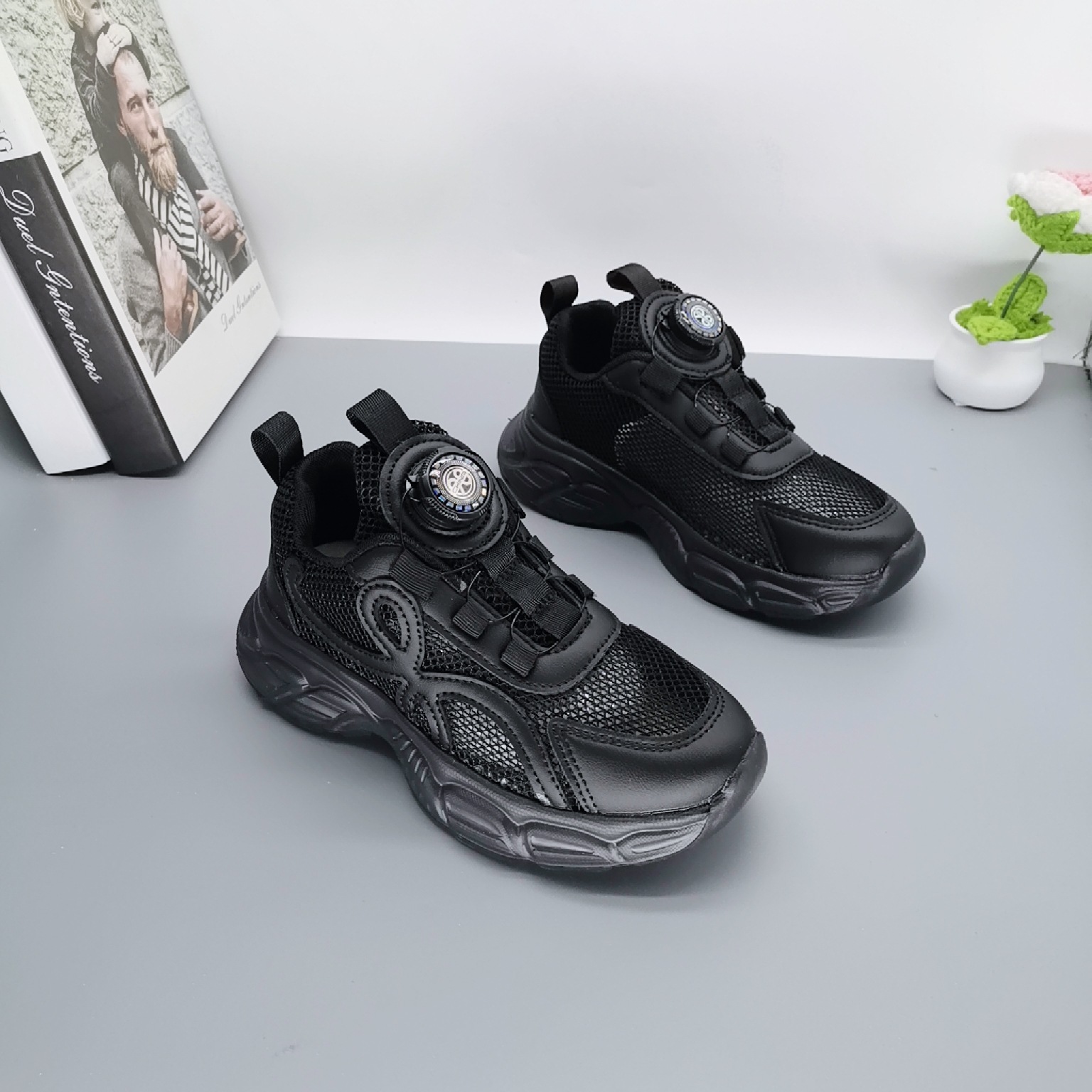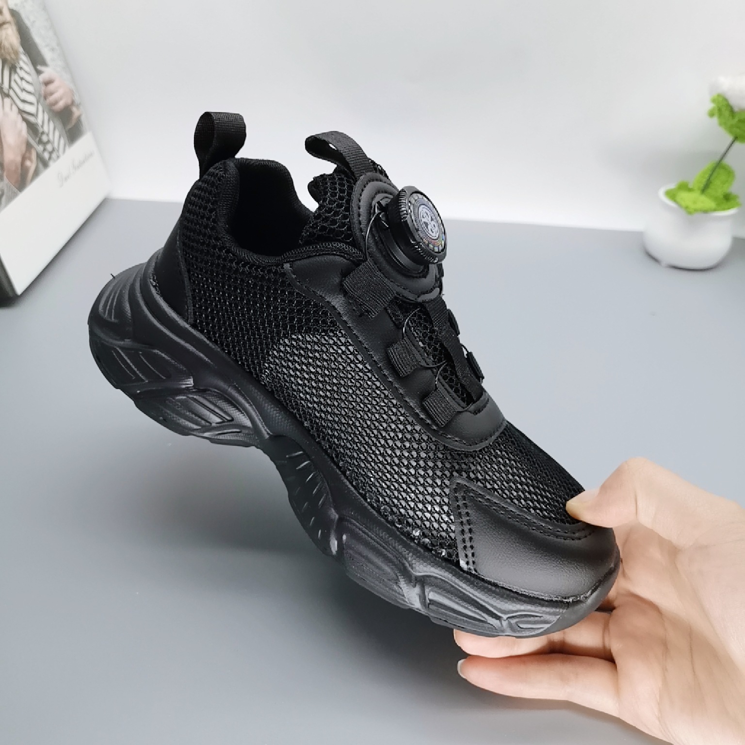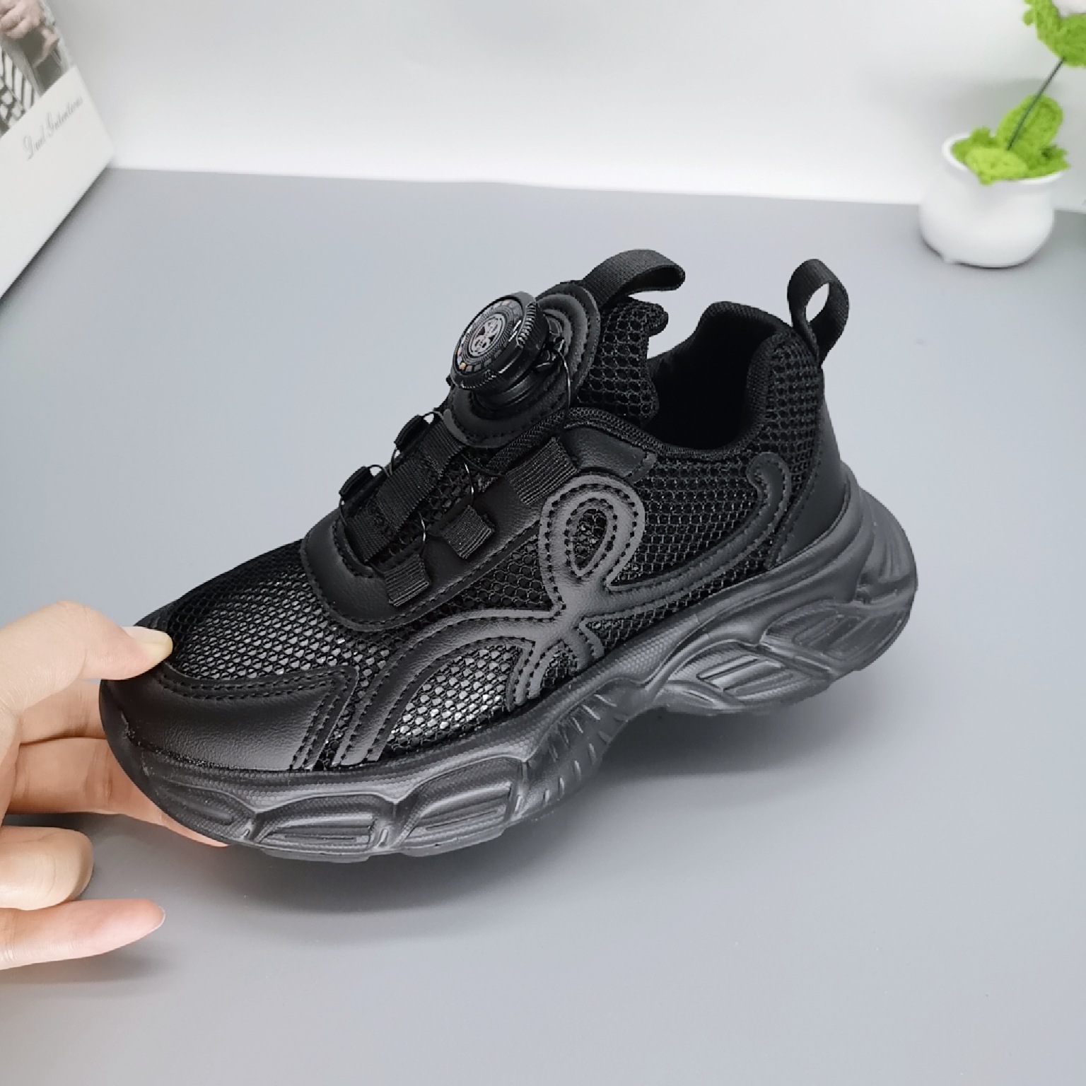 Single Net Boys 2025 New Spring Children's Velcro transpirable Calzado deportivo para niños de mediana edad Calzado para correr con suela ultraligera