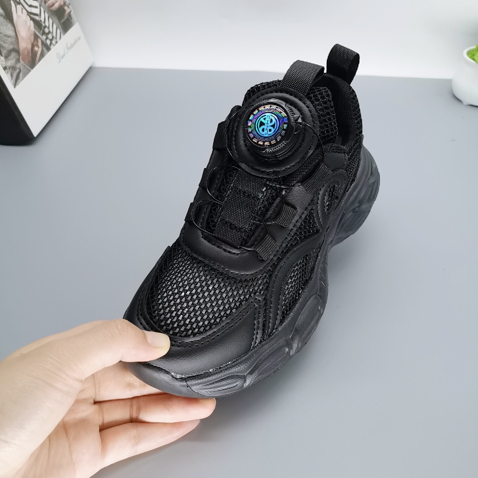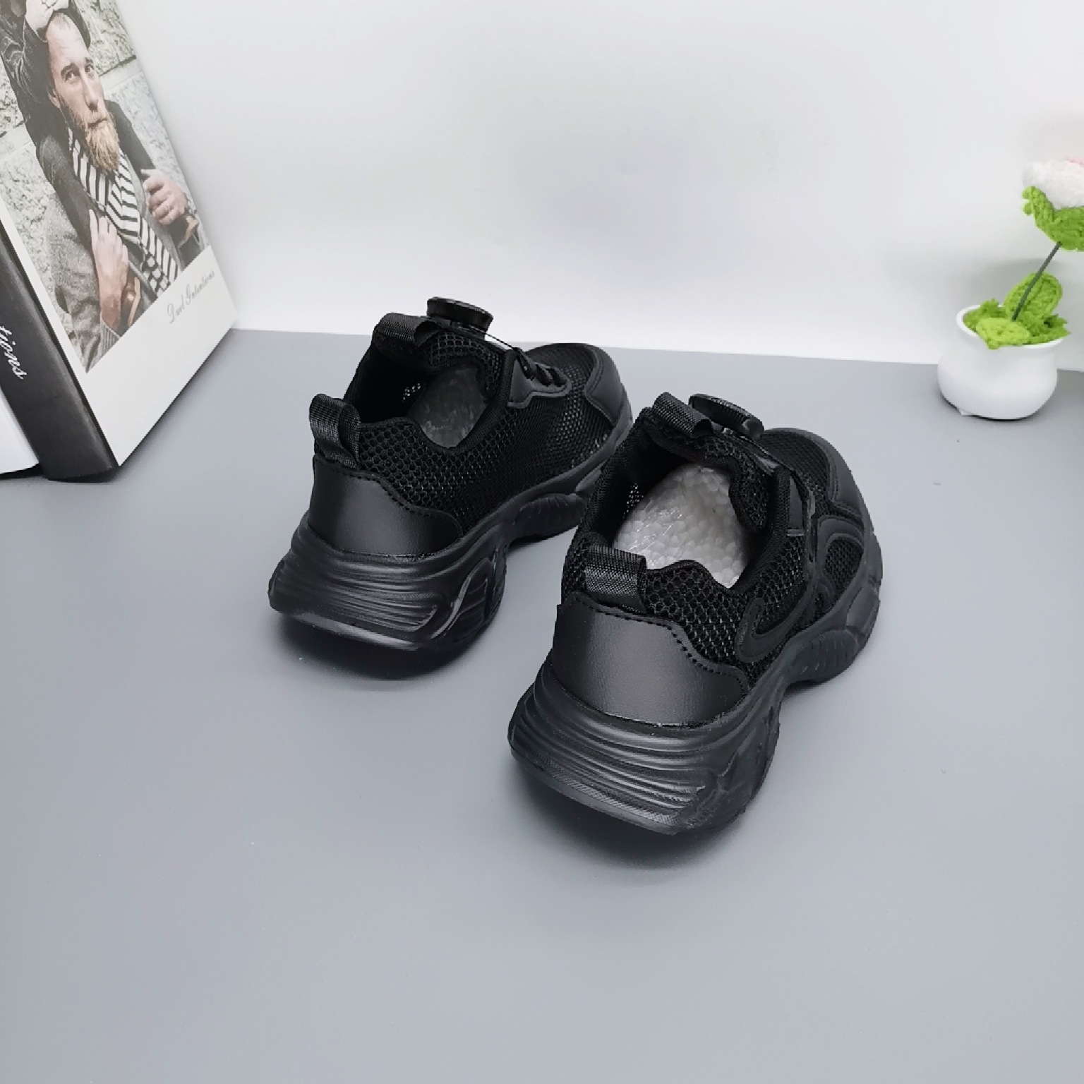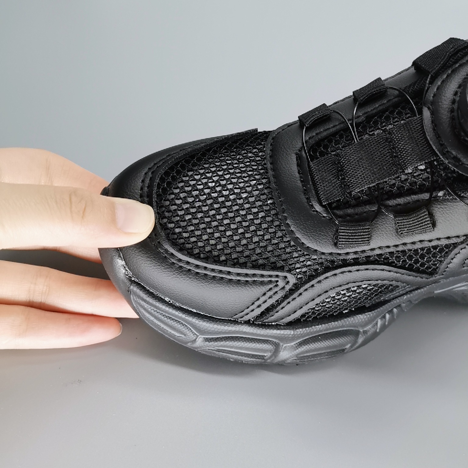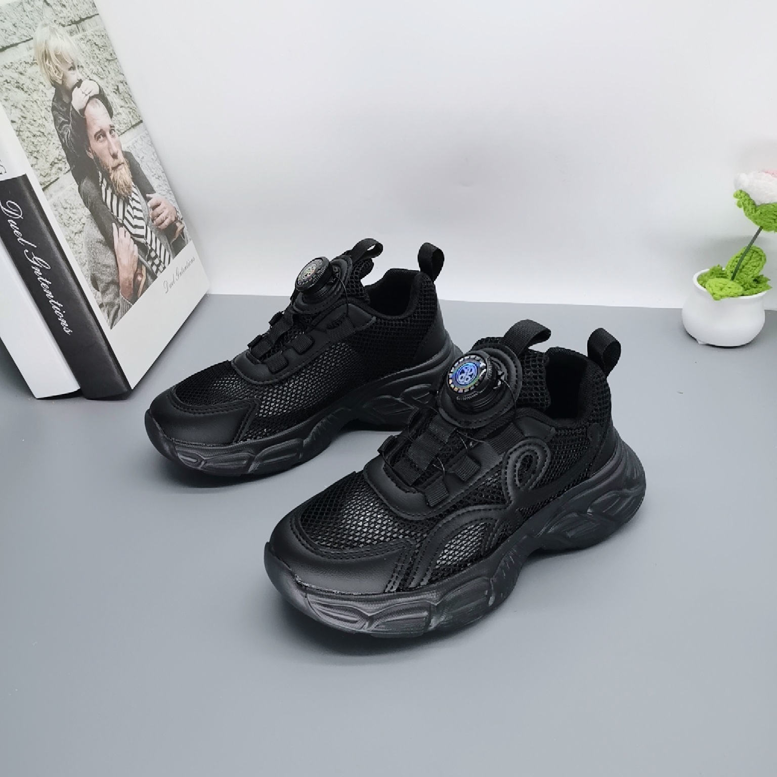 Single Net Boys 2025 New Spring Children's Velcro transpirable Calzado deportivo para niños de mediana edad Calzado para correr con suela ultraligera