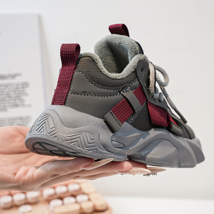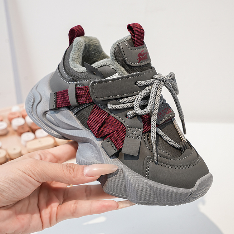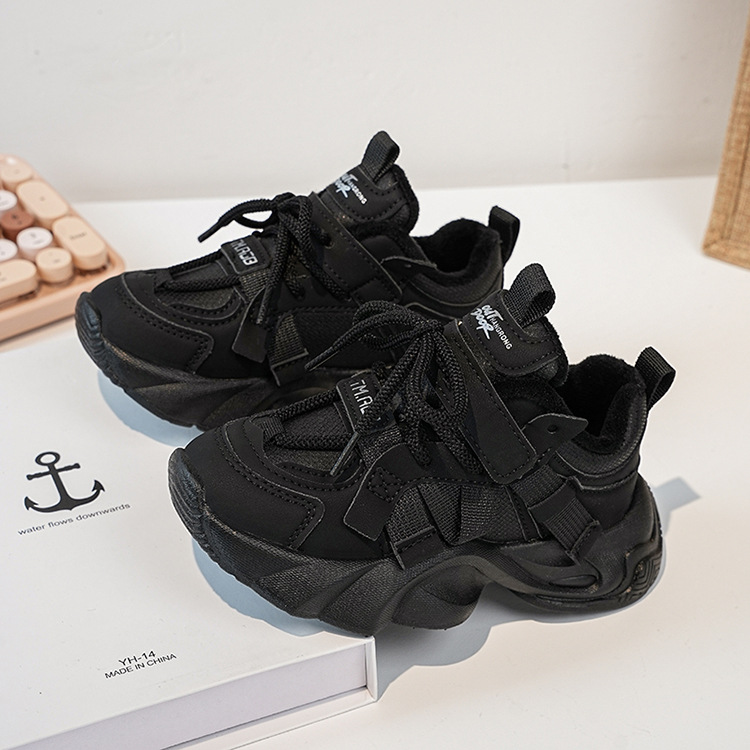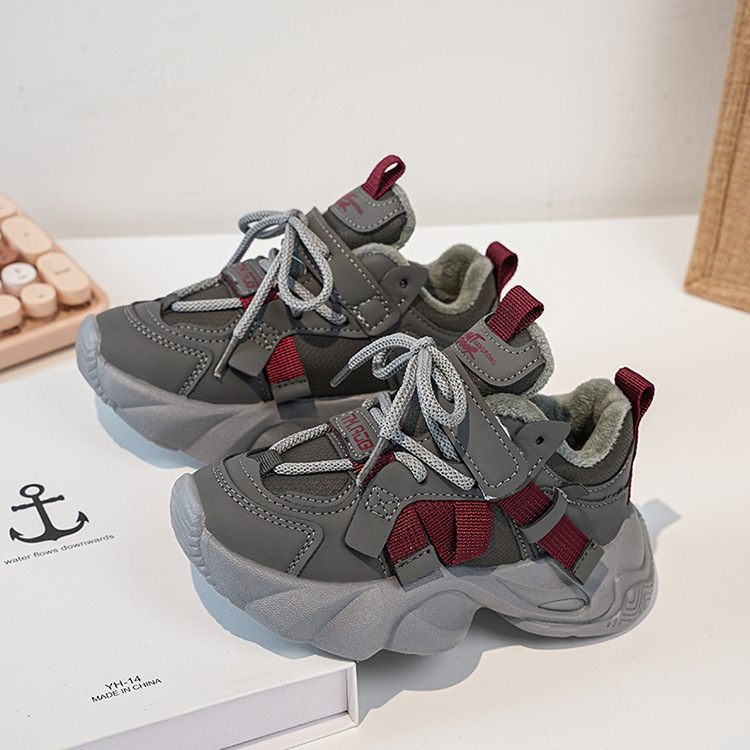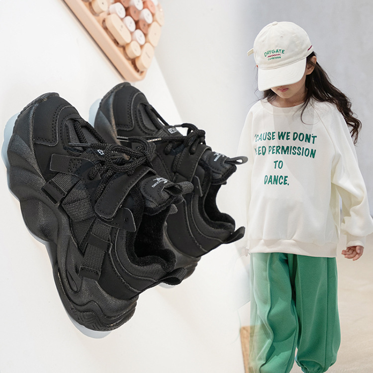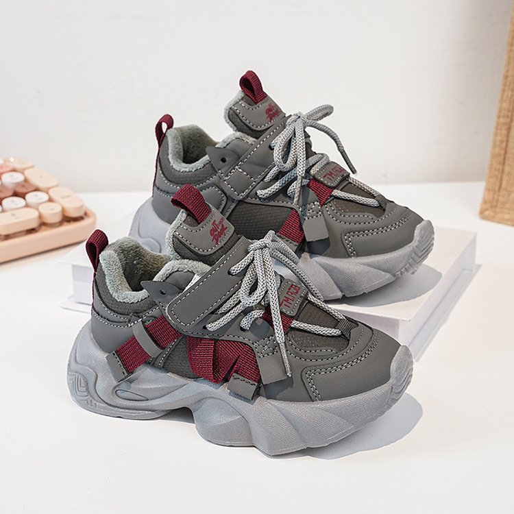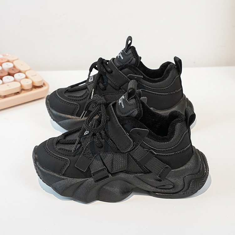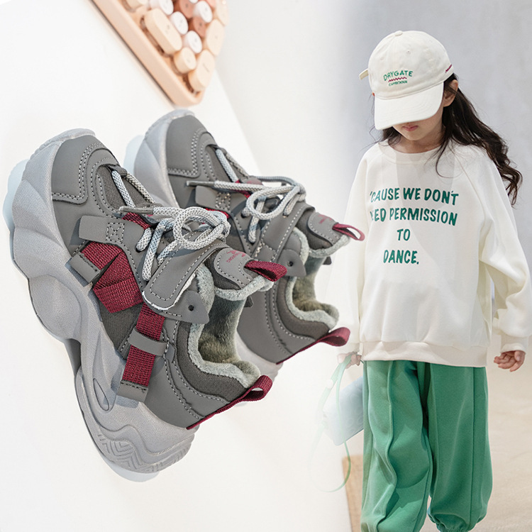 Zapatos deportivos para niños otoño y invierno de 2025, niños y niñas con suela suave de lana ecológica, zapatos de algodón transfronterizos para niños de mediano tamaño