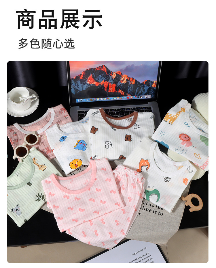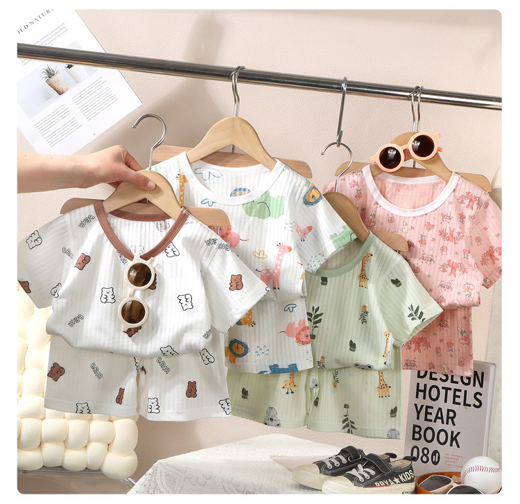 Traje de manga corta para niños, traje delgado de aire acondicionado, bebé dividido, jersey jacquard de verano, pantalones cortos para niños y niñas, pijamas, hogar