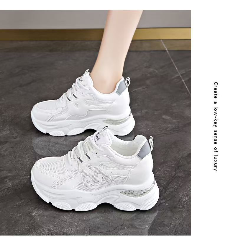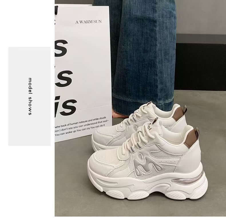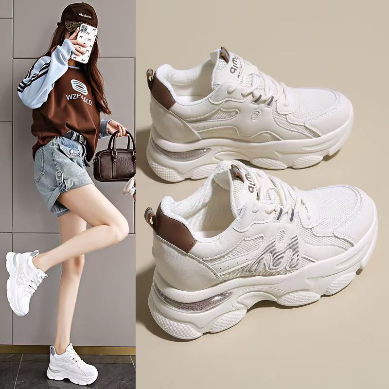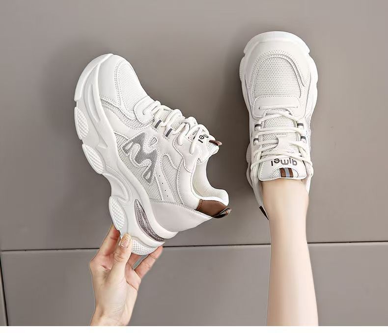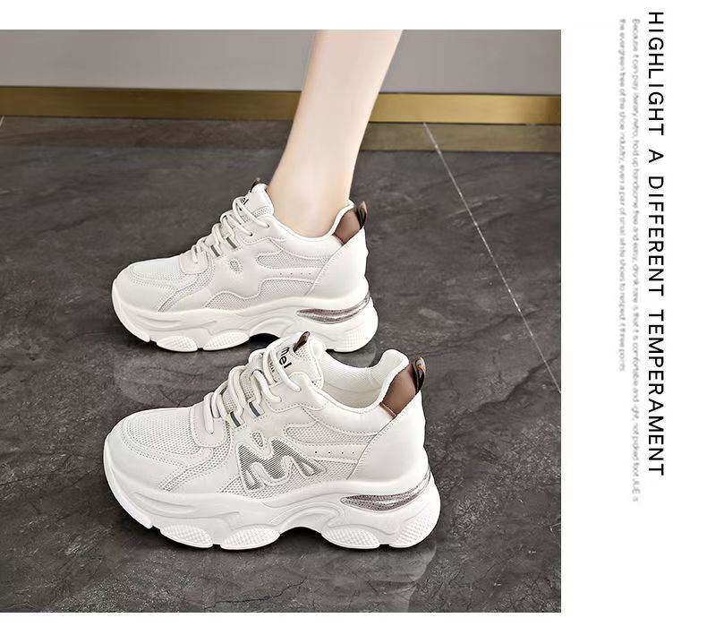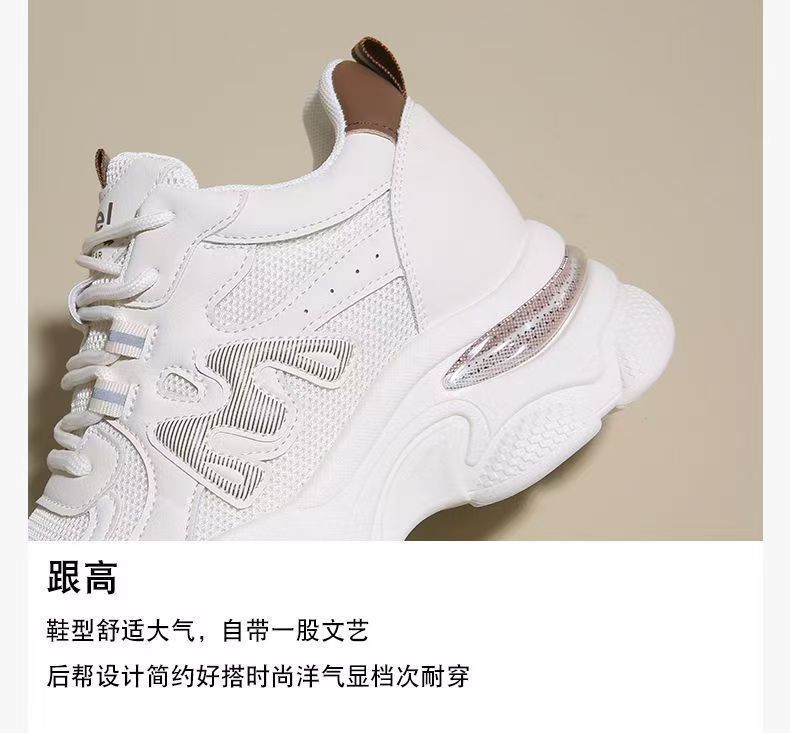 Explosiva de comercio exterior, aumento interno de las mujeres 2025 nuevos zapatos de papá deportivos de suela gruesa de verano, zapatos transpirables de malla de suela suave para mujeres