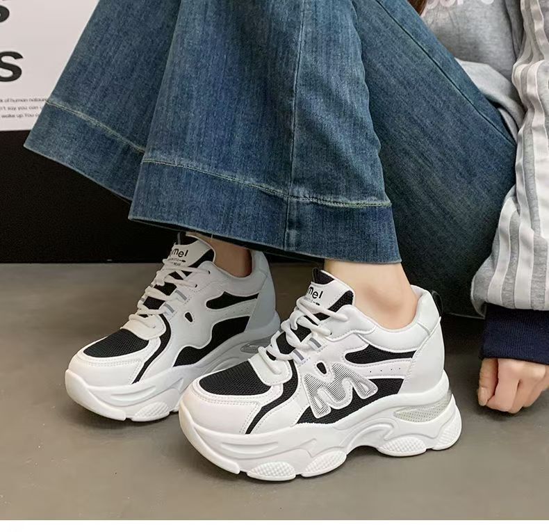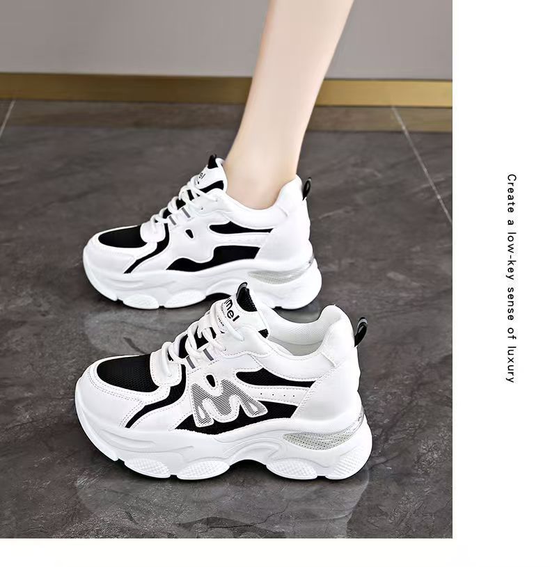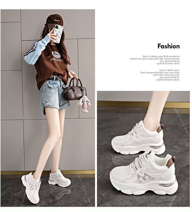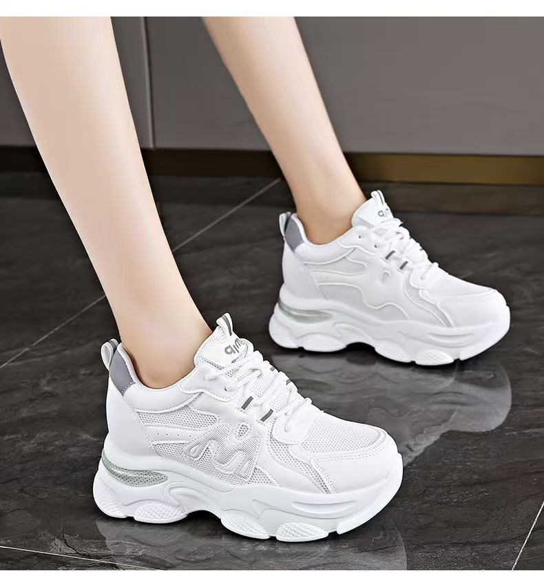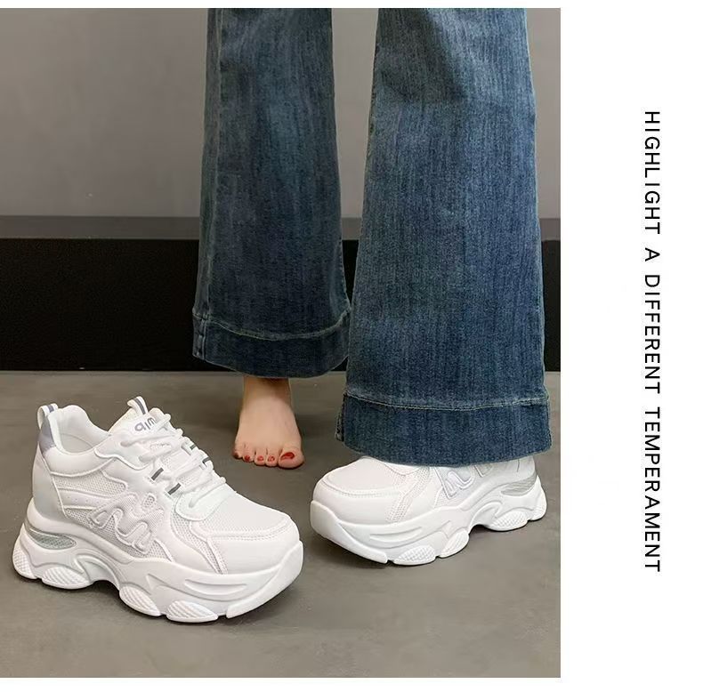 Explosiva de comercio exterior, aumento interno de las mujeres 2025 nuevos zapatos de papá deportivos de suela gruesa de verano, zapatos transpirables de malla de suela suave para mujeres