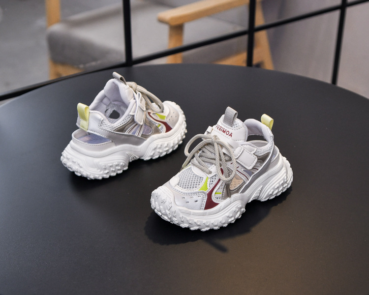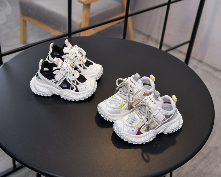 Sandalias para niñas 2025 nuevo verano Baotou zapatos de red ligeros para niños transpirables zapatos con marco deportivo de suela blanda para niños