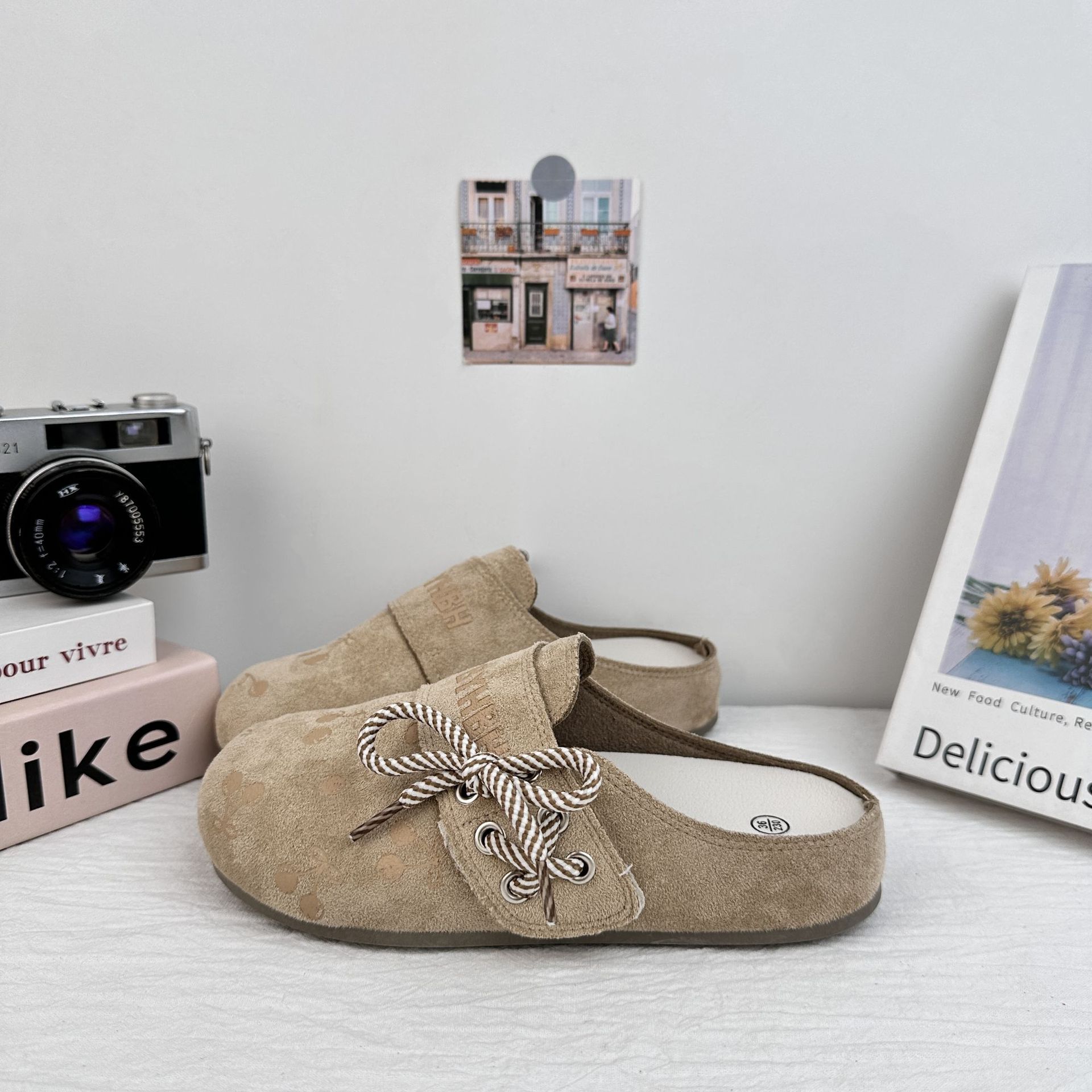 Far Wave Boken Shoes Baotou Semi-pantuflas para mujer 2025 verano nuevo estilo todo-fósforo ligero de un pie zapatos perezosos en nombre del cabello