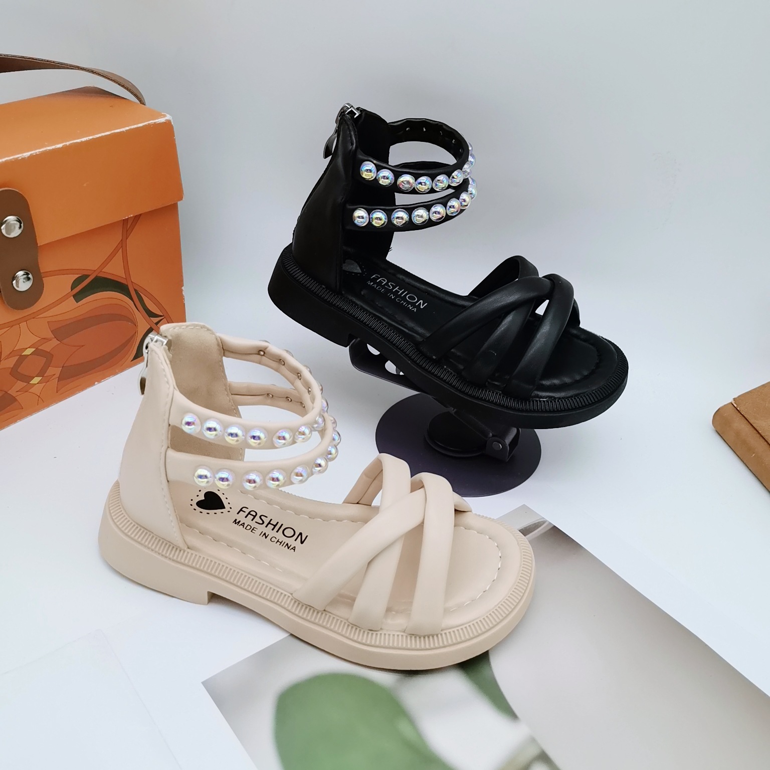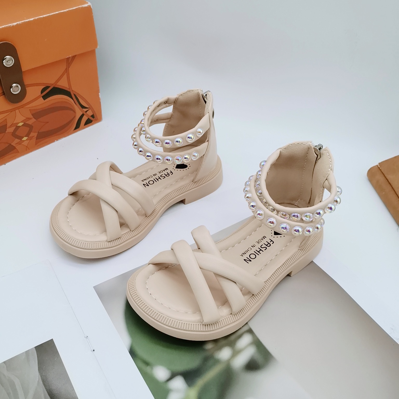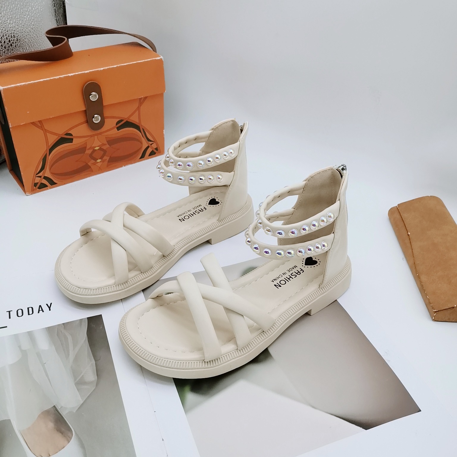 Sandalias esenciales para niñas para el comercio exterior transfronterizo estilo de verano estilo caliente zapatos de princesa romana de color sólido para niños zapatos de verano para niñas