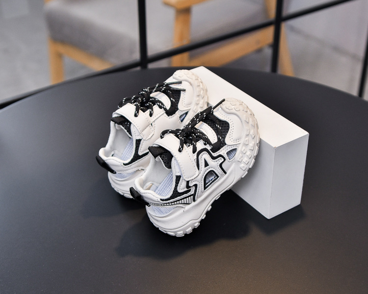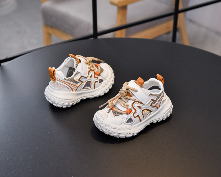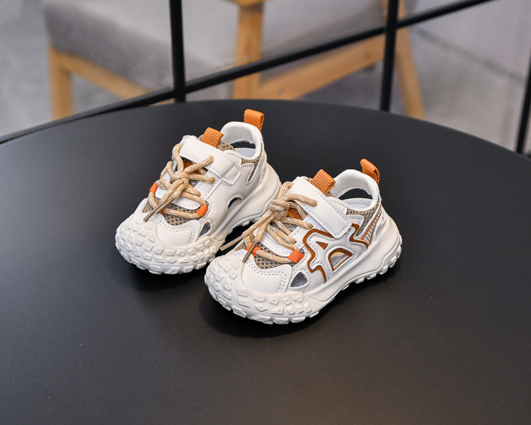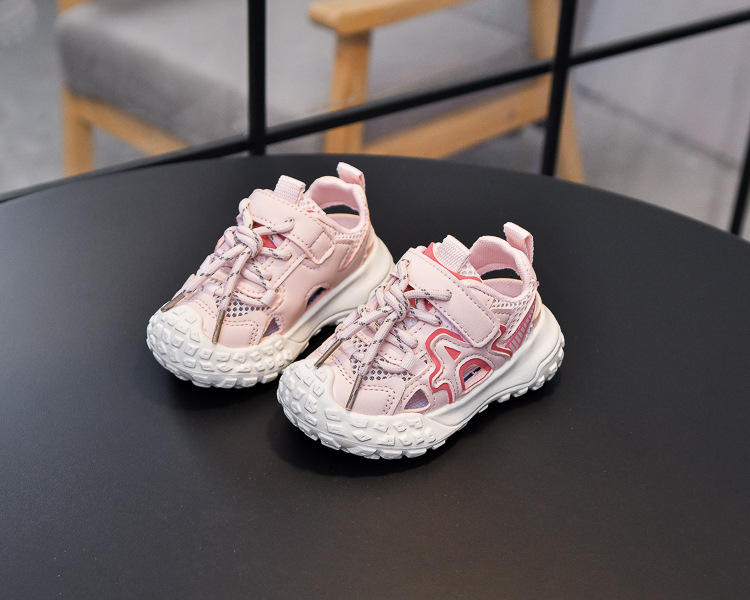 Verano 2025 nuevo estilo sandalias para niños con suela de neumáticos zapatos con marco deportivo hueco Baotou para niños pequeños y medianos zapatos de playa de suela suave