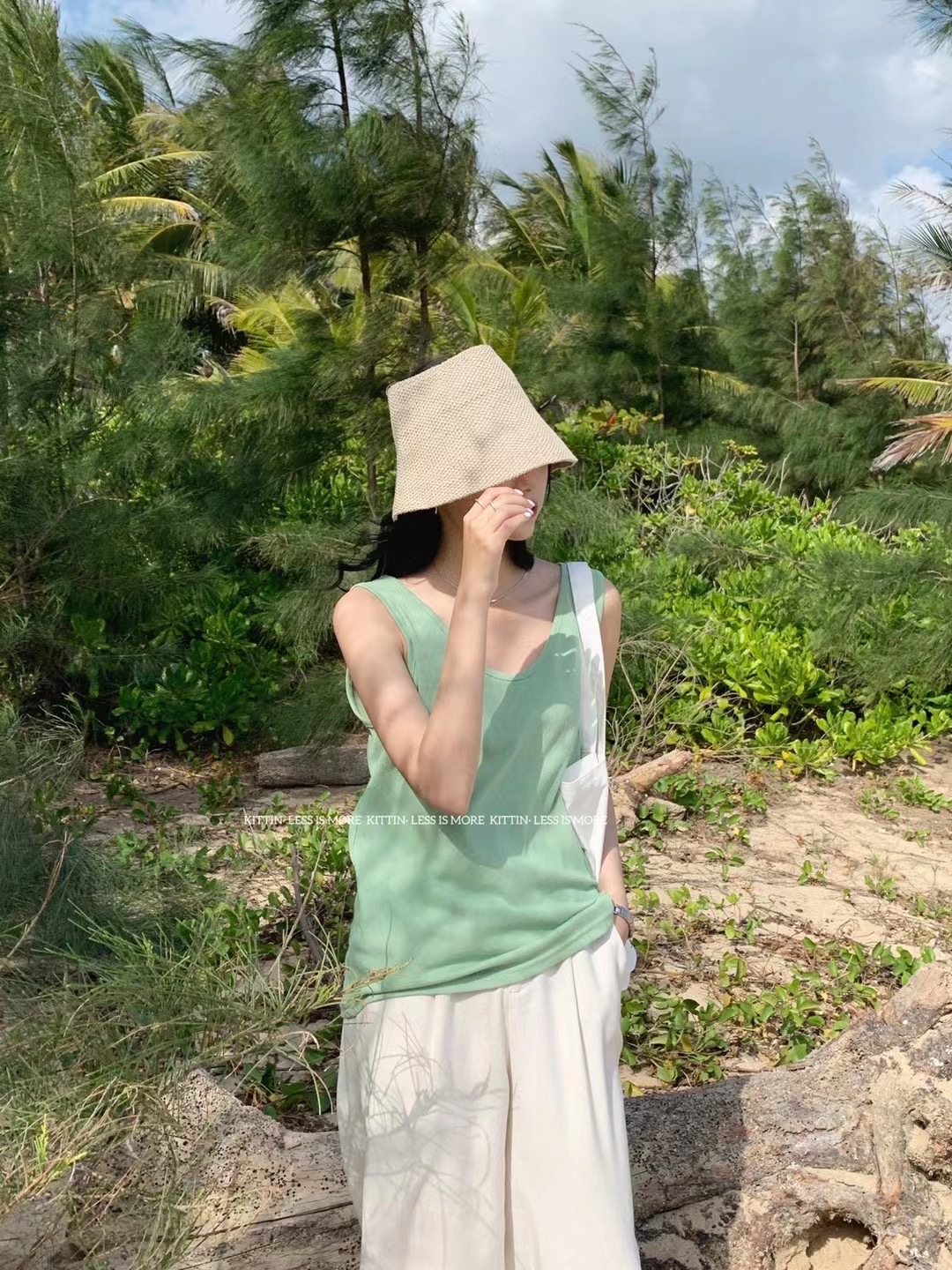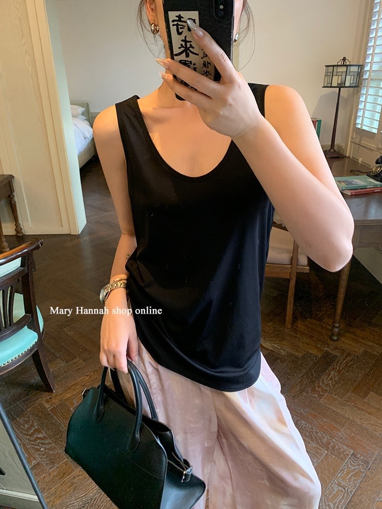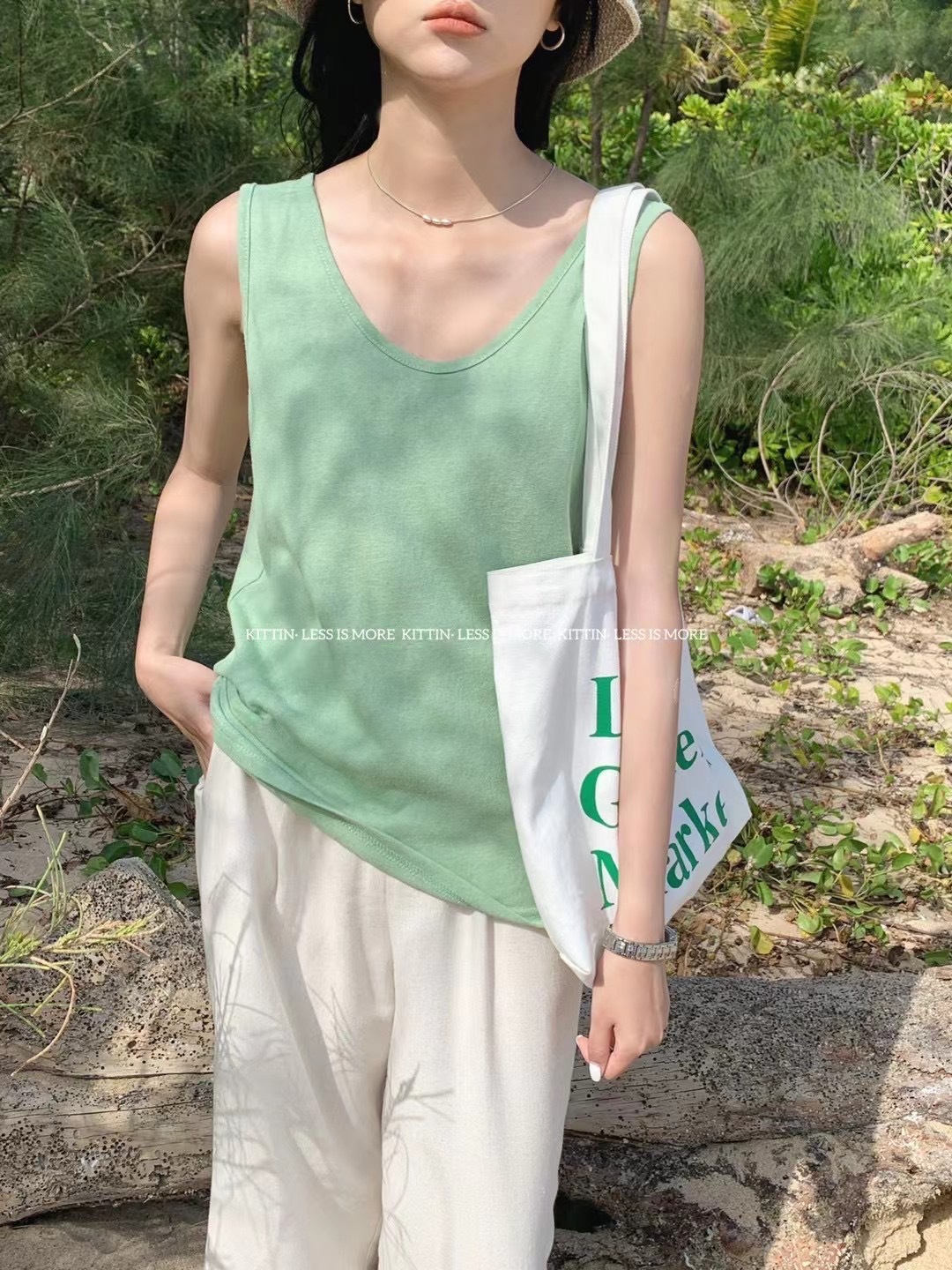 Verano perezoso chaleco de color sólido basado en la combinación de chalecos sueltos para cubrir el pecho camiseta sin mangas para mujeres