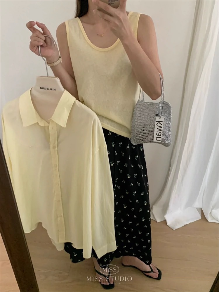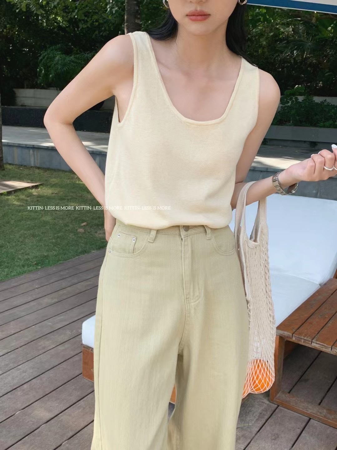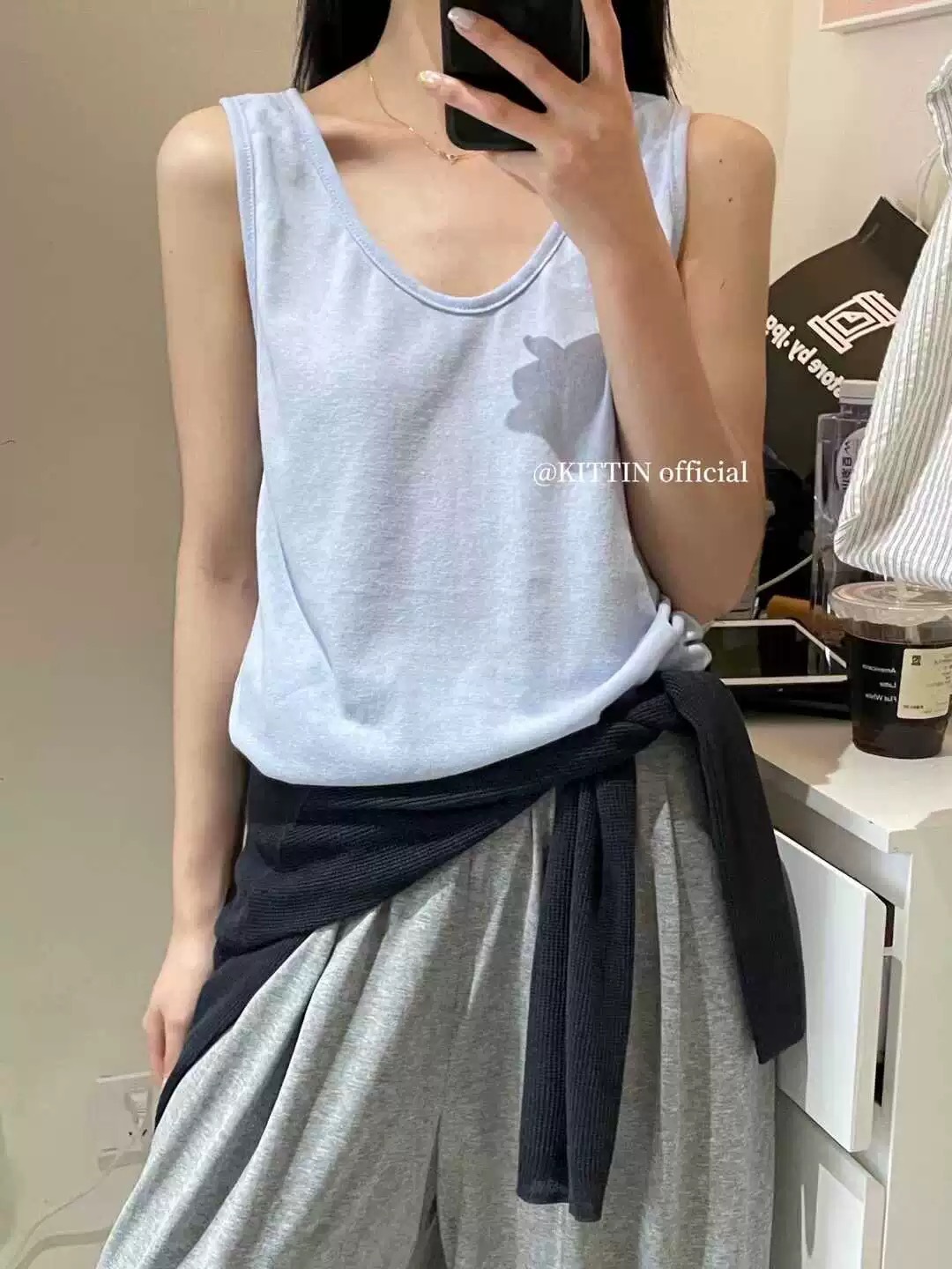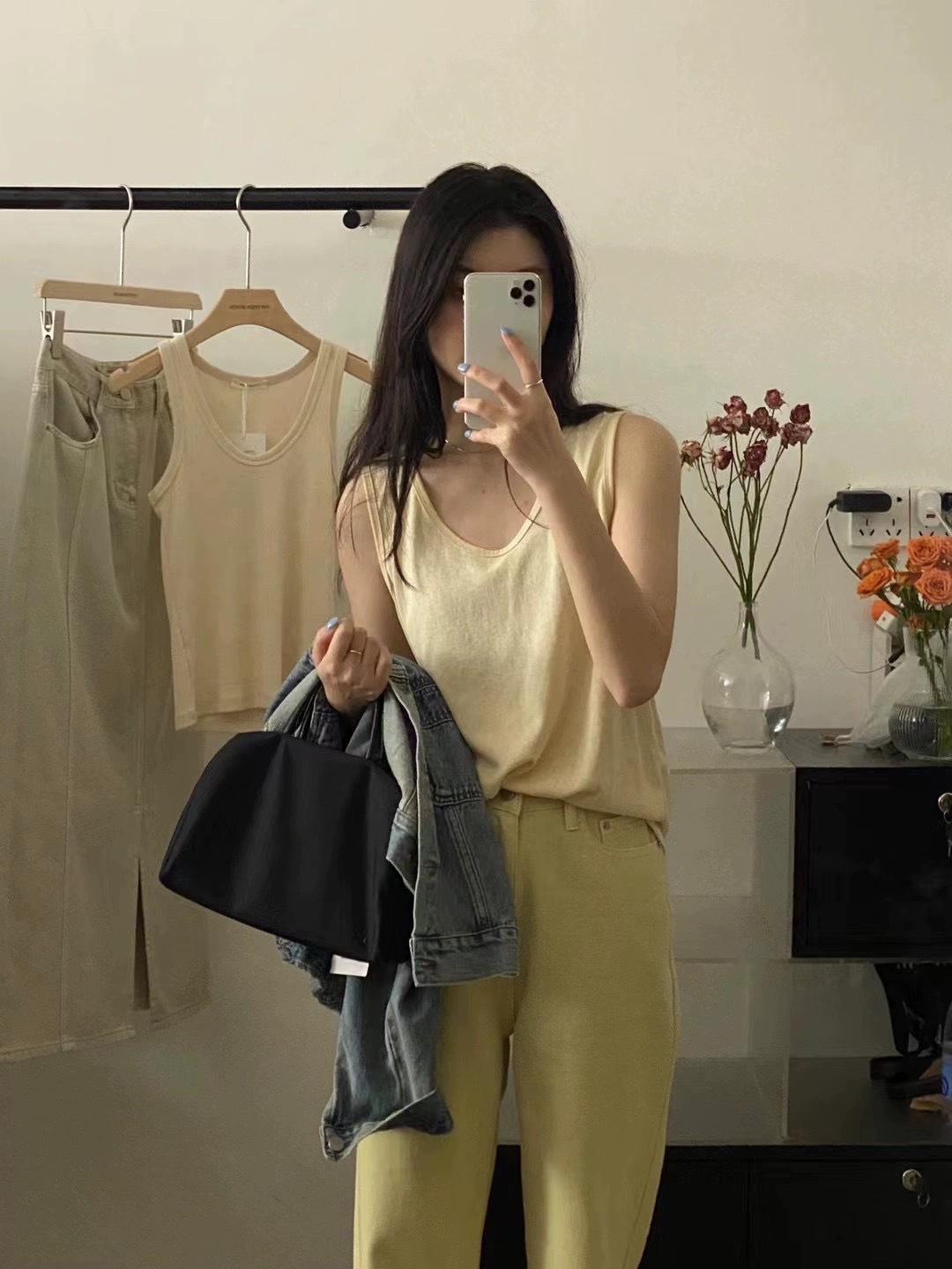 Verano perezoso chaleco de color sólido basado en la combinación de chalecos sueltos para cubrir el pecho camiseta sin mangas para mujeres