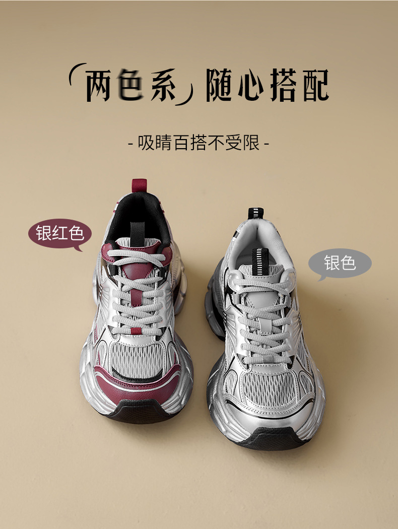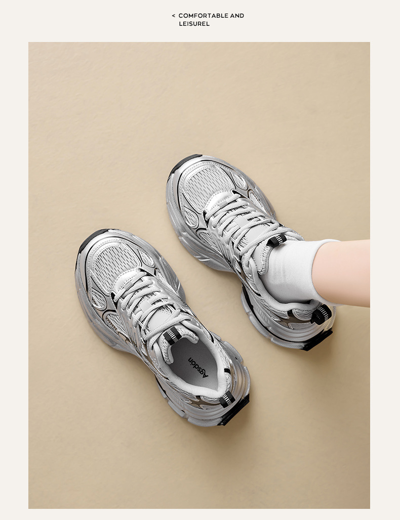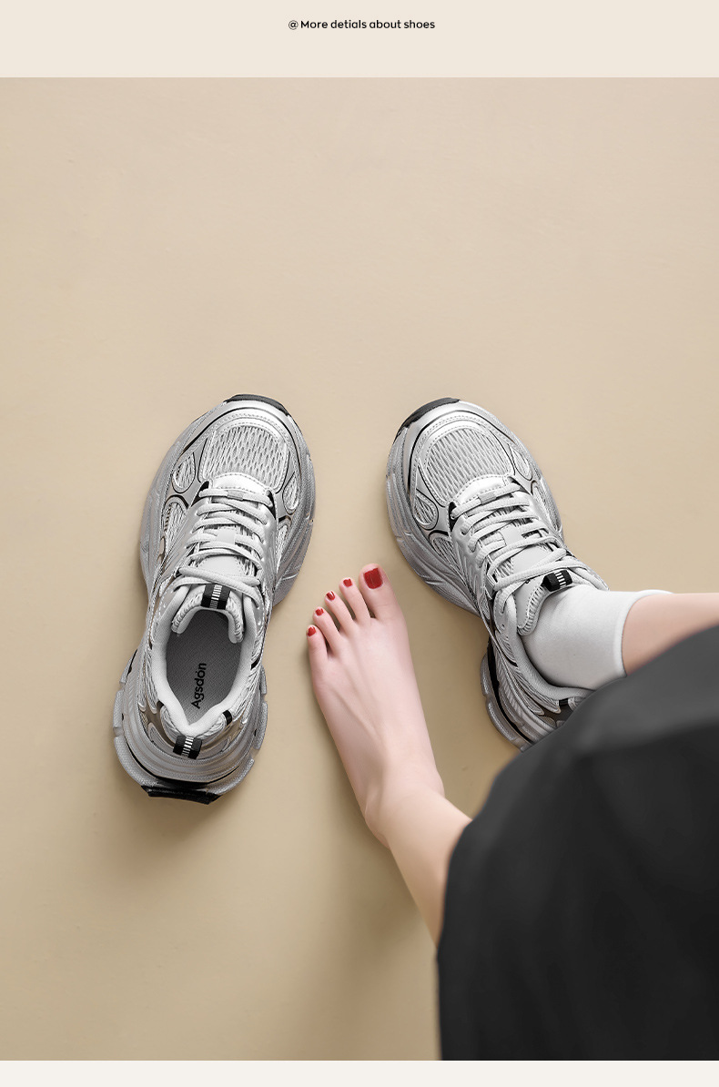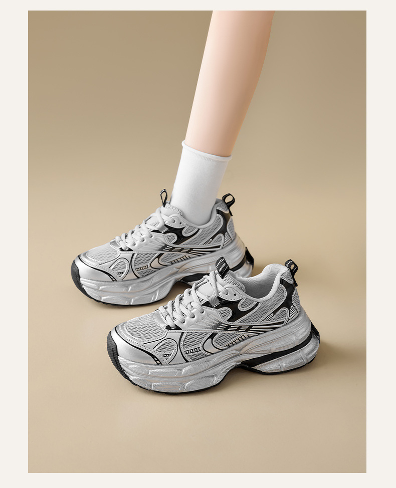 Augustion Silver Daddy Shoes Mujer 2025 Nuevo verano casual retro running zapatillas de malla de suela gruesa