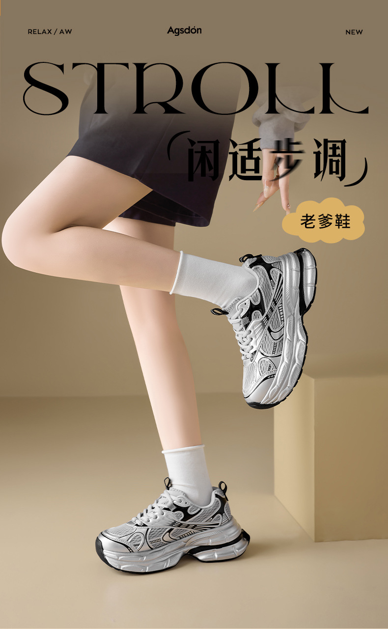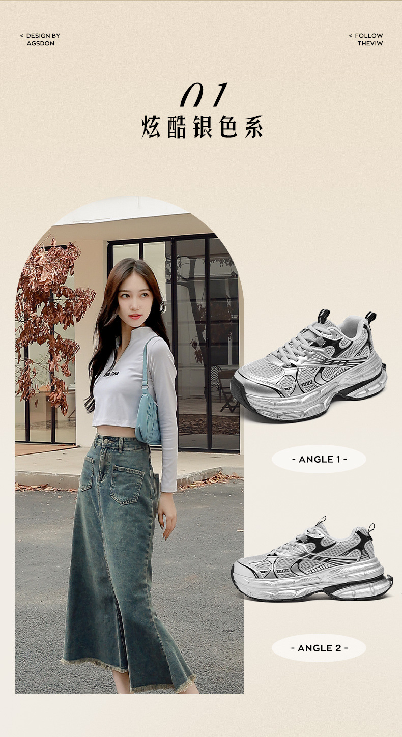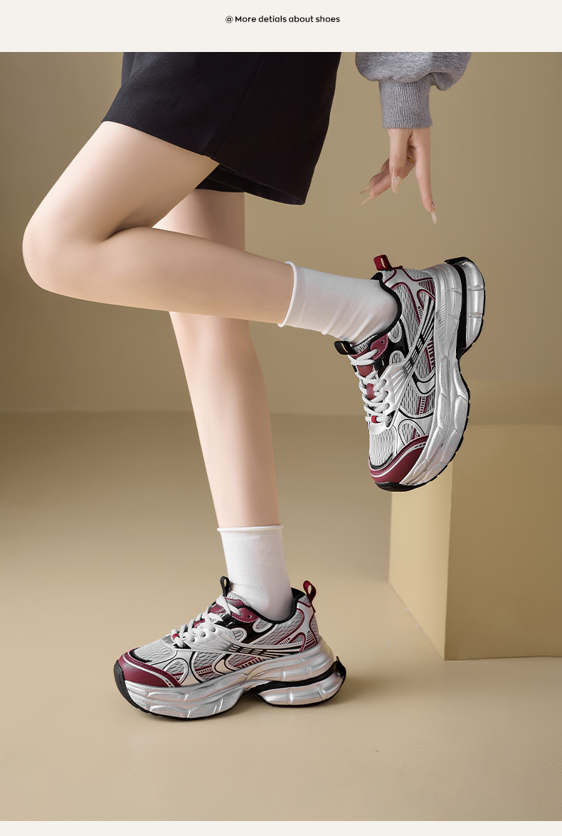 Augustion Silver Daddy Shoes Mujer 2025 Nuevo verano casual retro running zapatillas de malla de suela gruesa