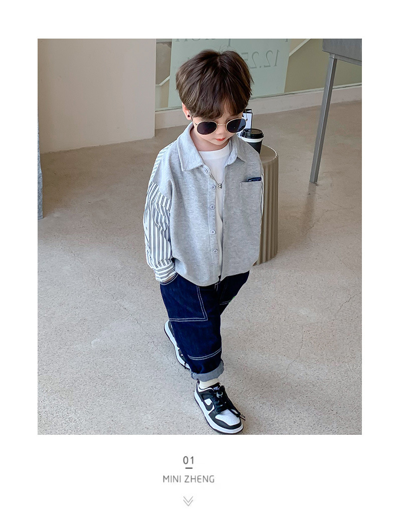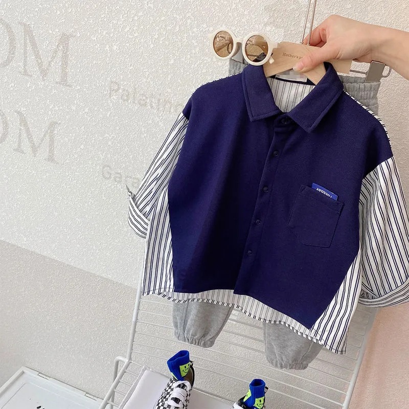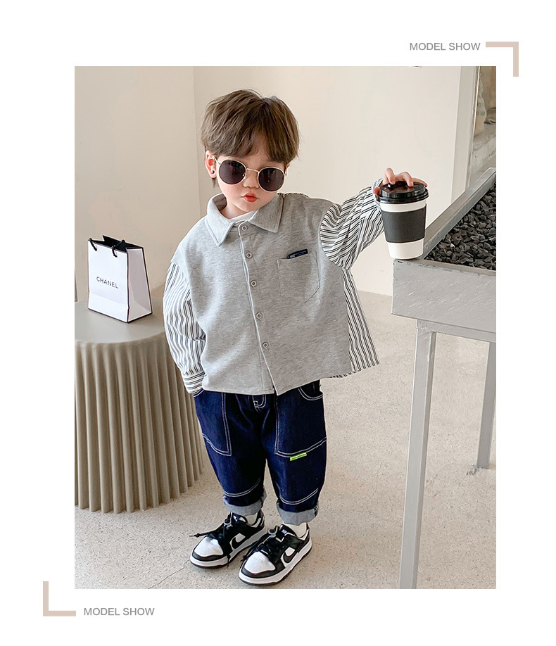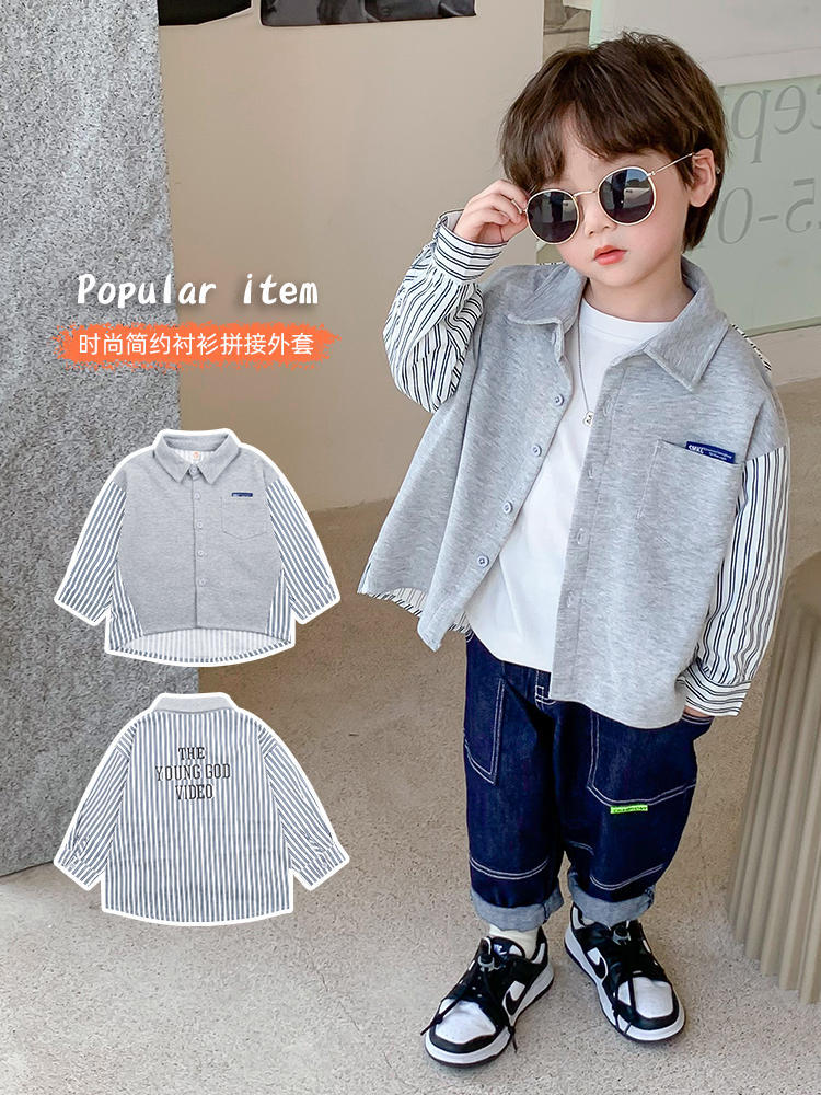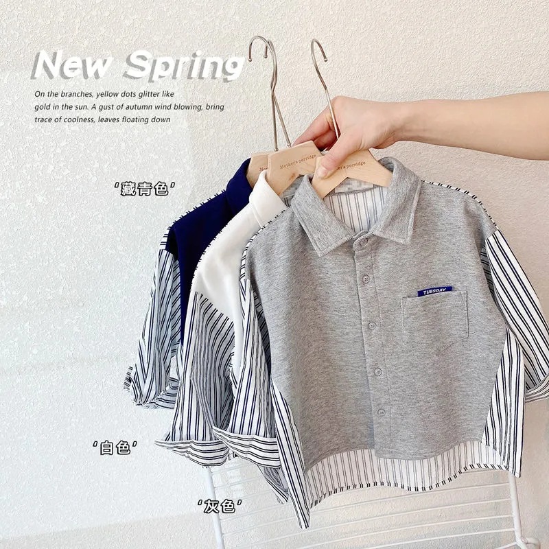 Ropa de primavera para niños, estilo coreano, tops 2025, nuevas camisas de manga larga con diseño de patchwork personalizado, chaqueta tipo cárdigan a rayas para niños, primavera y otoño