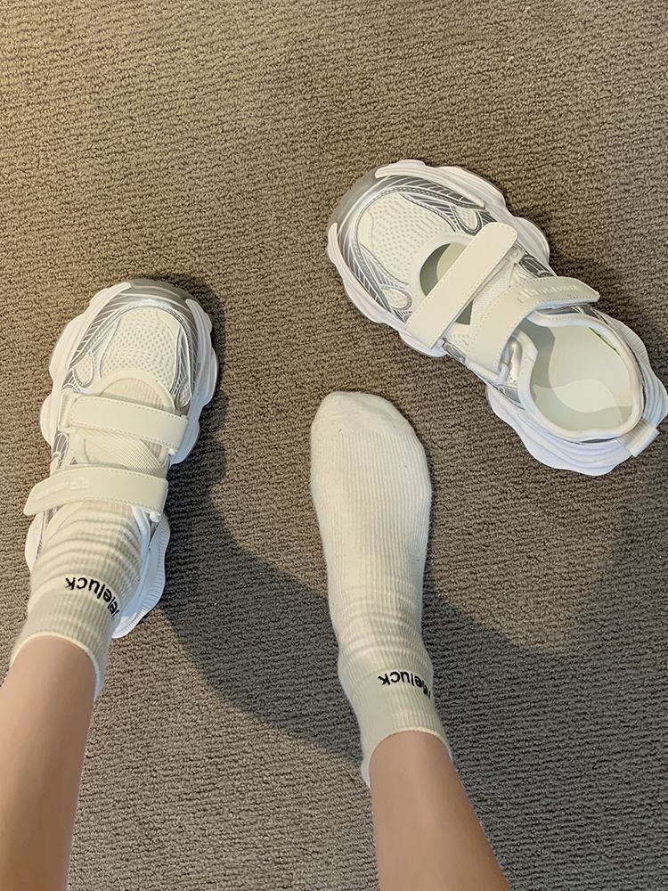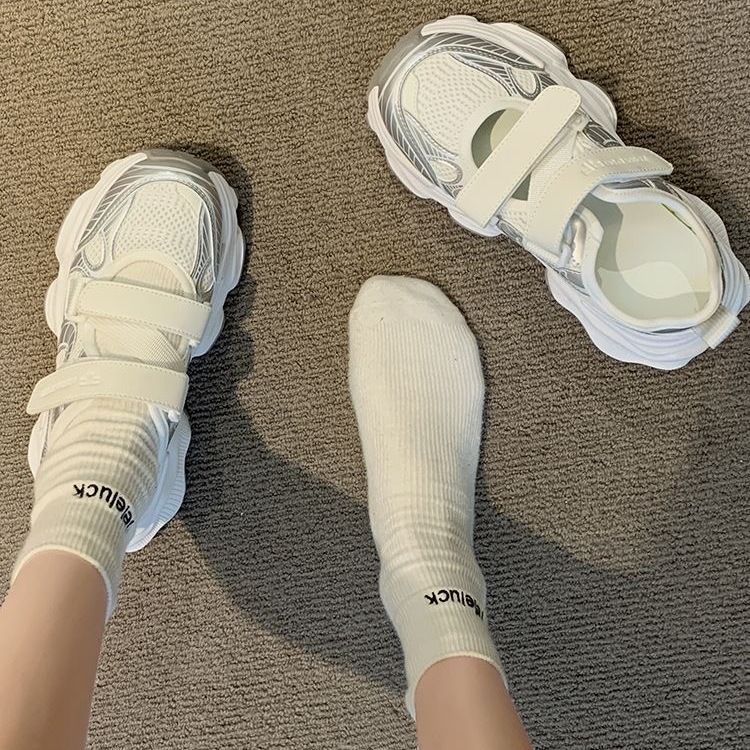 Baotou coreano velcro sandalias de suela gruesa para mujeres 2024 verano nuevo estilo universal zapatos de papá huecos zapatos transpirables