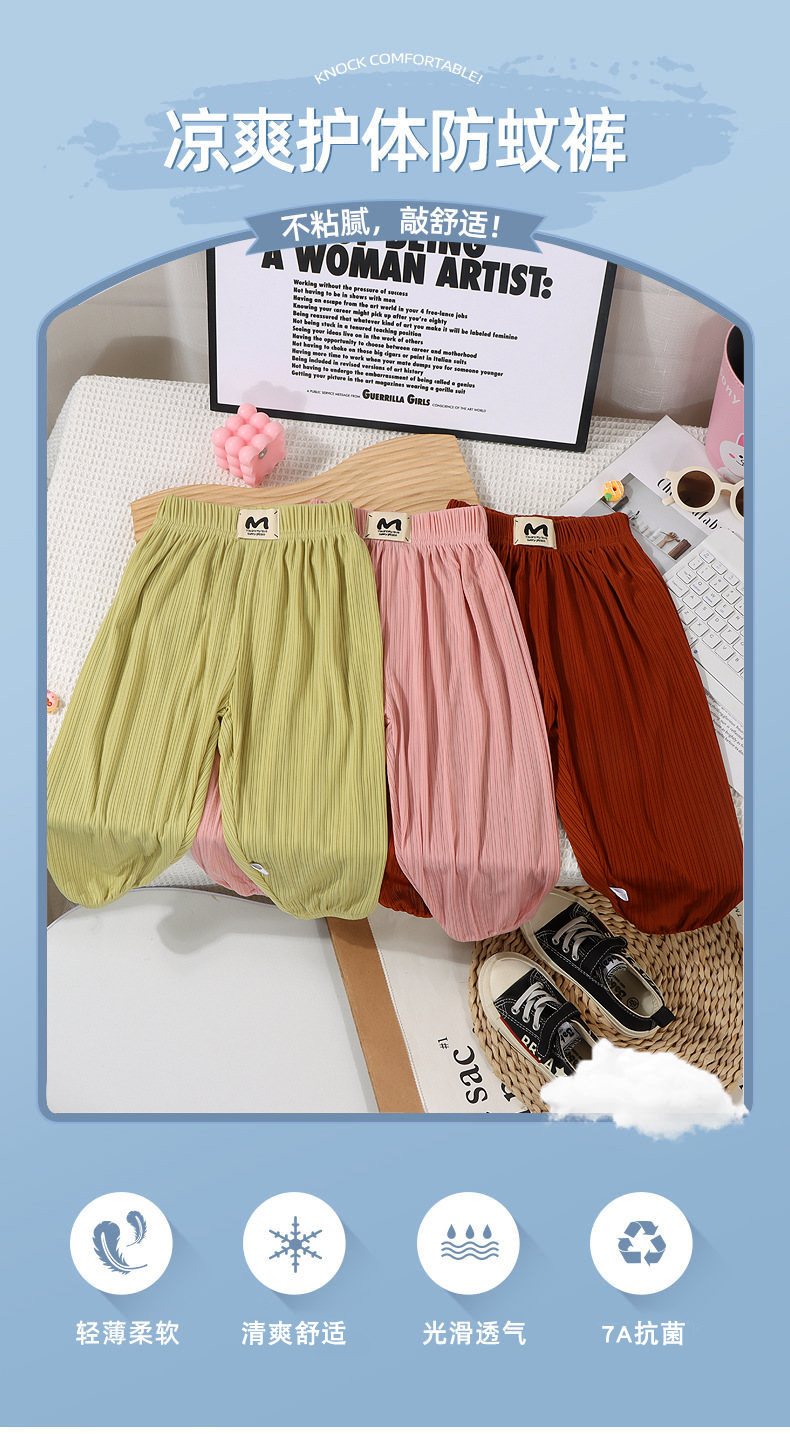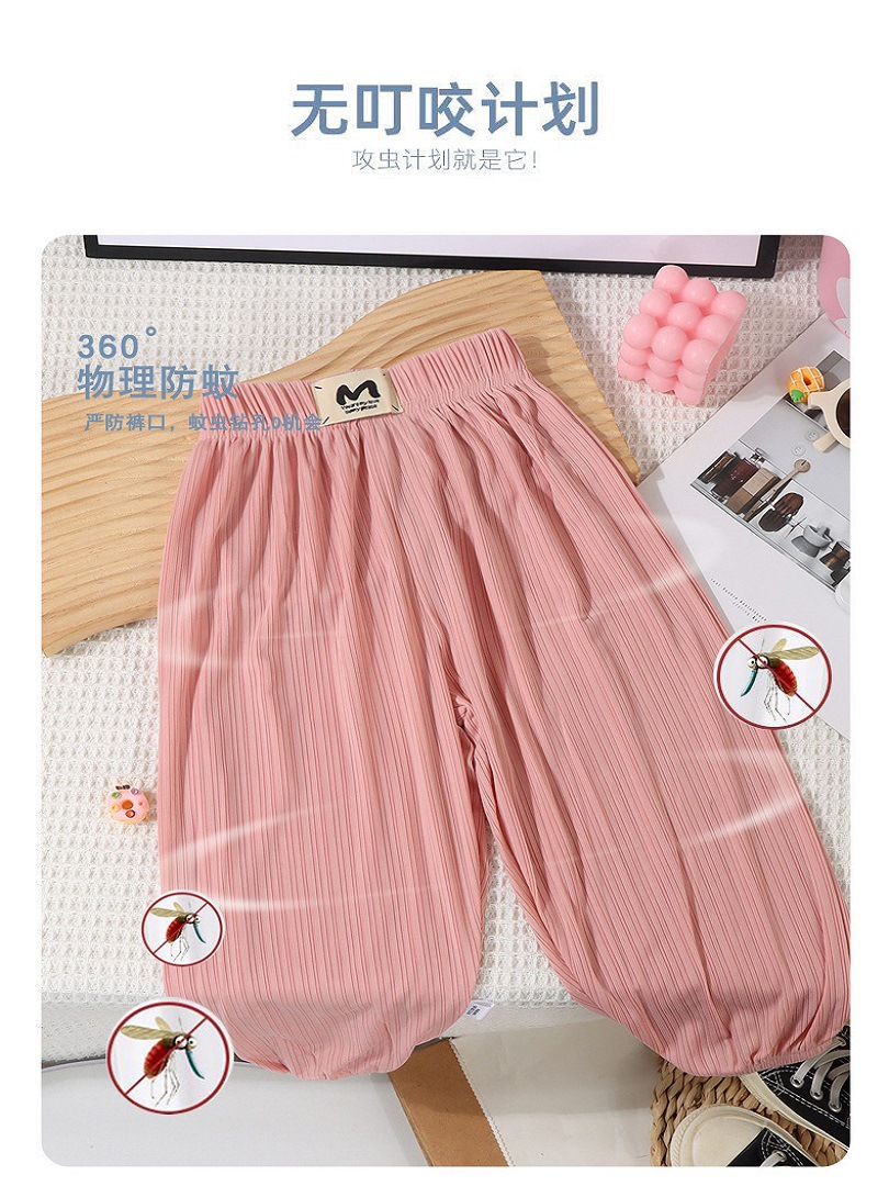 [Personalizado] Pantalones a prueba de mosquitos para bebés, pantalones delgados de nueve puntos para niños, bombachos transpirables de seda de hielo para niñas