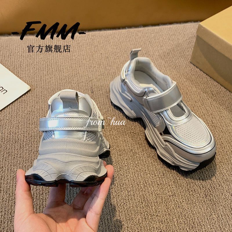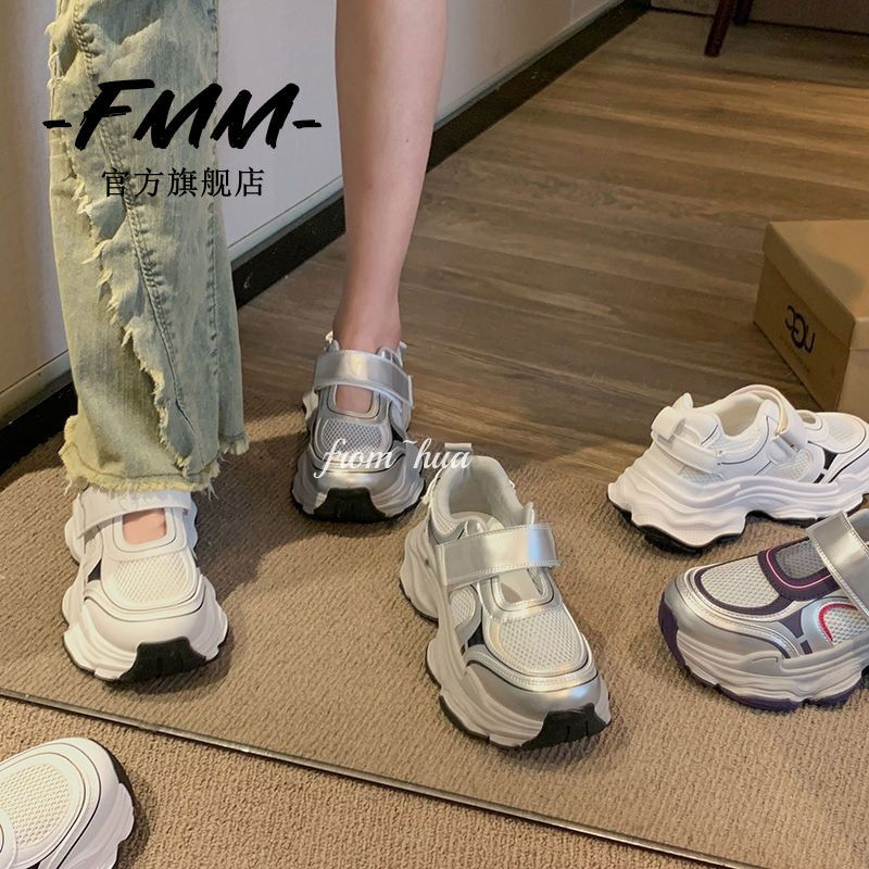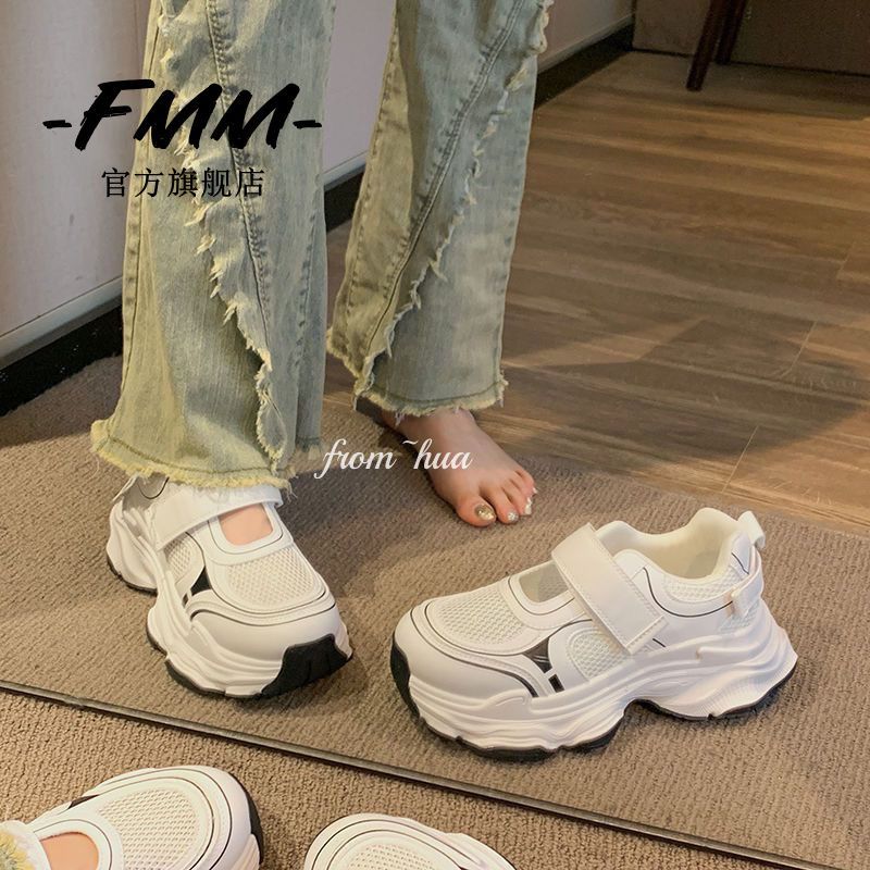 Sandalias deportivas de suela gruesa para mujeres 2024 verano nuevos zapatos de papá huecos de malla transpirables zapatos de agujero casuales de moda