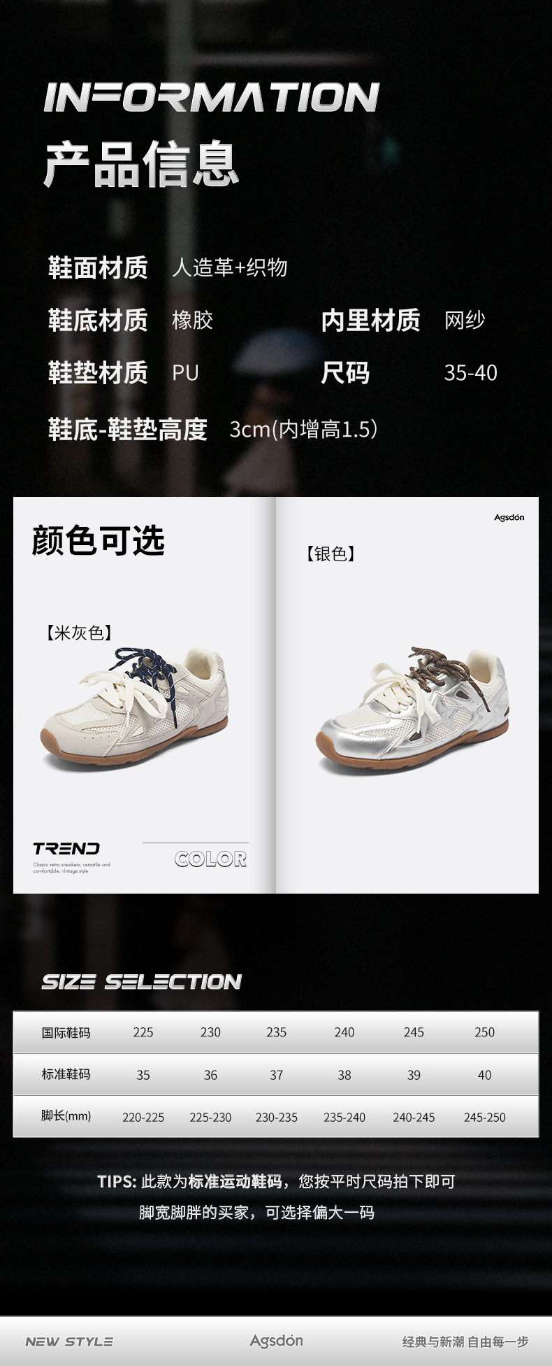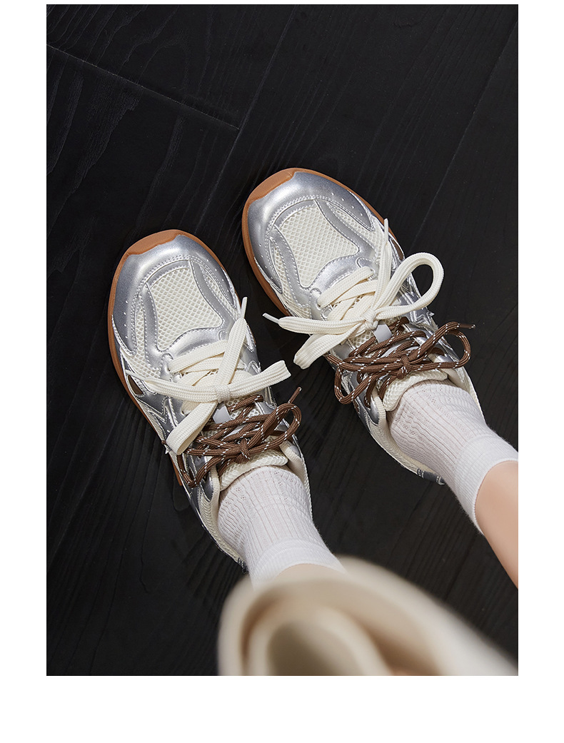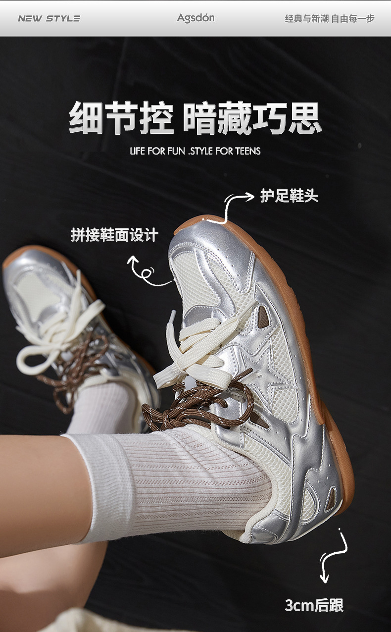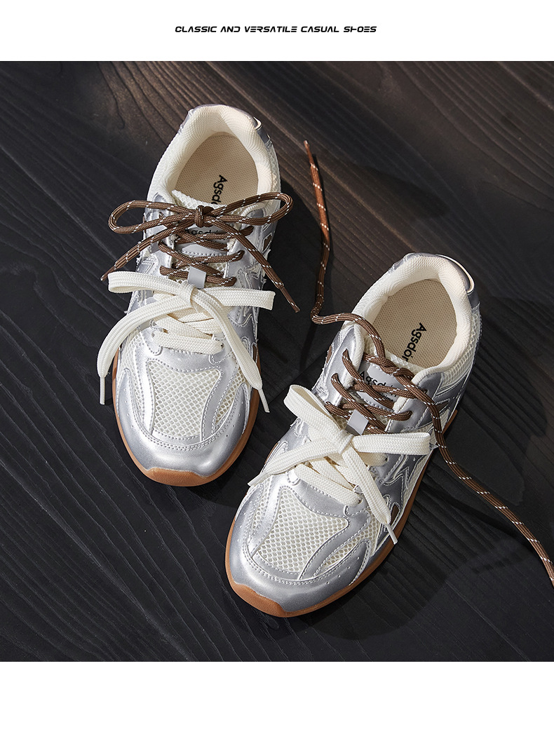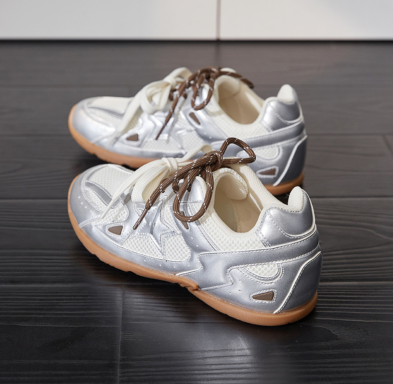 Zapatillas de entrenamiento alemanas Augusden color plata para mujer, novedad otoño 2025, estilo ballet casual, zapatillas de papá de suela gruesa.
