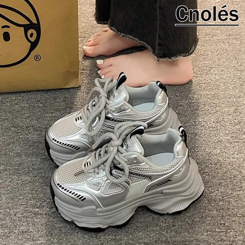 Nuevos zapatos de primavera y otoño para mujeres 2024 aumento de suela gruesa de malla pequeña delgada de moda universal zapatos deportivos de mujer